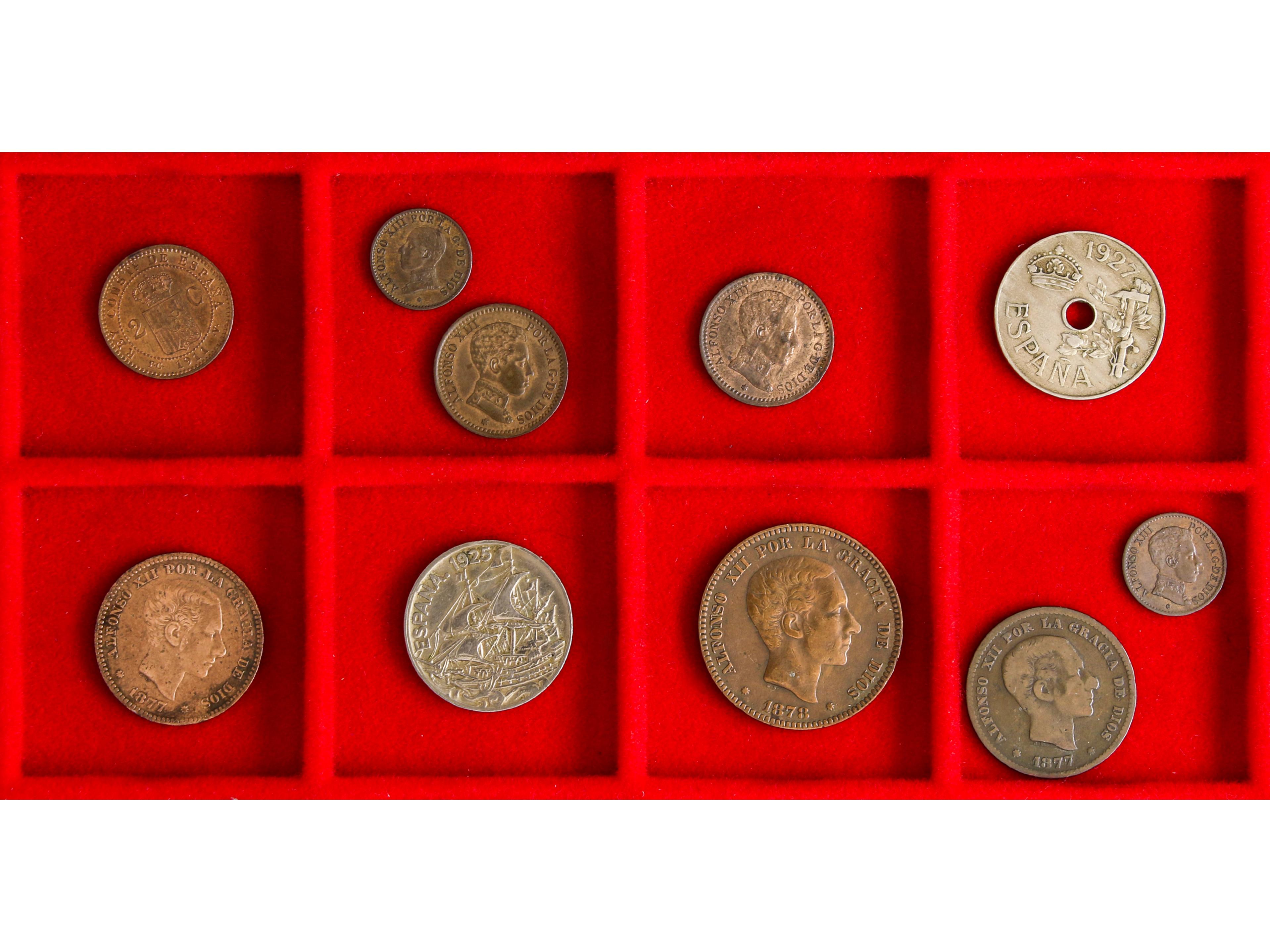 2055 imageLote 10 monedas 1 (2), 2 (3), 5 (2), 10, 25 Céntimos (2). 1877 a 1927. ALFONSO XII y XIII y II REPÚBLICA. A EXAMINAR. MBC- a EBC. (Image1)