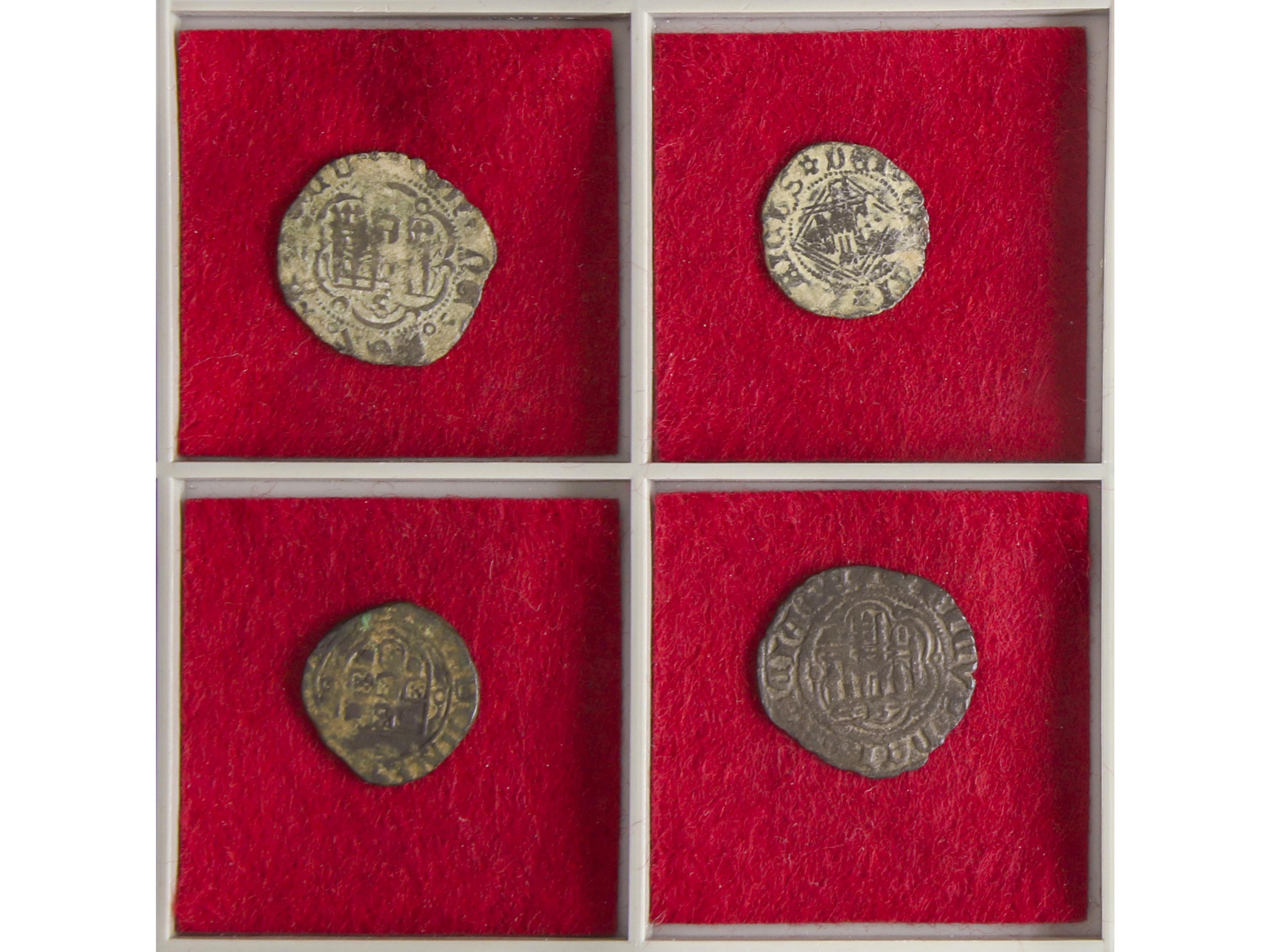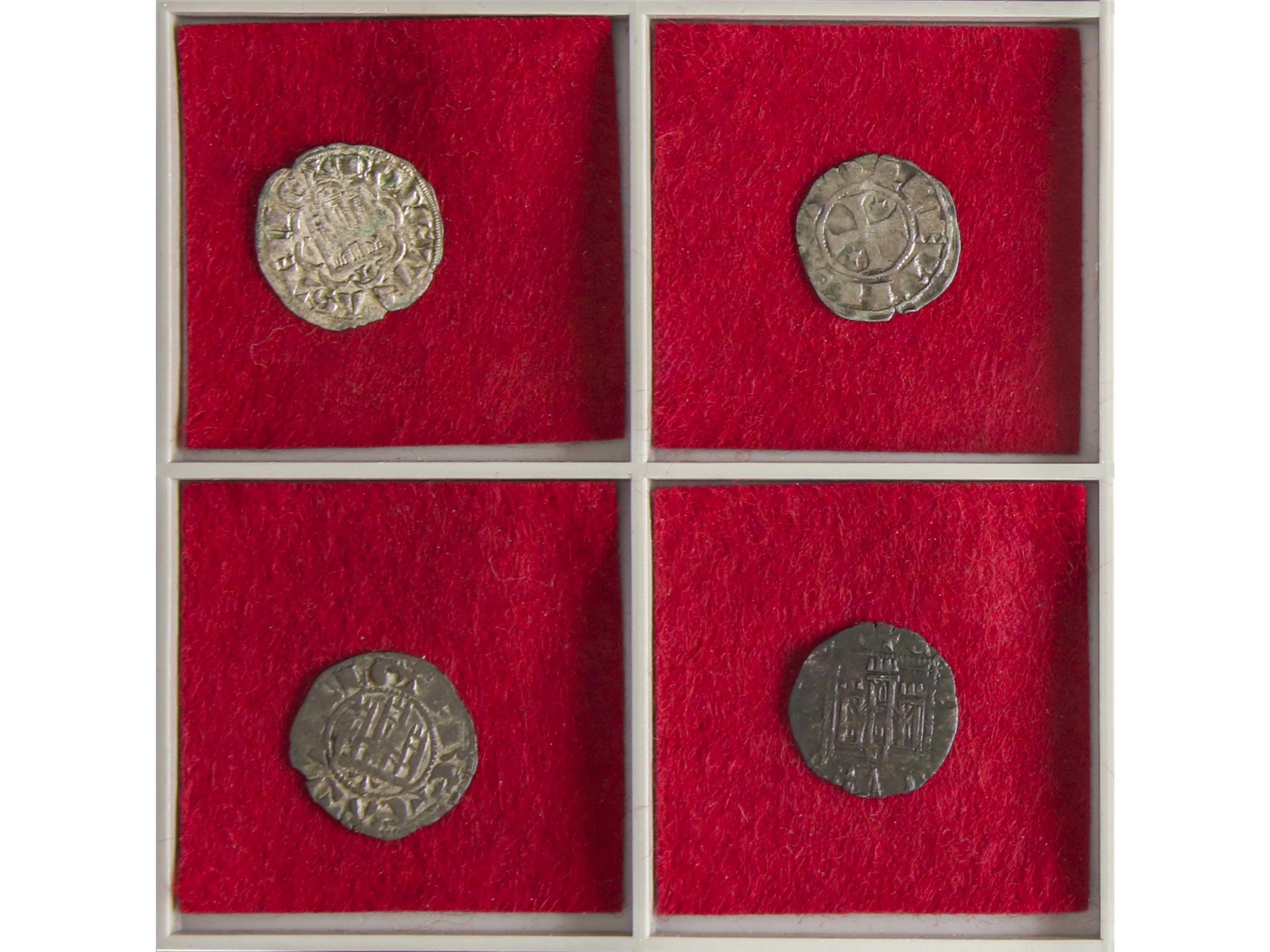 2046 imageLote 4 monedas Diner, Cornado (3). JAUME I, ENRIQUE II, ALFONSO XI y JUAN I. ARAGÓN. BURGOS (2), SEVILLA. AE,Ve. A EXAMINAR. Cru.VS-318, FAB-346.1, 486, 573. MBC- a MBC+. (Image1) (Image2)