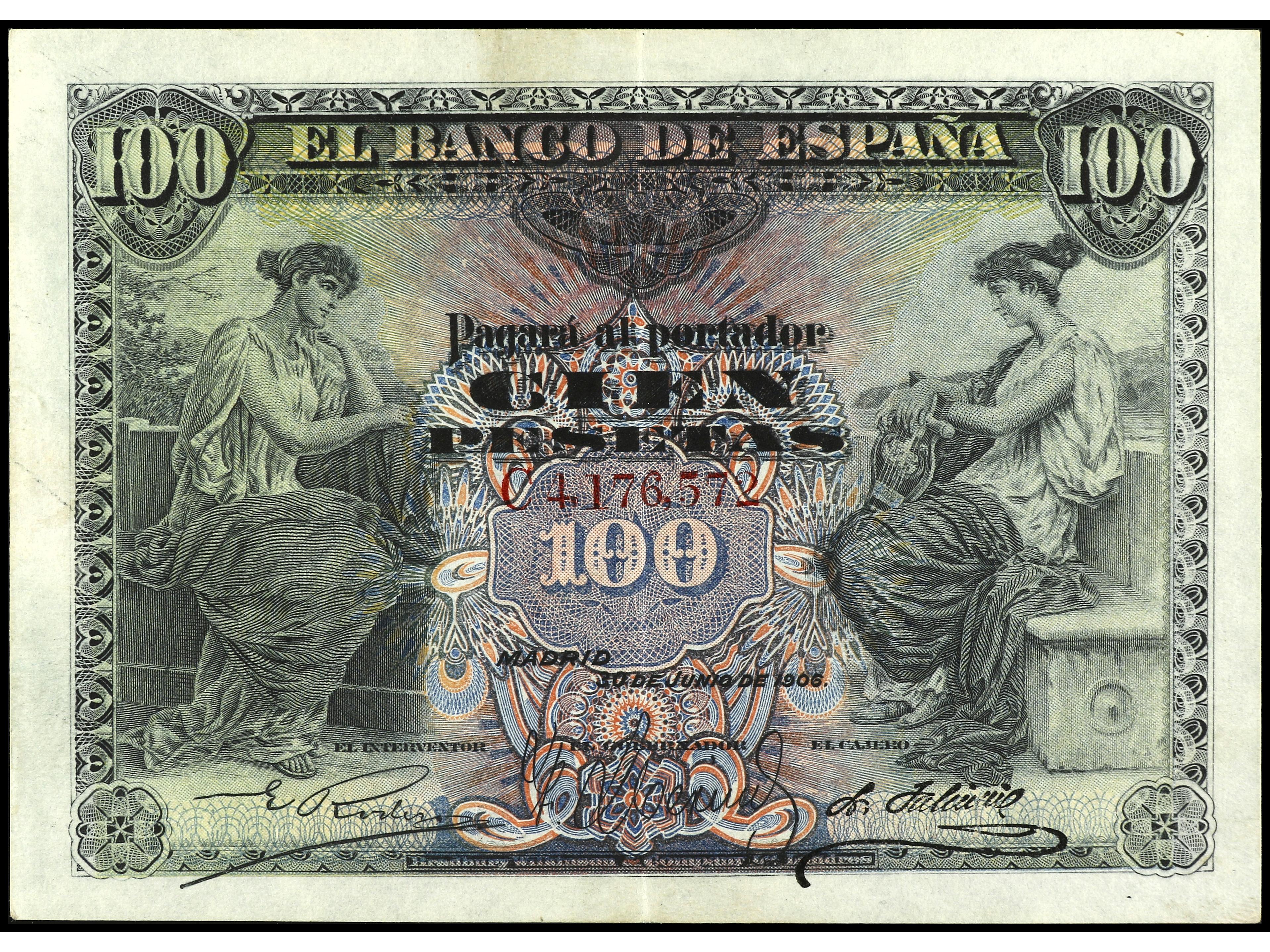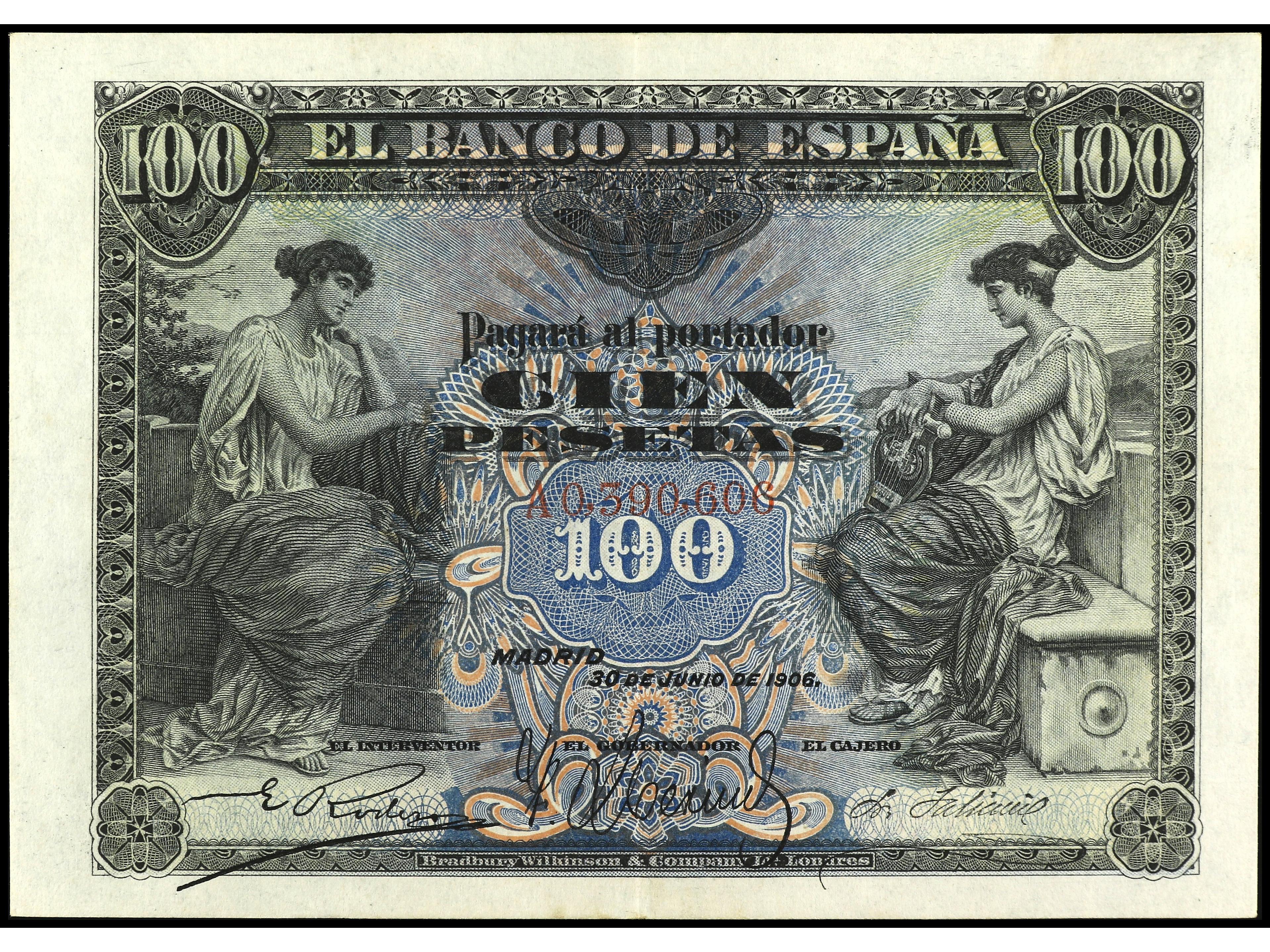 100 Pesetas. 30 Junio 1906. Serie A. Ed-313a. EBC-. (Image1) (Image2)