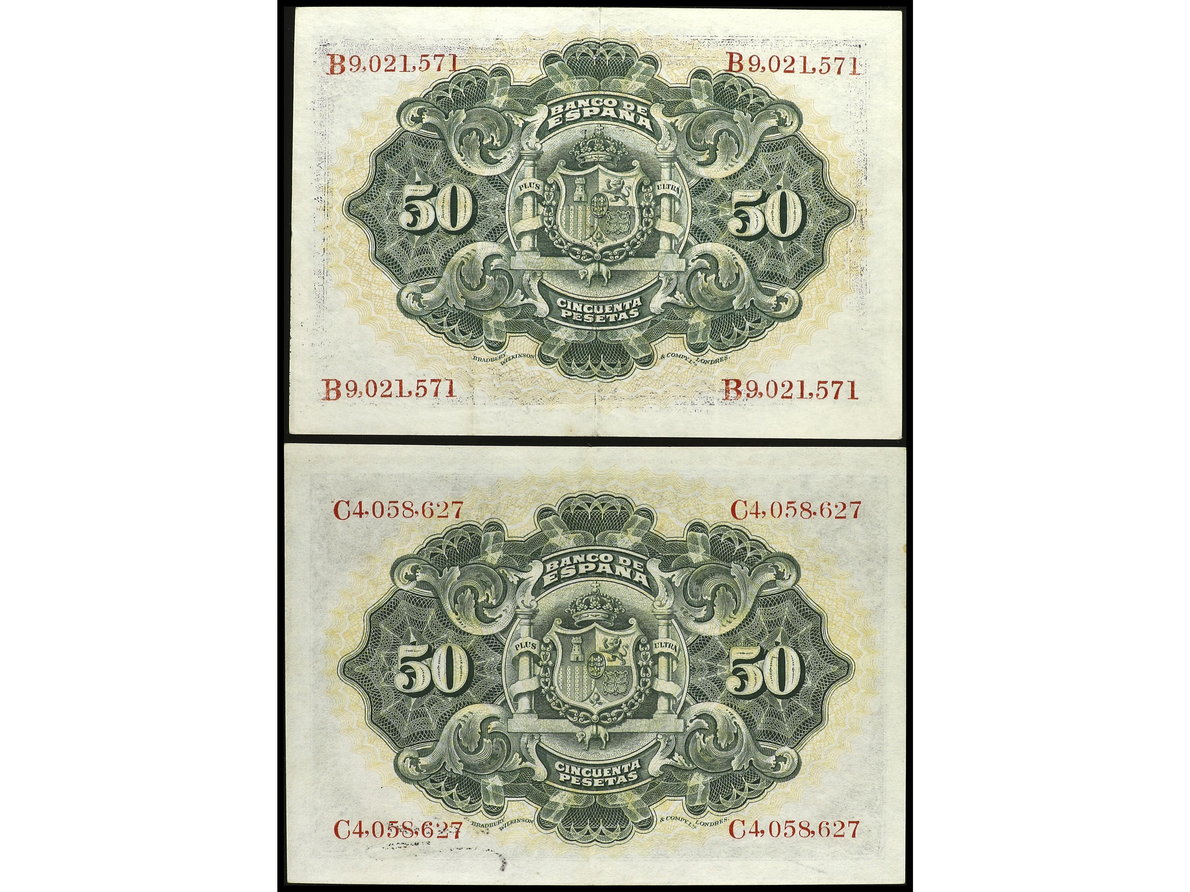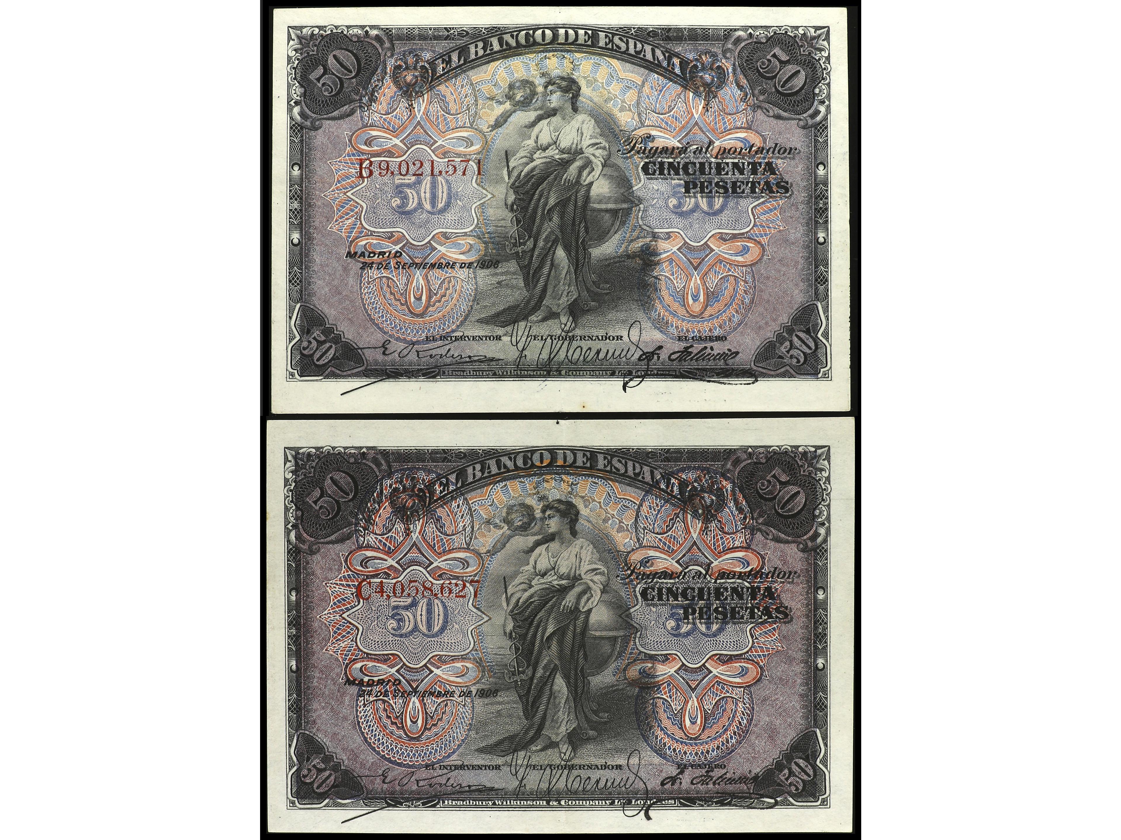 Lote 2 billetes 50 Pesetas. 24 Septiembre 1906. Serie B y C. Ed-315a. MBC+. (Image1) (Image2)