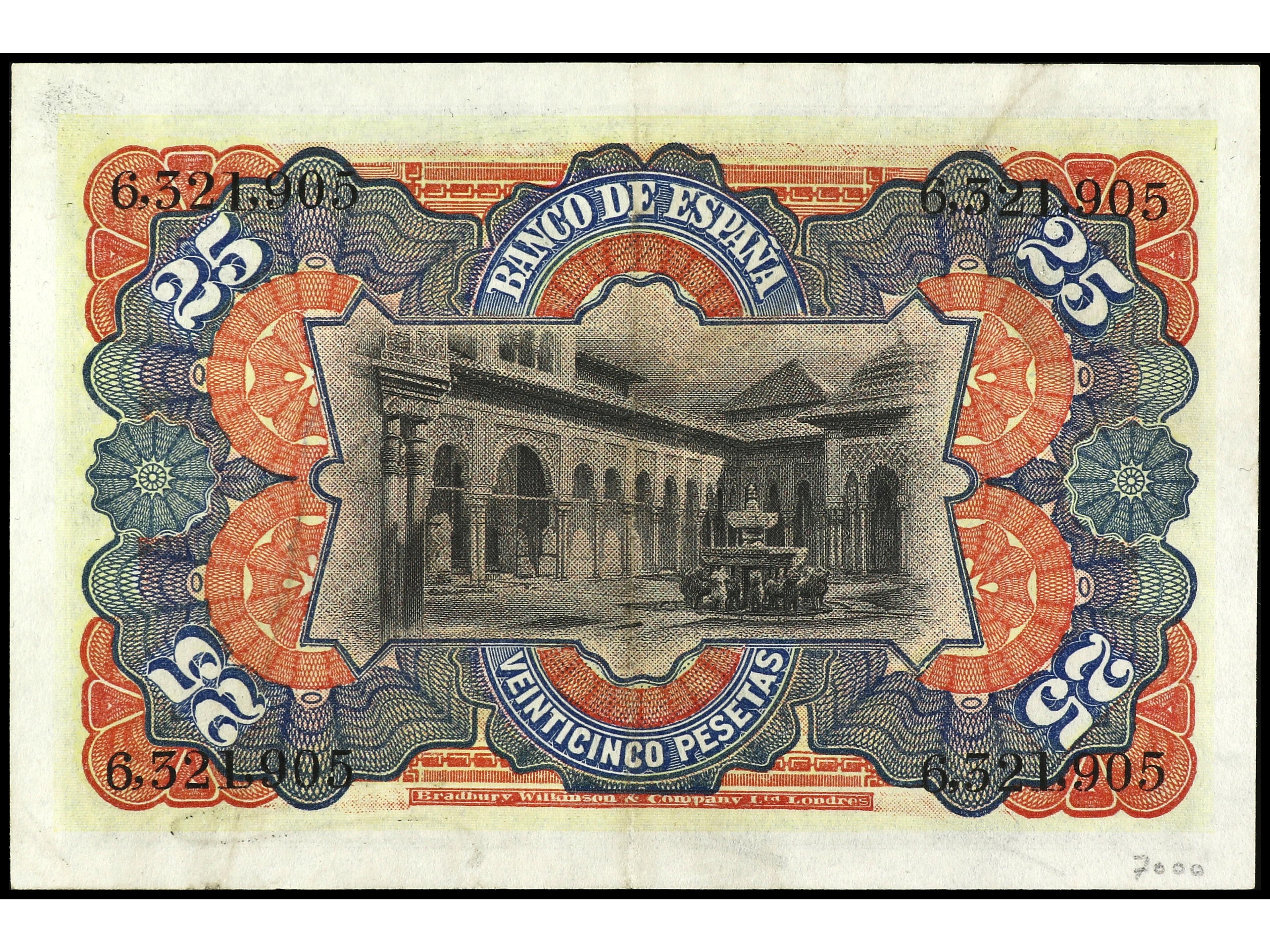 25 Pesetas. 15 Julio 1907. Patio de los Leones. Ed-318. EBC-. (Image1) (Image2)