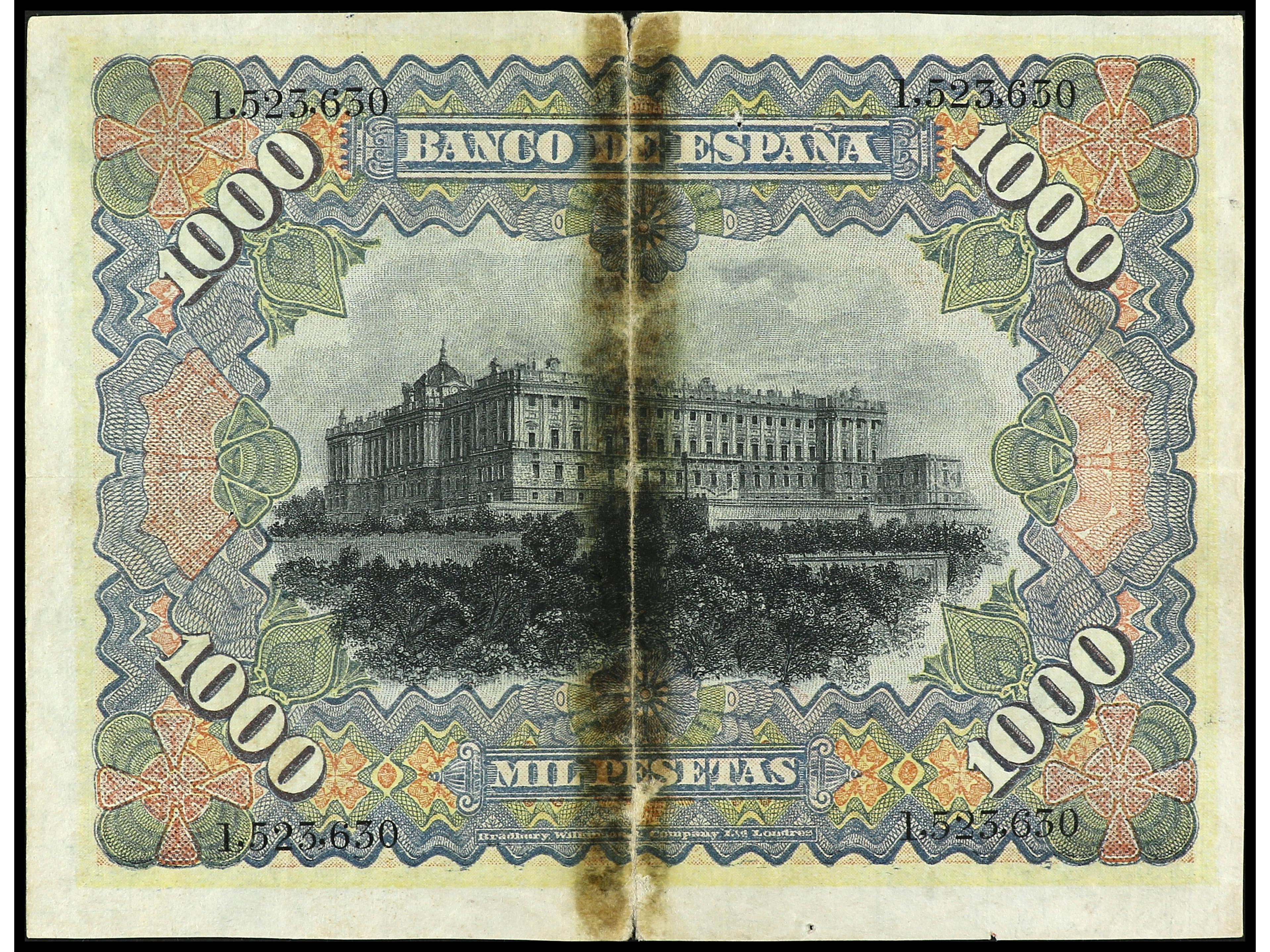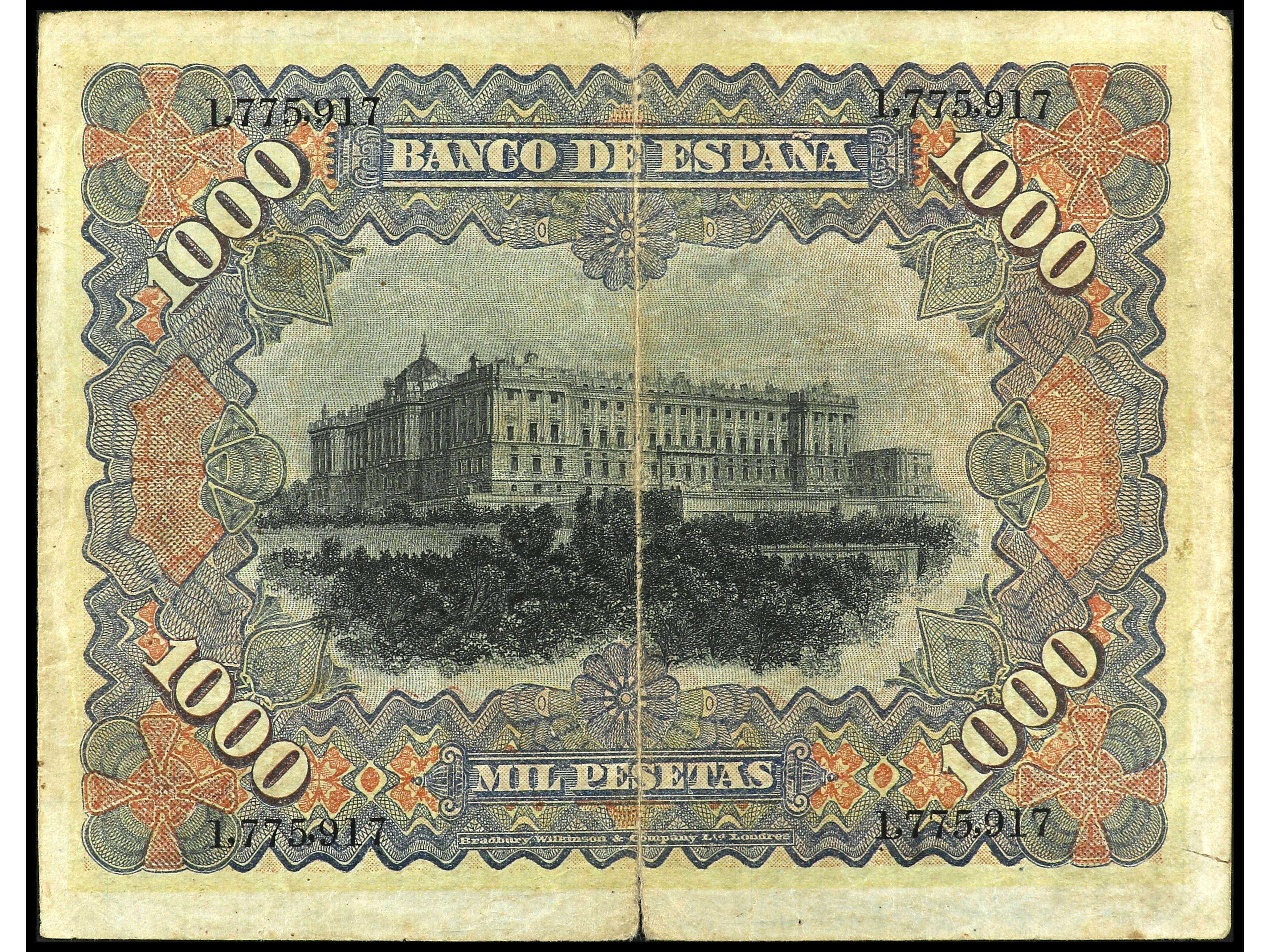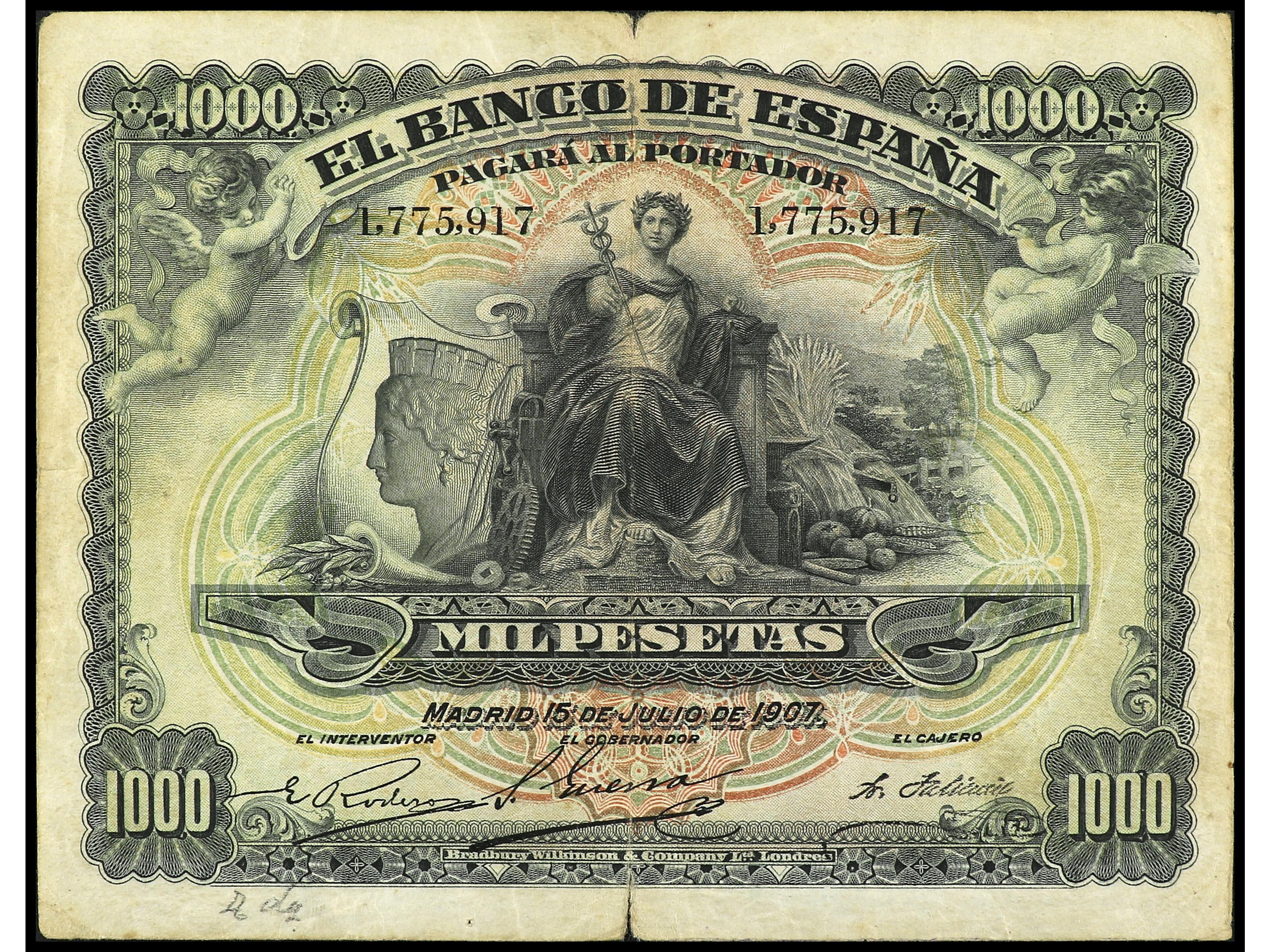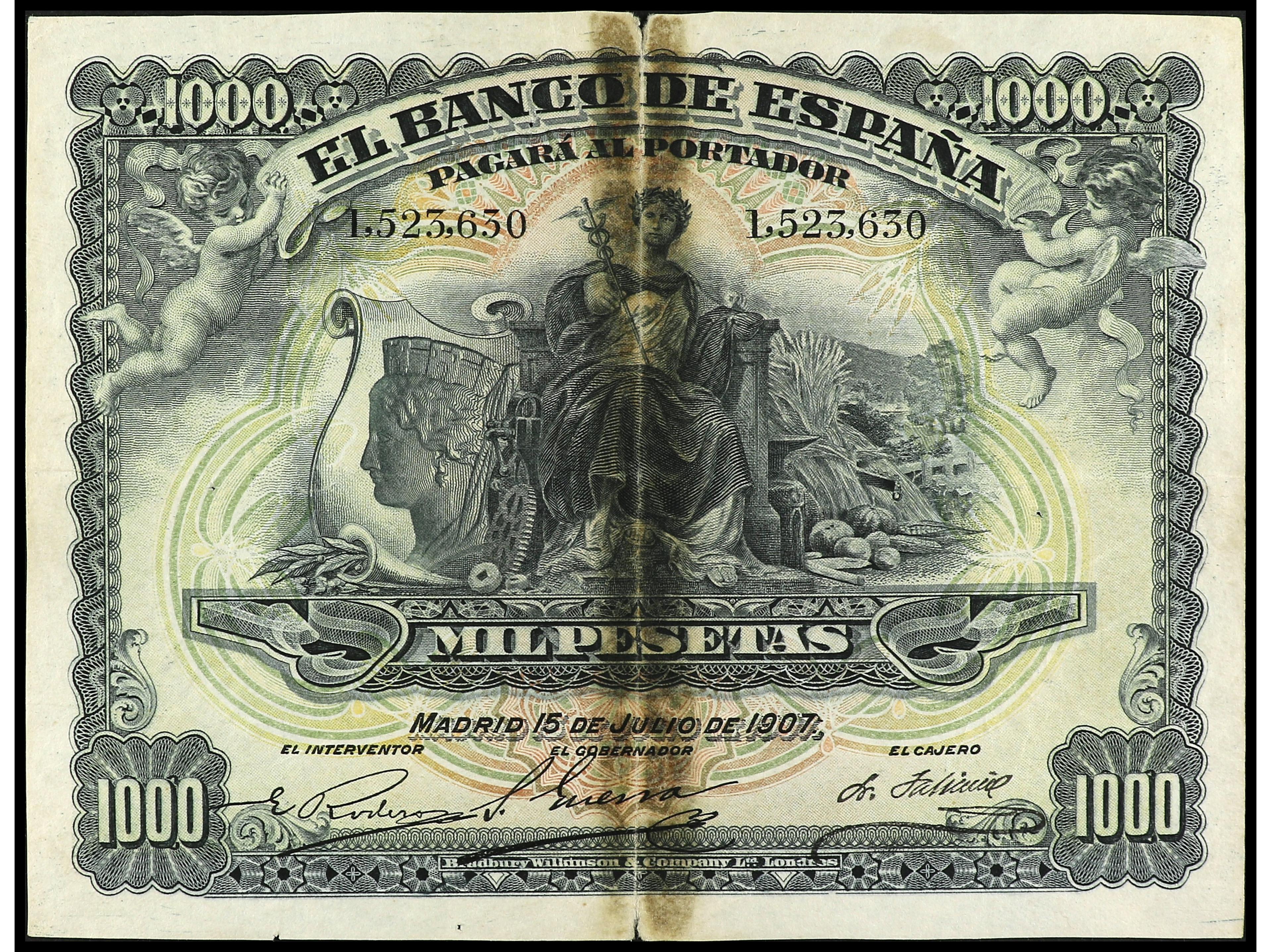1.000 Pesetas. 15 Julio 1907. Palacio Real de Madrid. (Roturas). ESCASO. Ed-322. BC+. (Image1) (Image2)