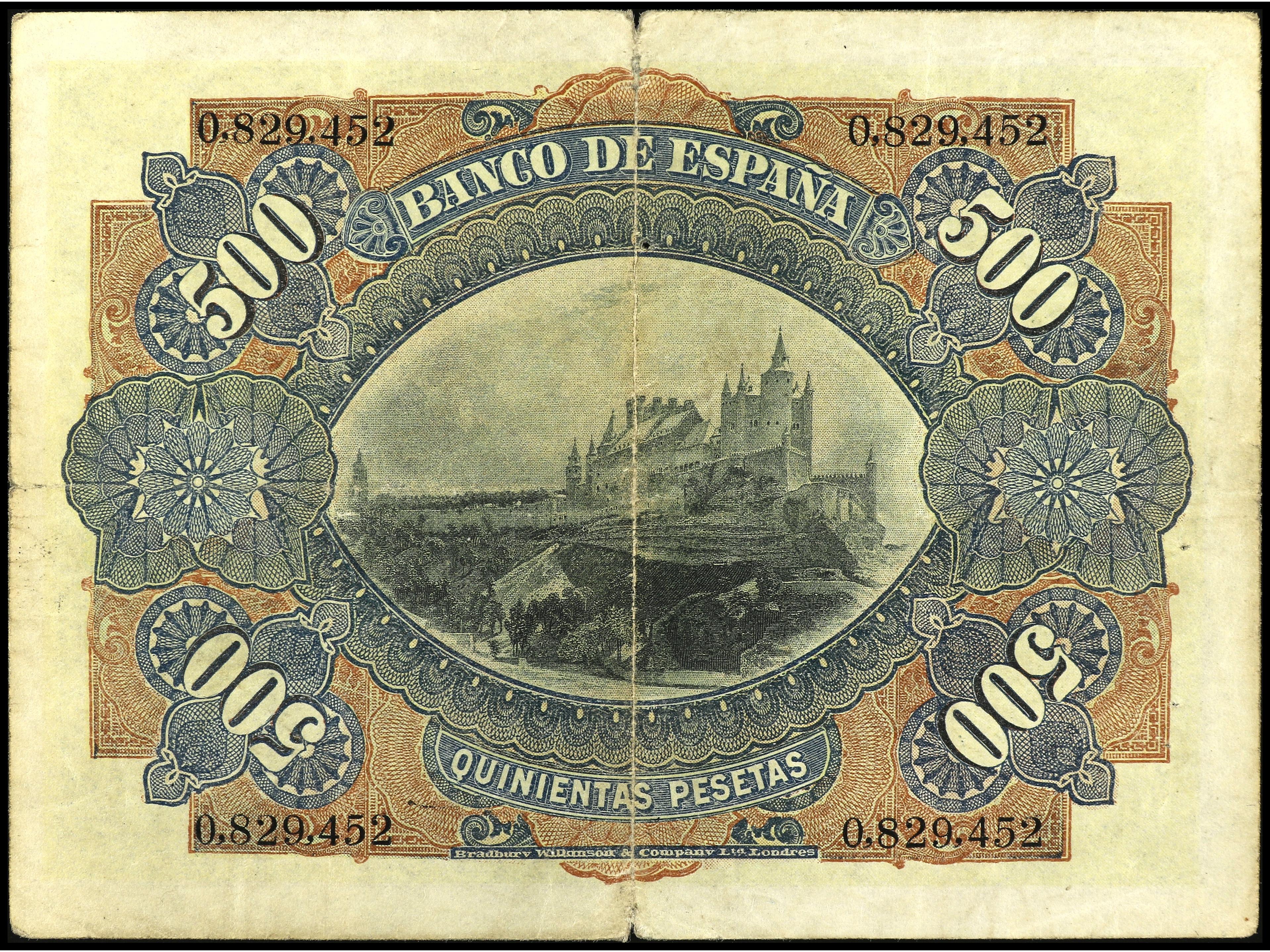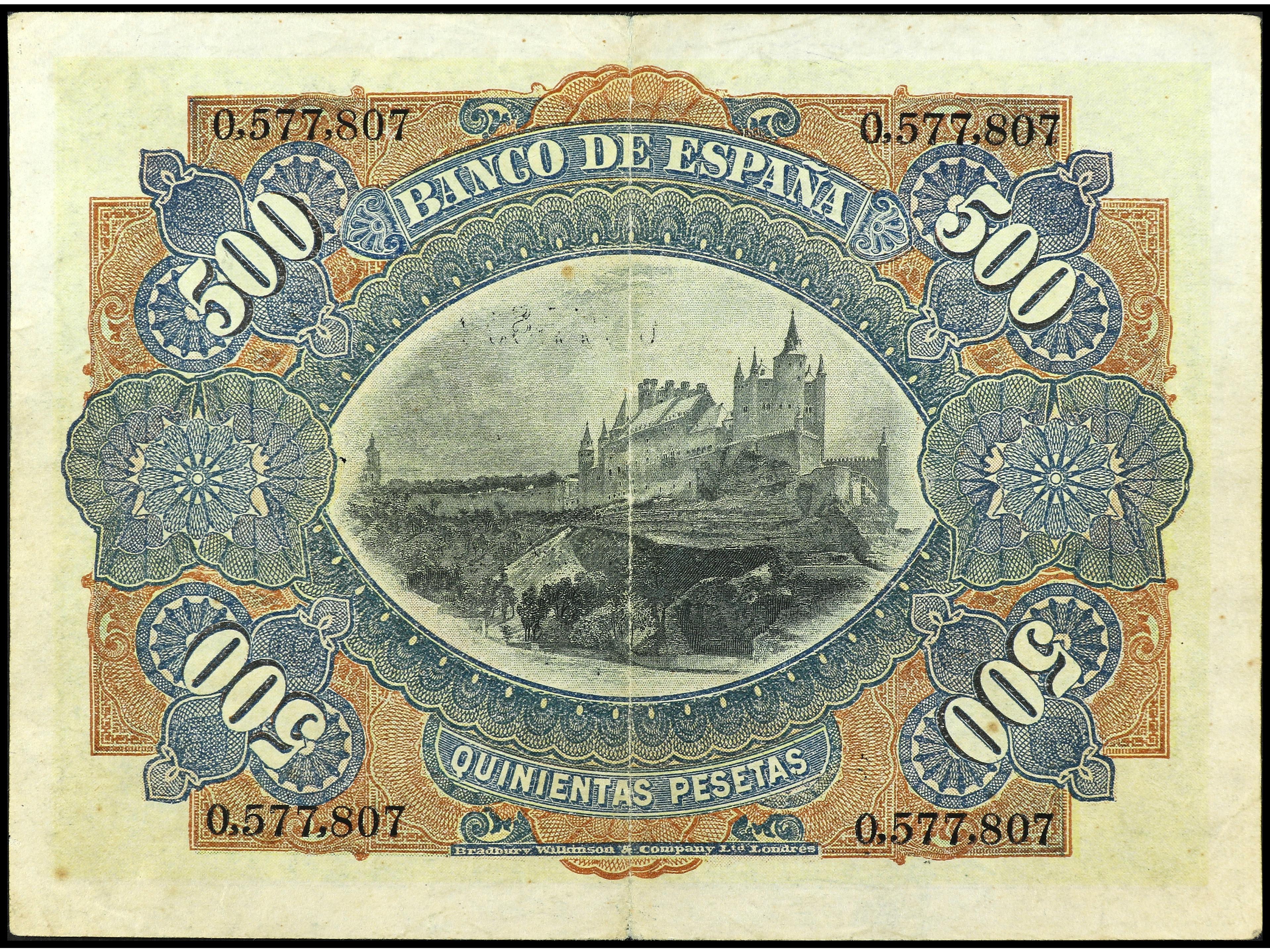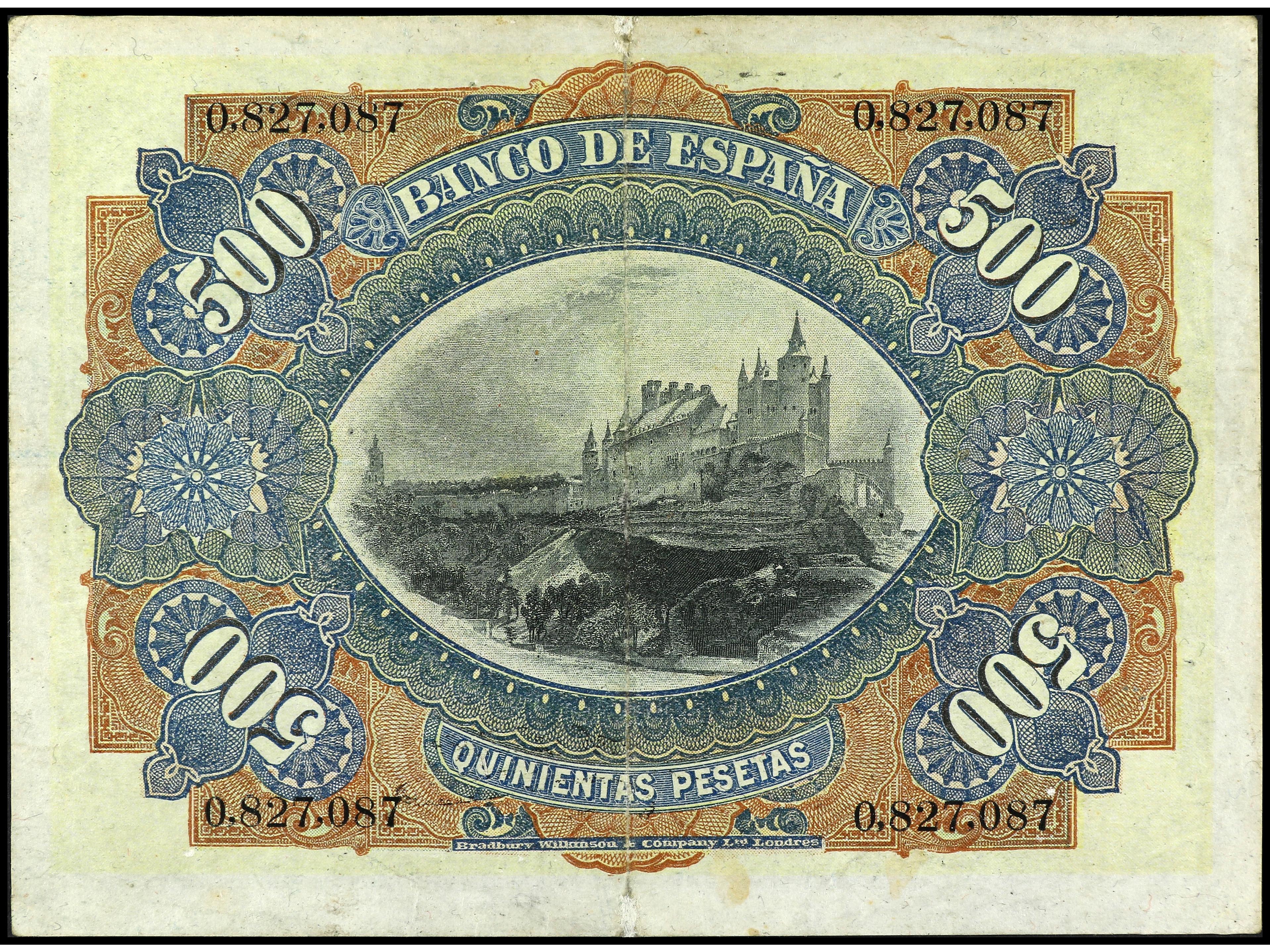 500 Pesetas. 15 Julio 1907. Alcazar de Segovia. ( (Pequeñas reparaciones). Ed-321. MBC+. (Image1) (Image2)