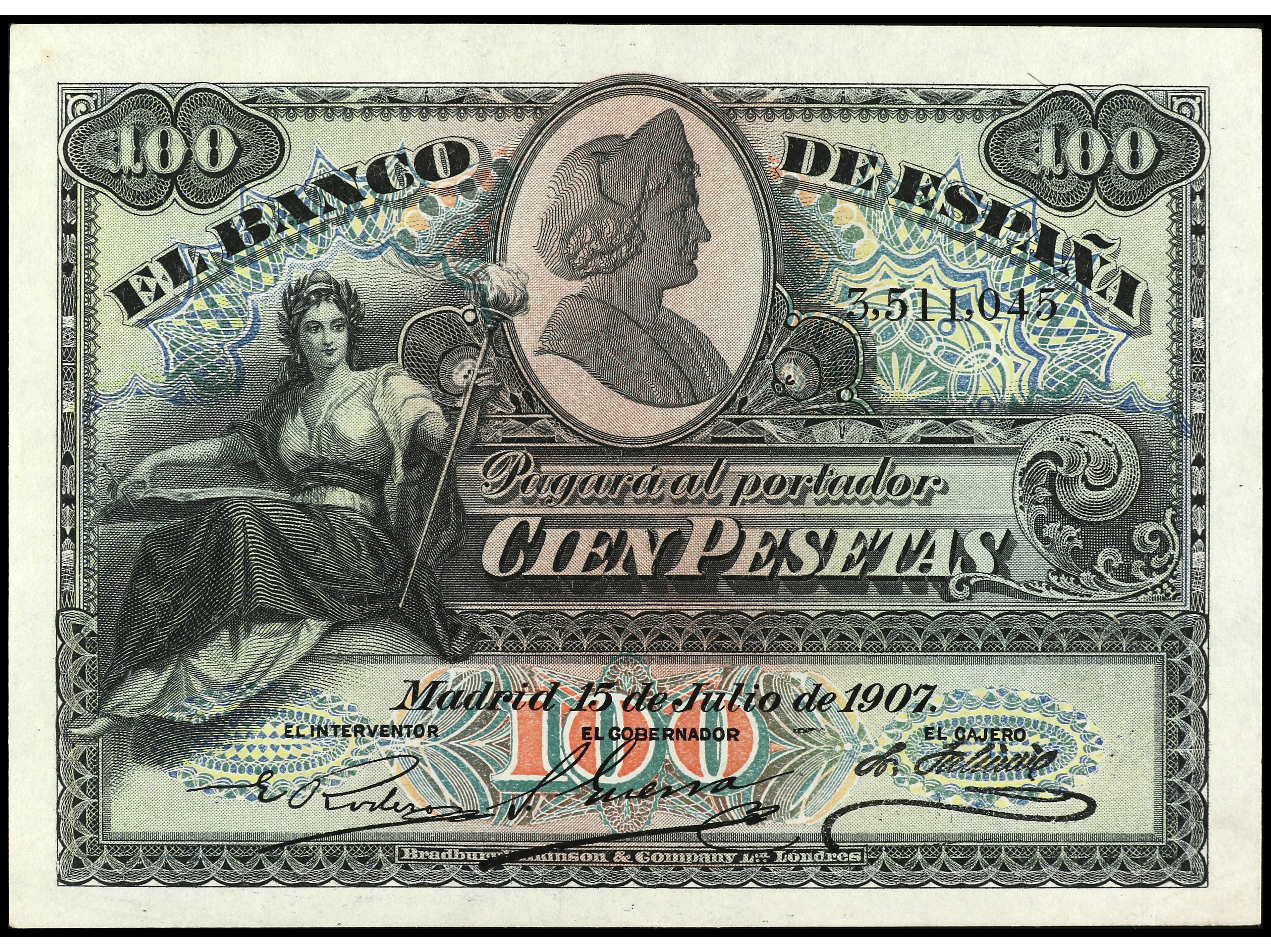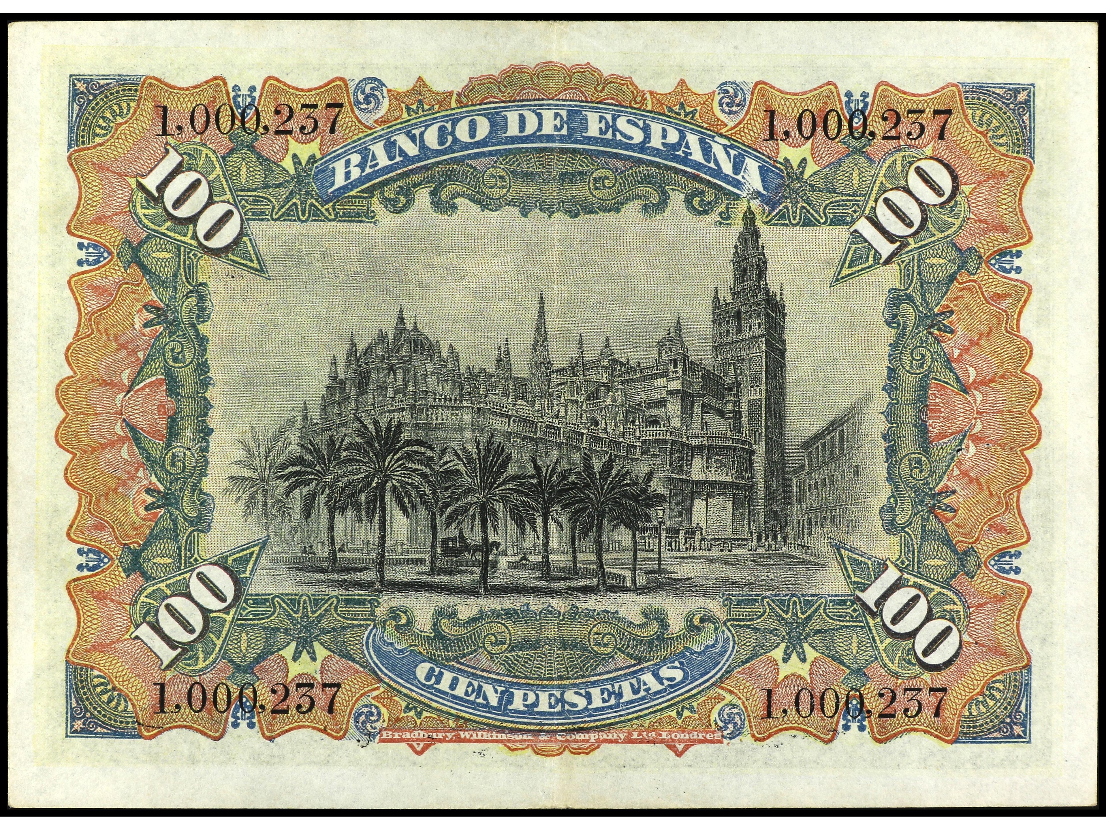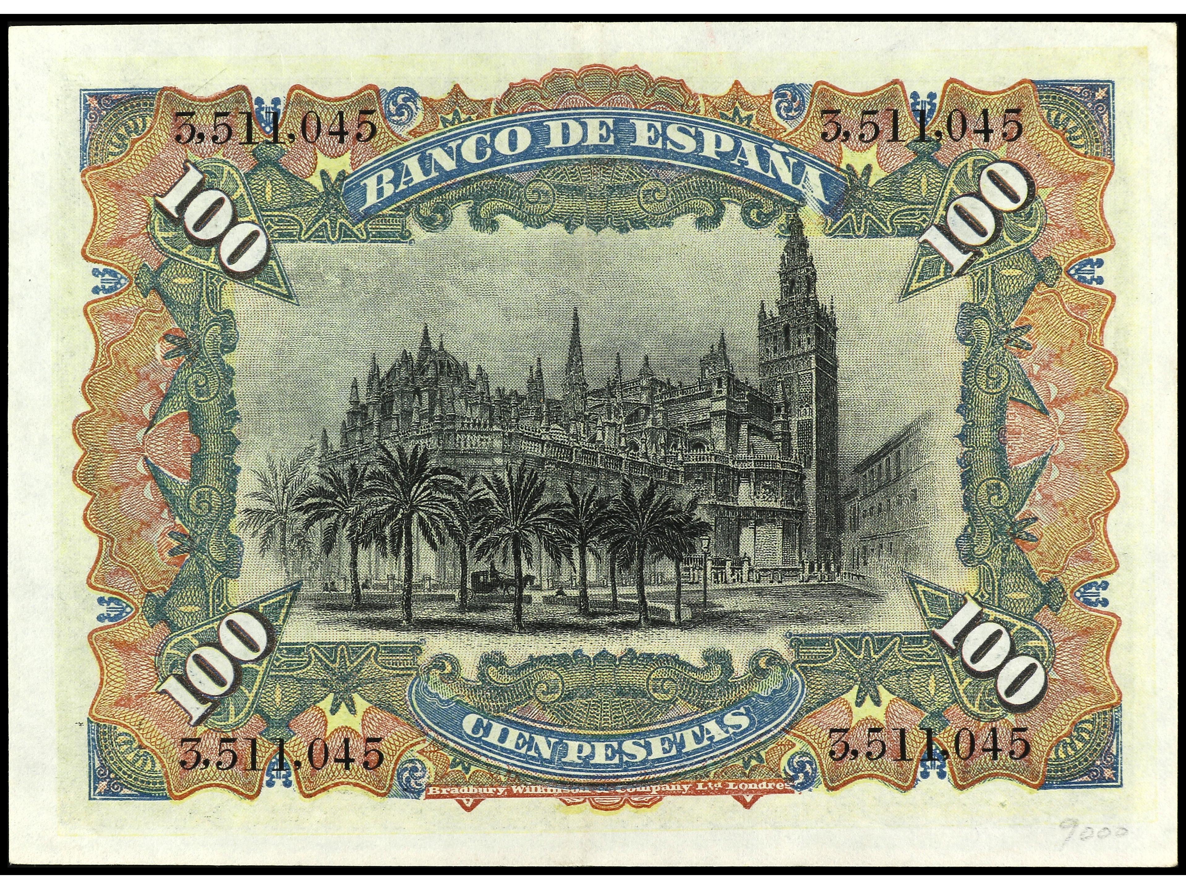 100 Pesetas. 15 Julio 1907. Catedral de Sevilla. Ed-320. EBC-. (Image1) (Image2)