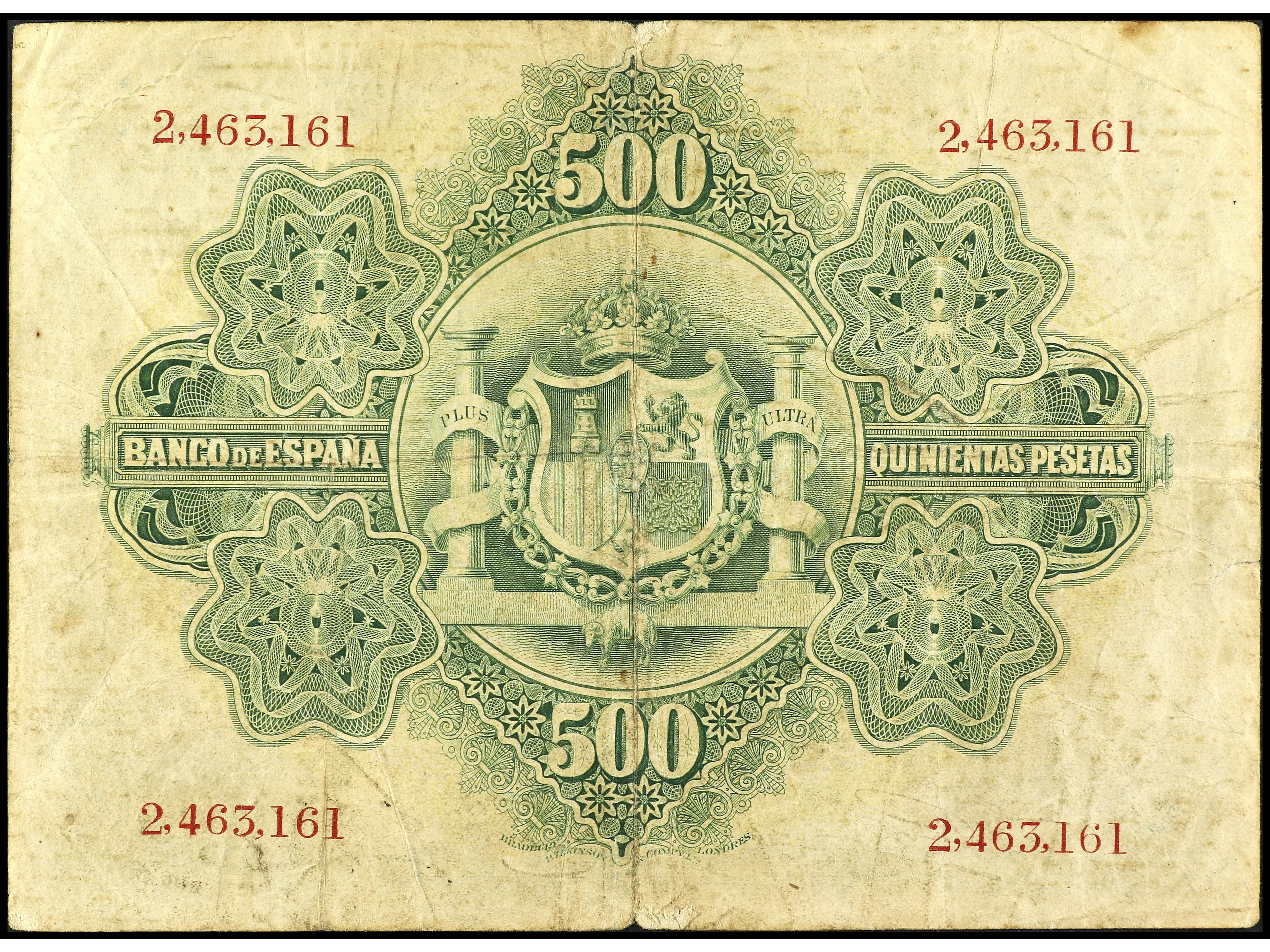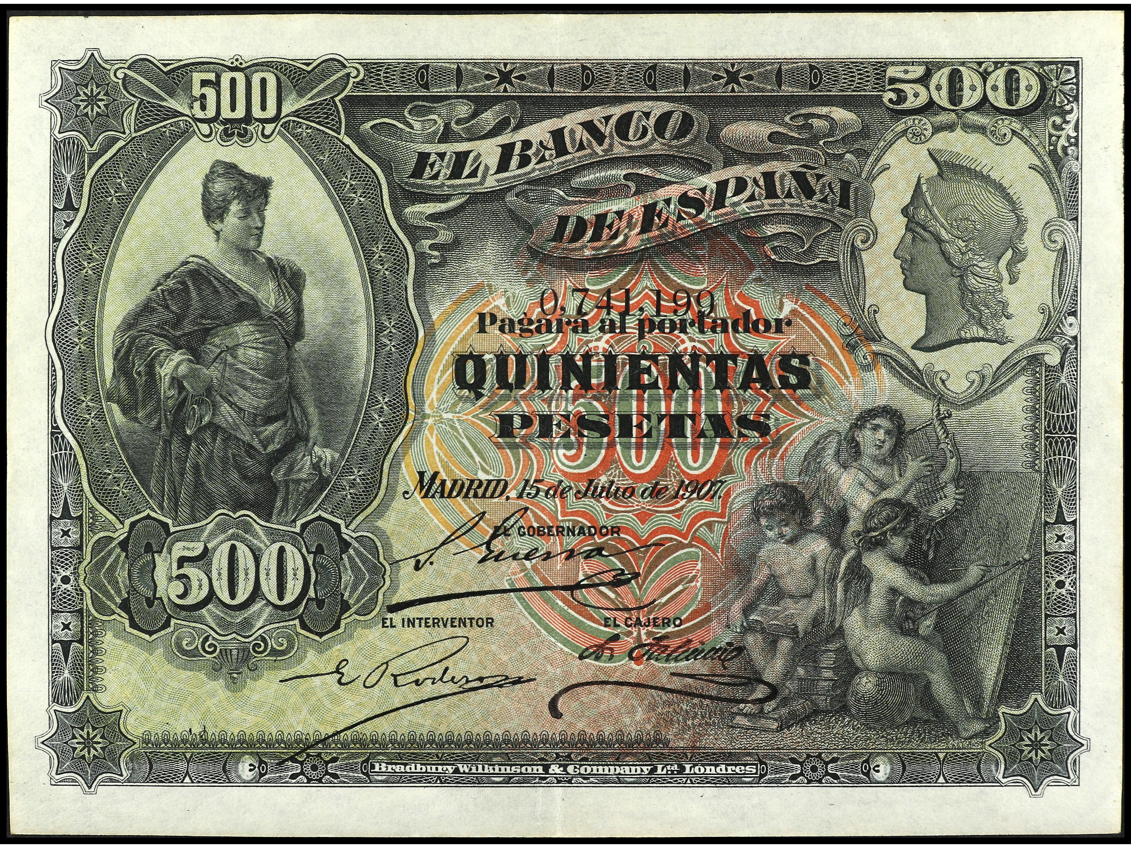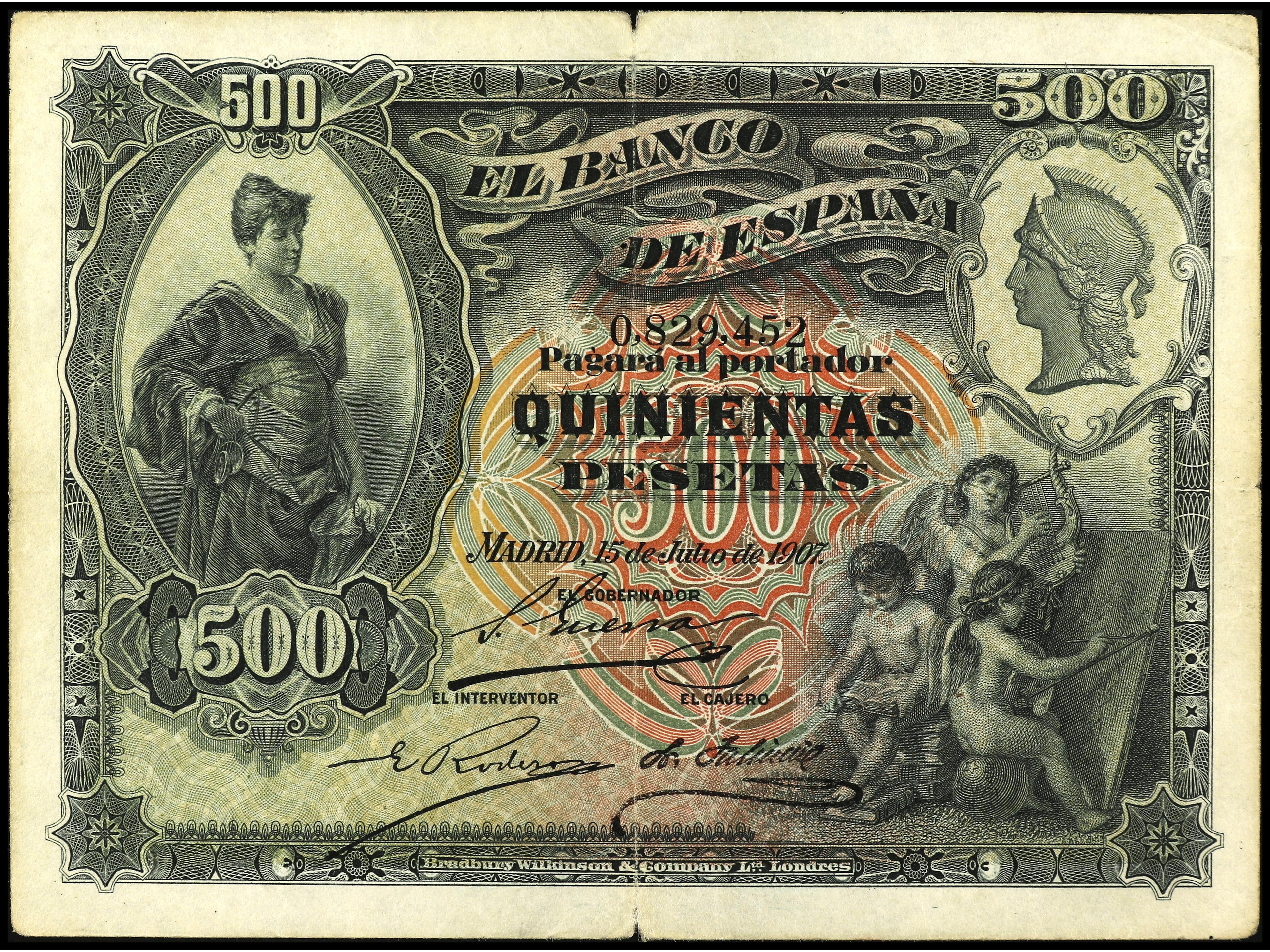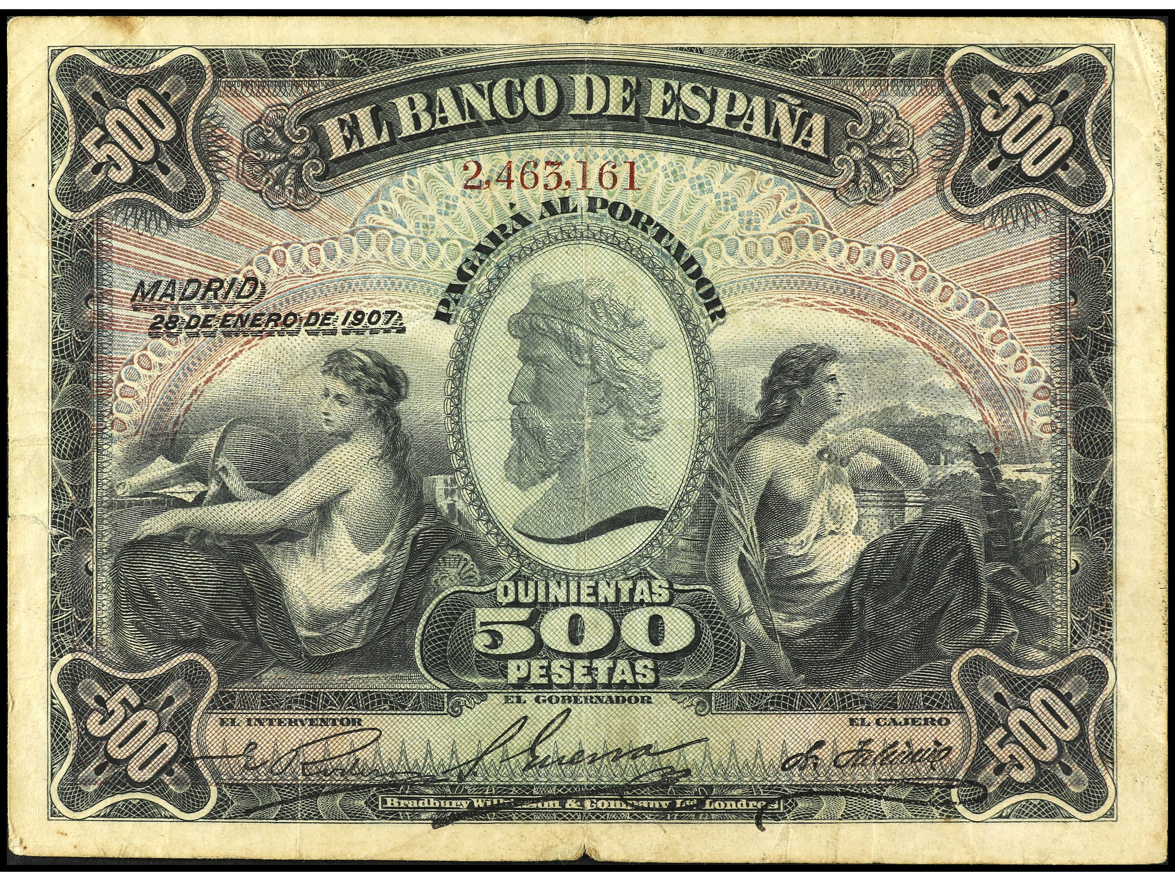 500 Pesetas. 28 Enero 1907. (Roturas). MUY ESCASO. Ed-316. MBC-. (Image1) (Image2)