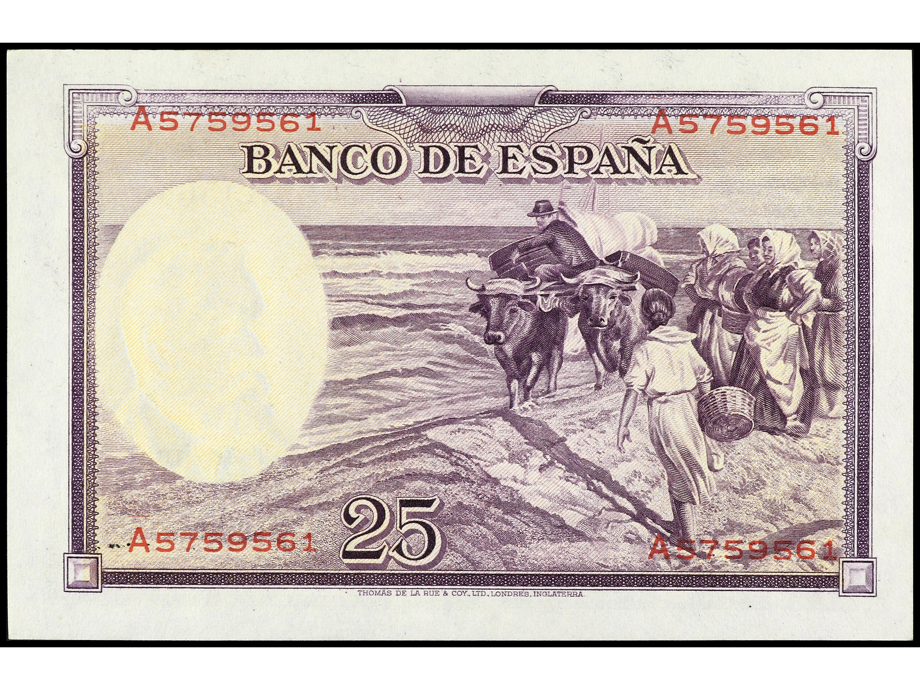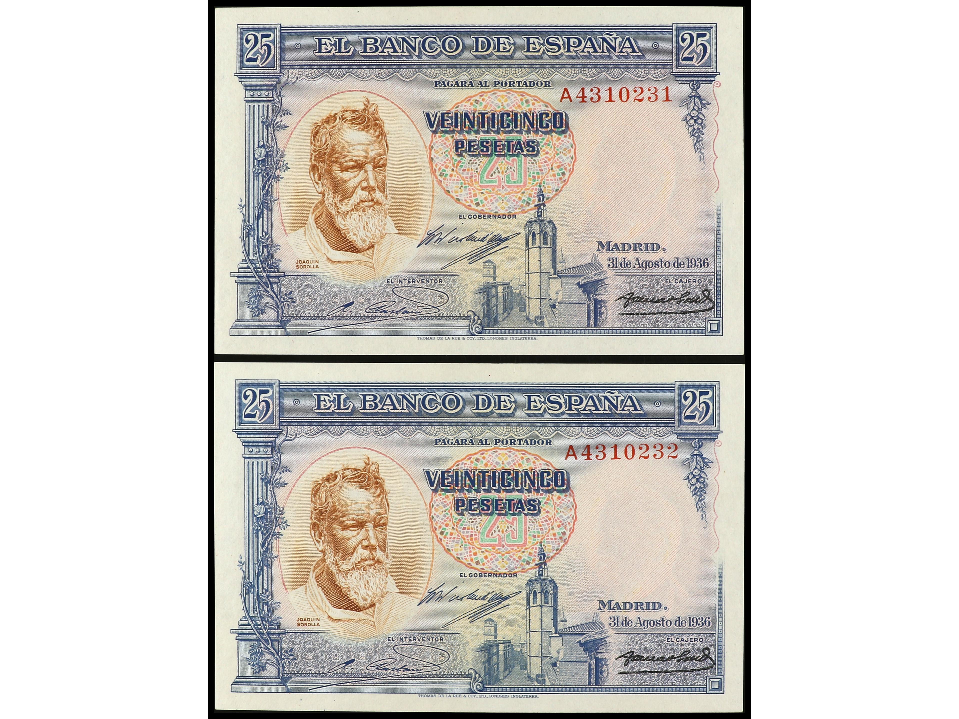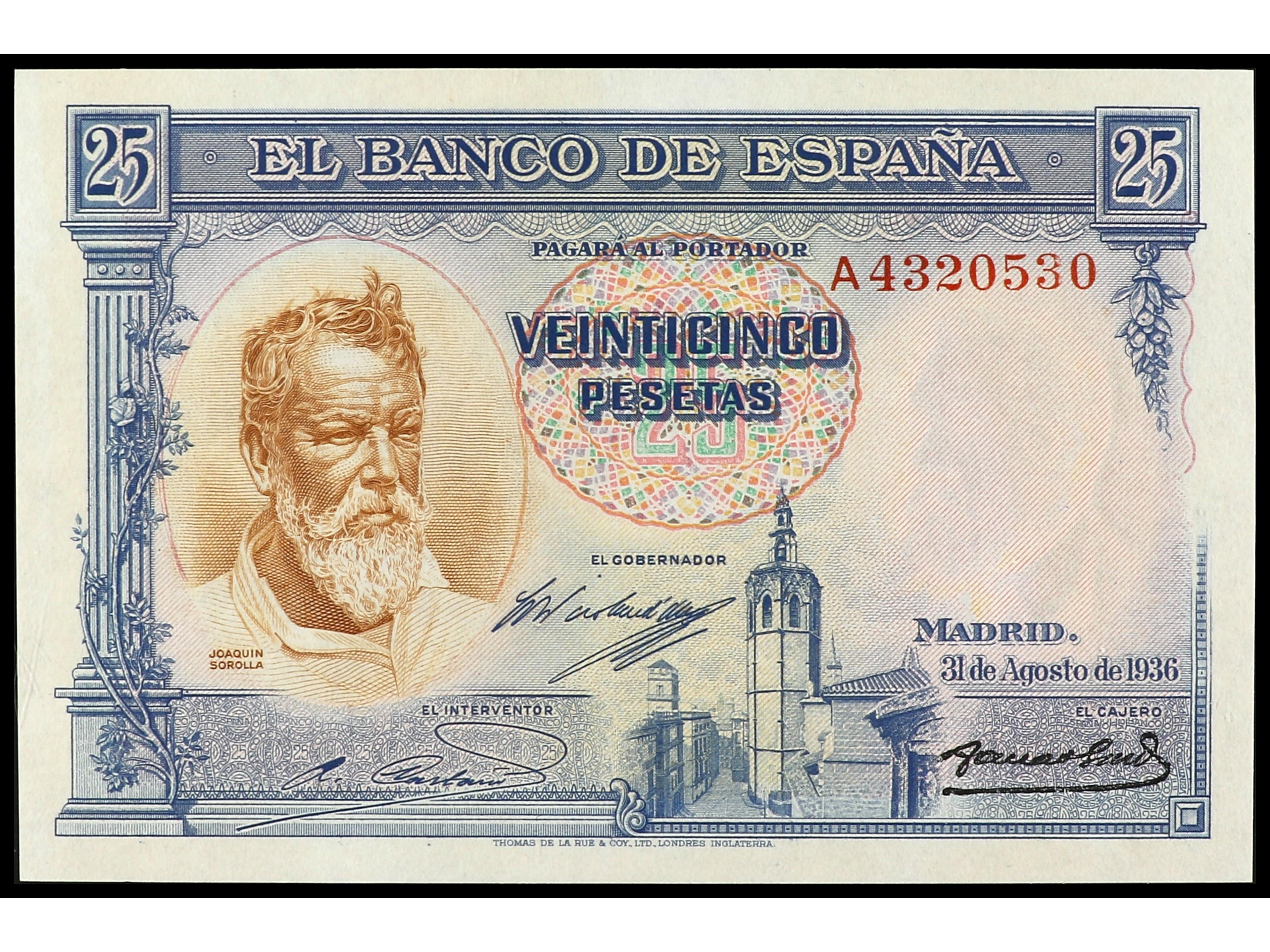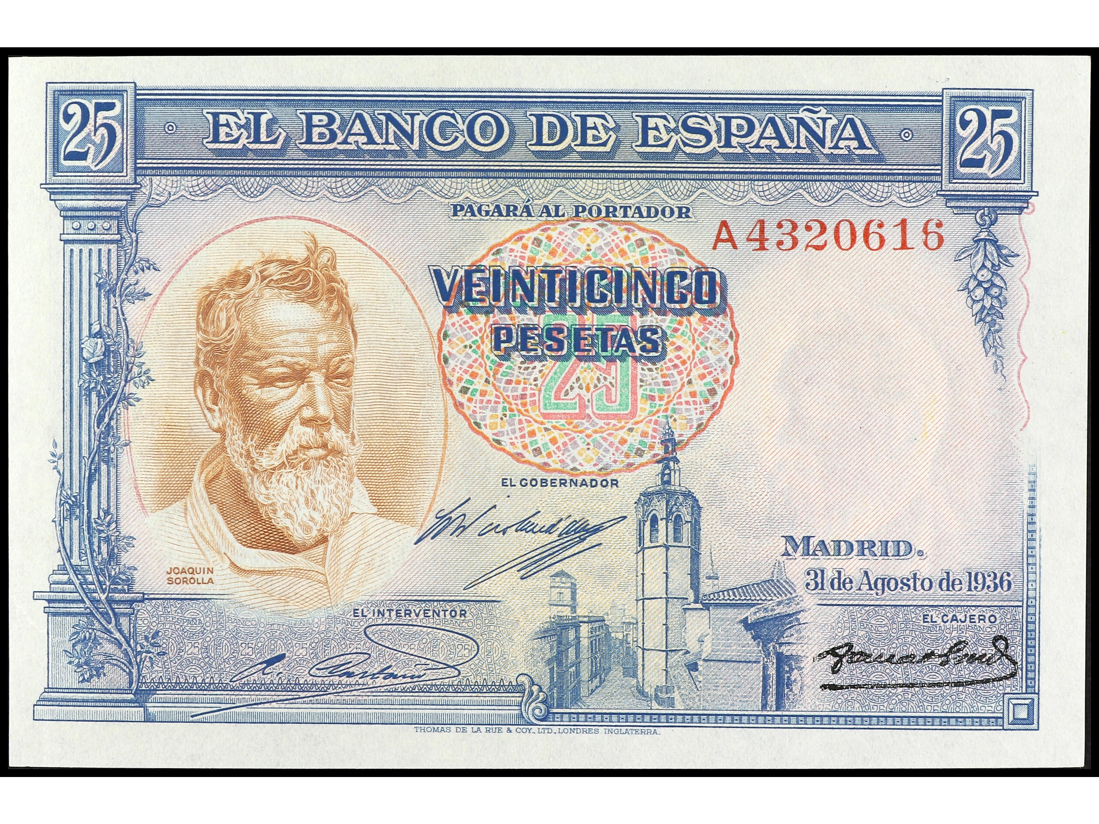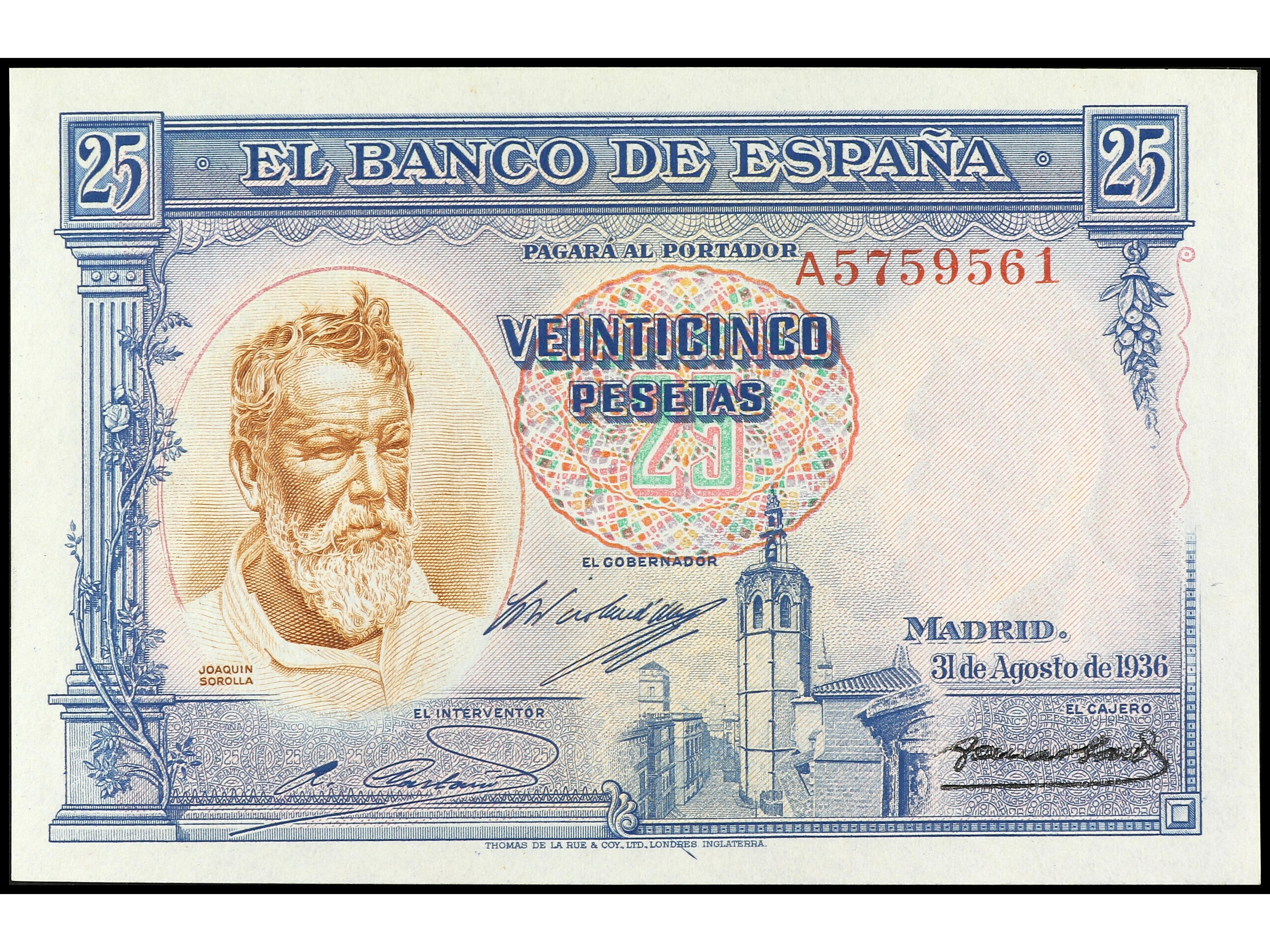 25 Pesetas. 31 Agosto 1936. Sorolla. Serie A. Ed-367a. SC-. (Image1) (Image2)