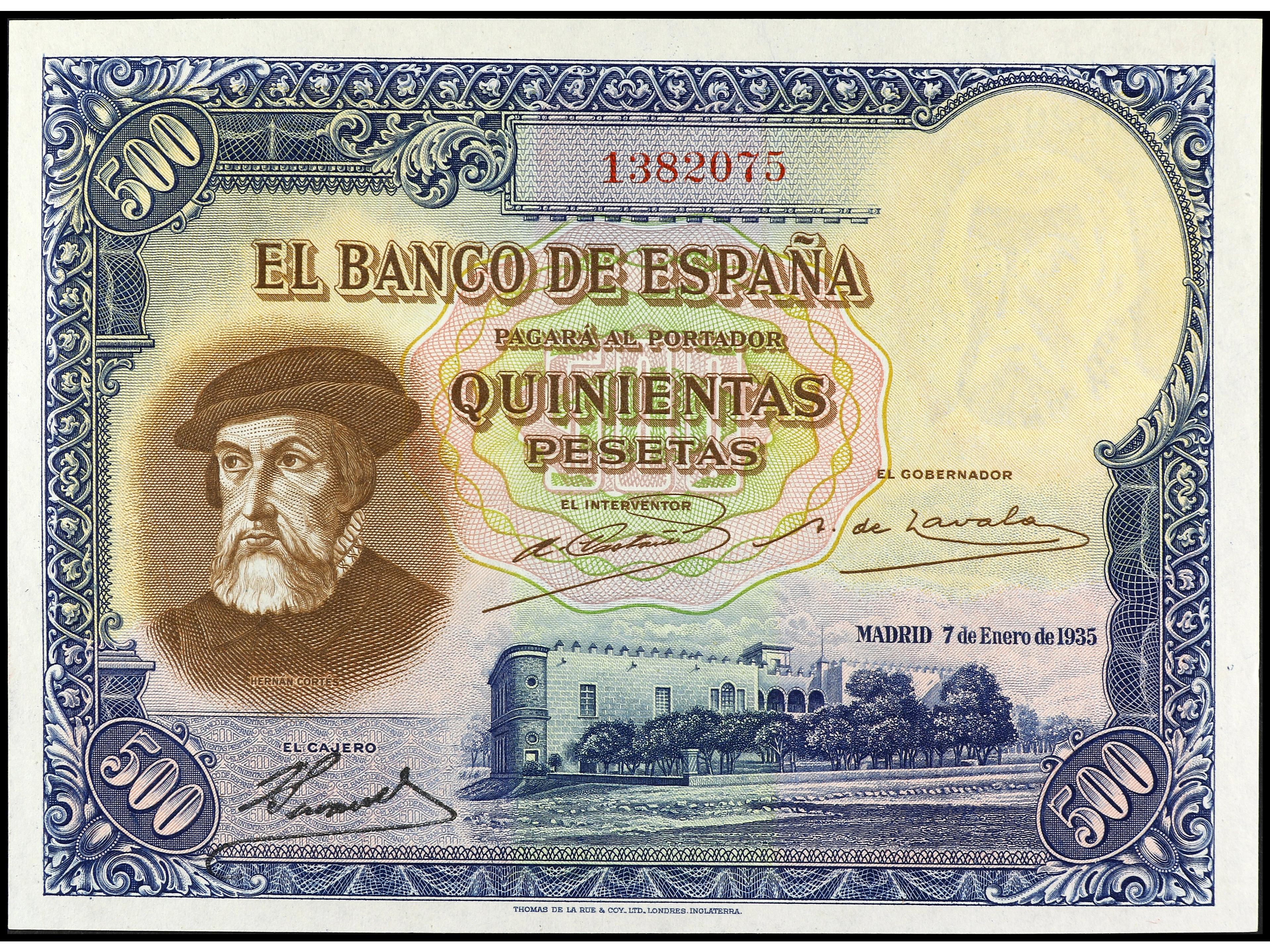 500 Pesetas. 7 Enero 1935. Hernán Cortés. (Alguna levísima doblez en esquina). Ed-365. SC. (Image1) (Image2)
