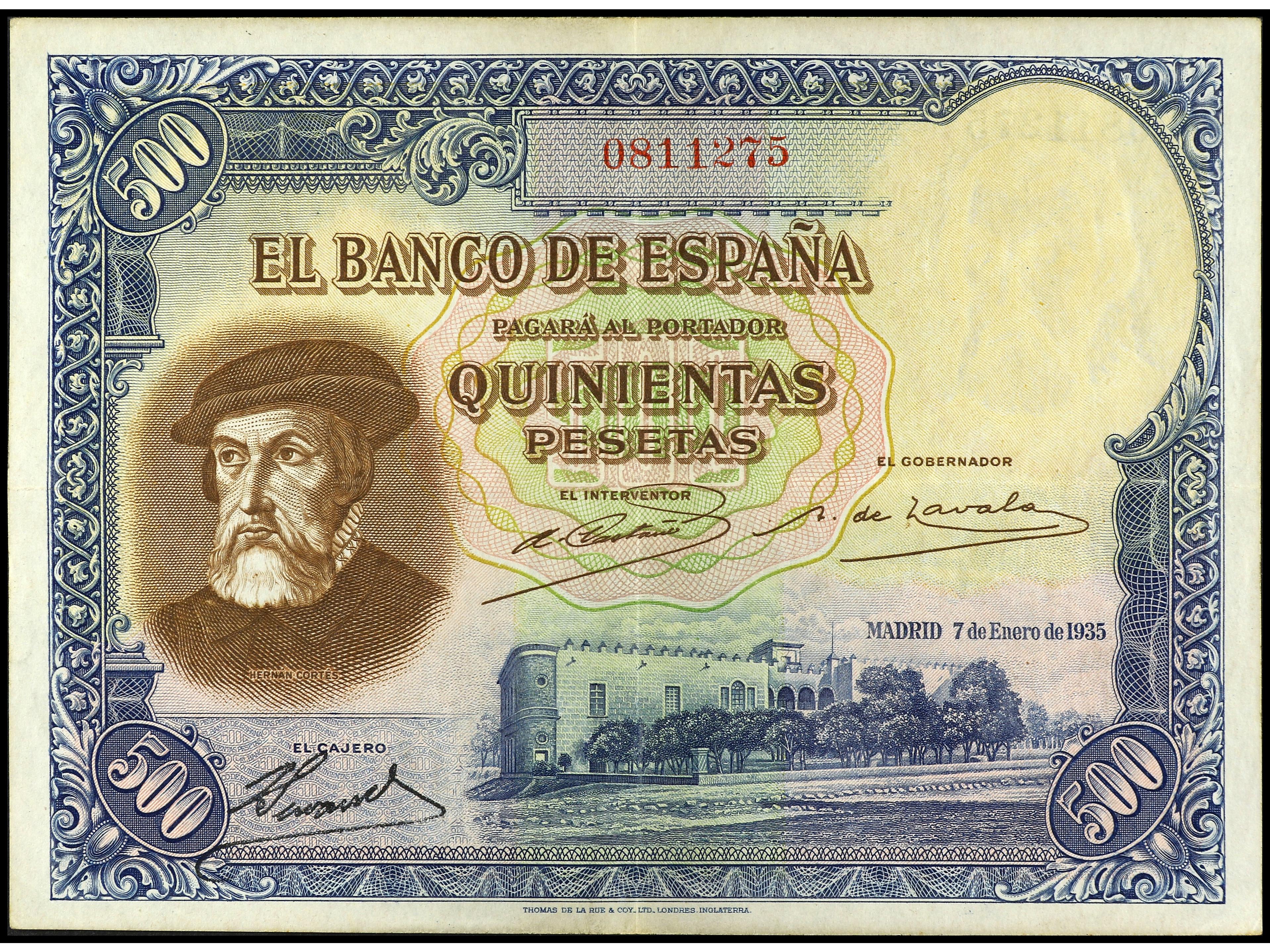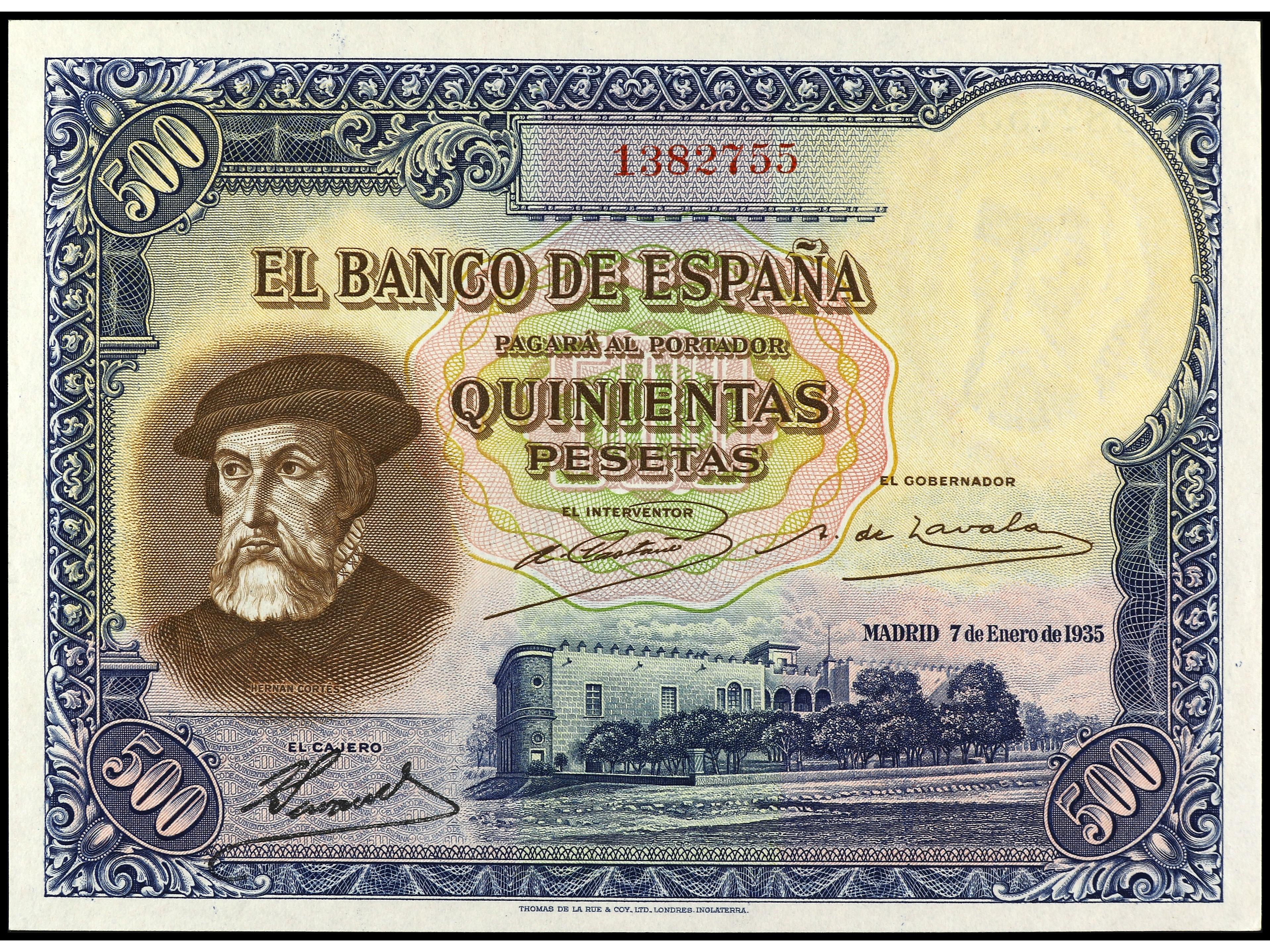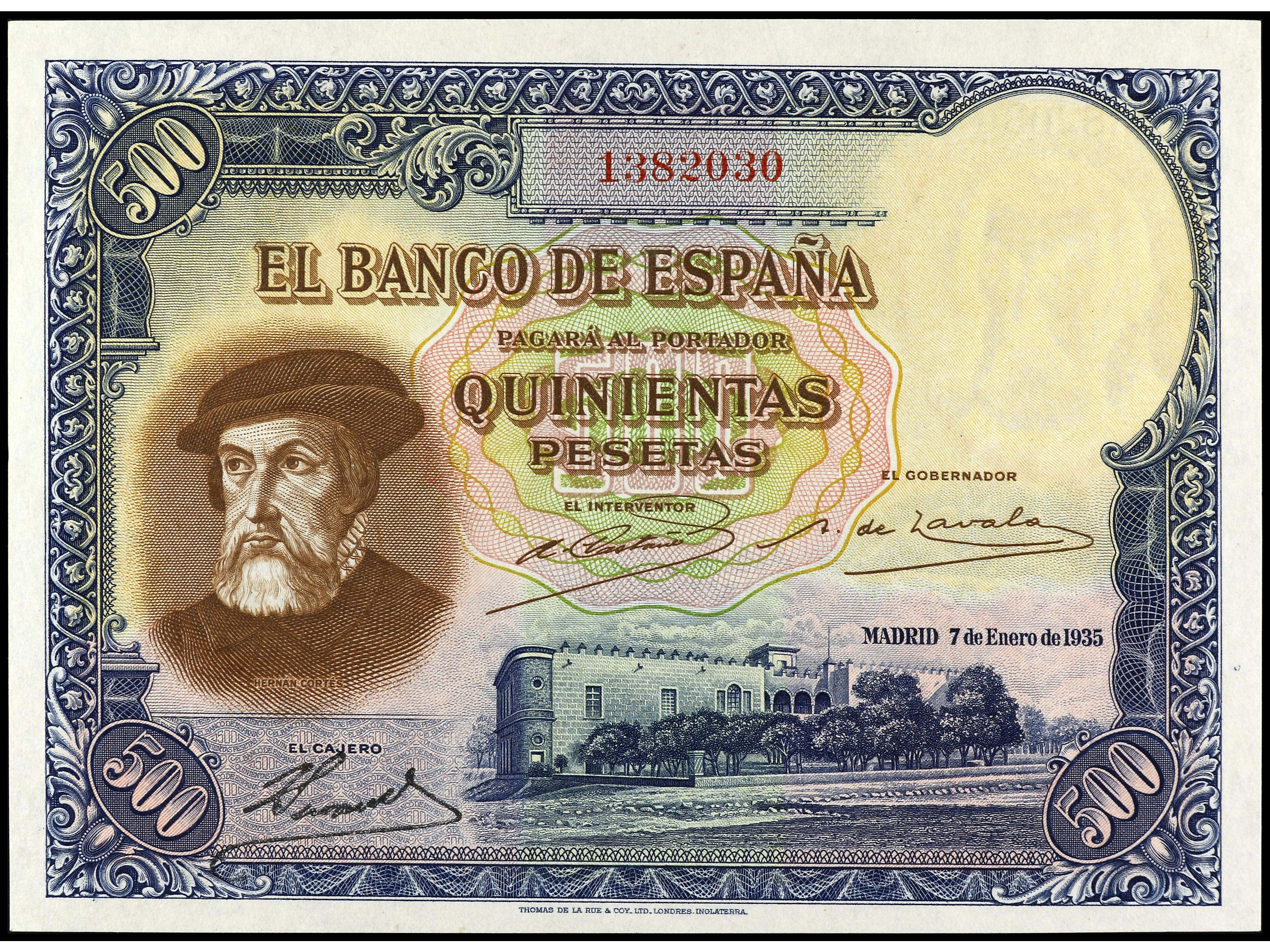 500 Pesetas. 7 Enero 1935. Hernán Cortés. ( (Arruguitas). Ed-365. SC-. (Image1) (Image2)