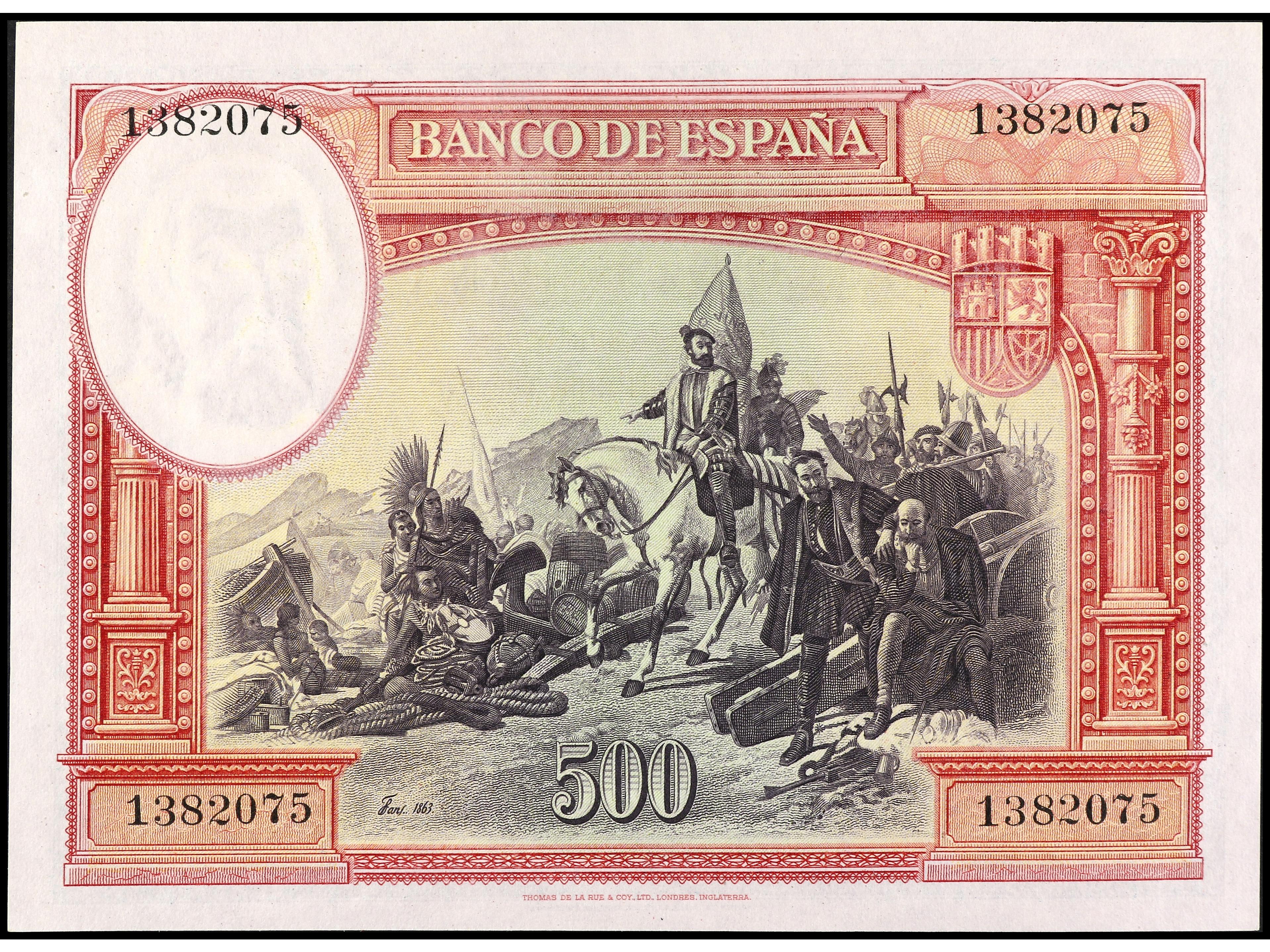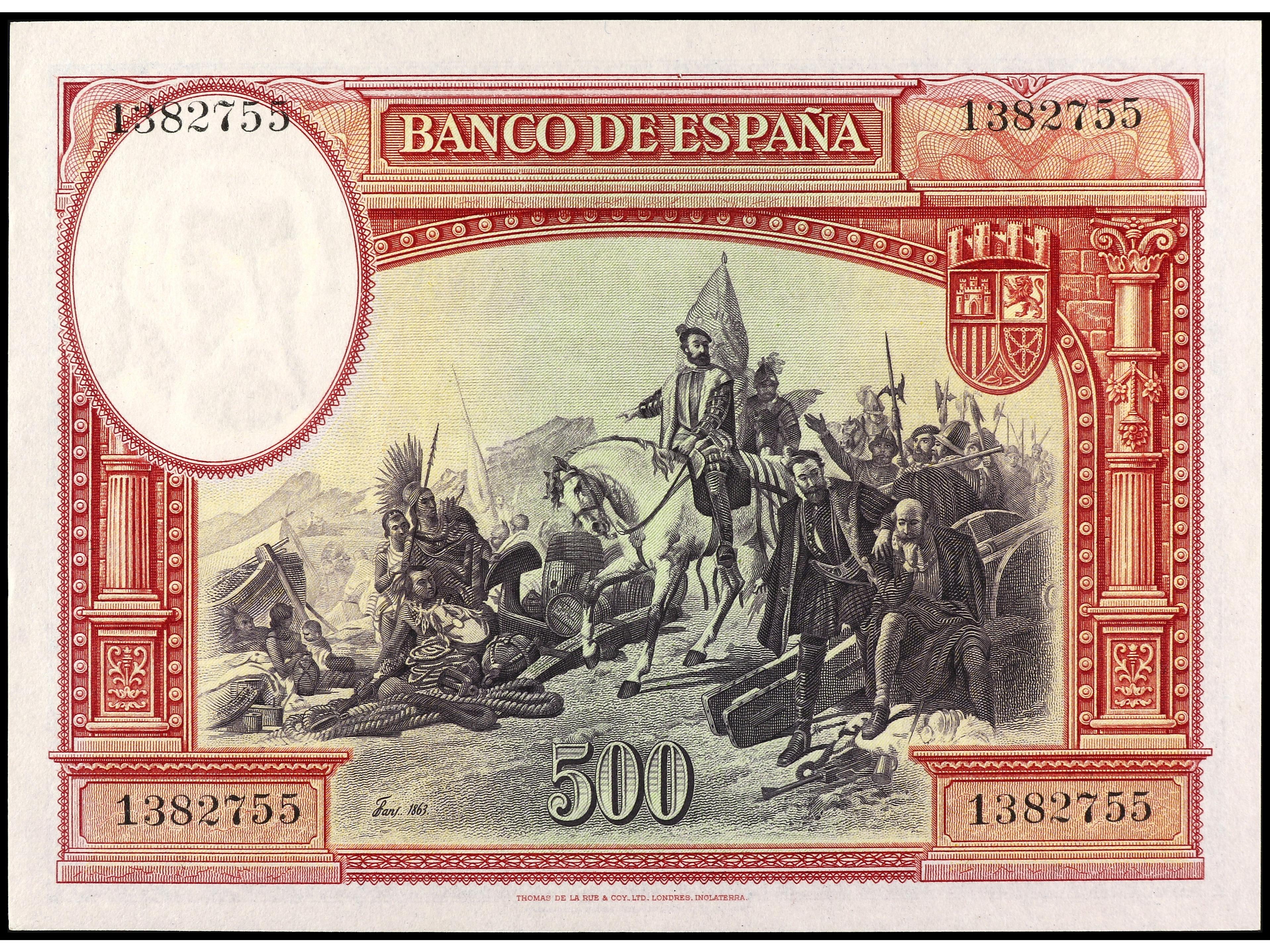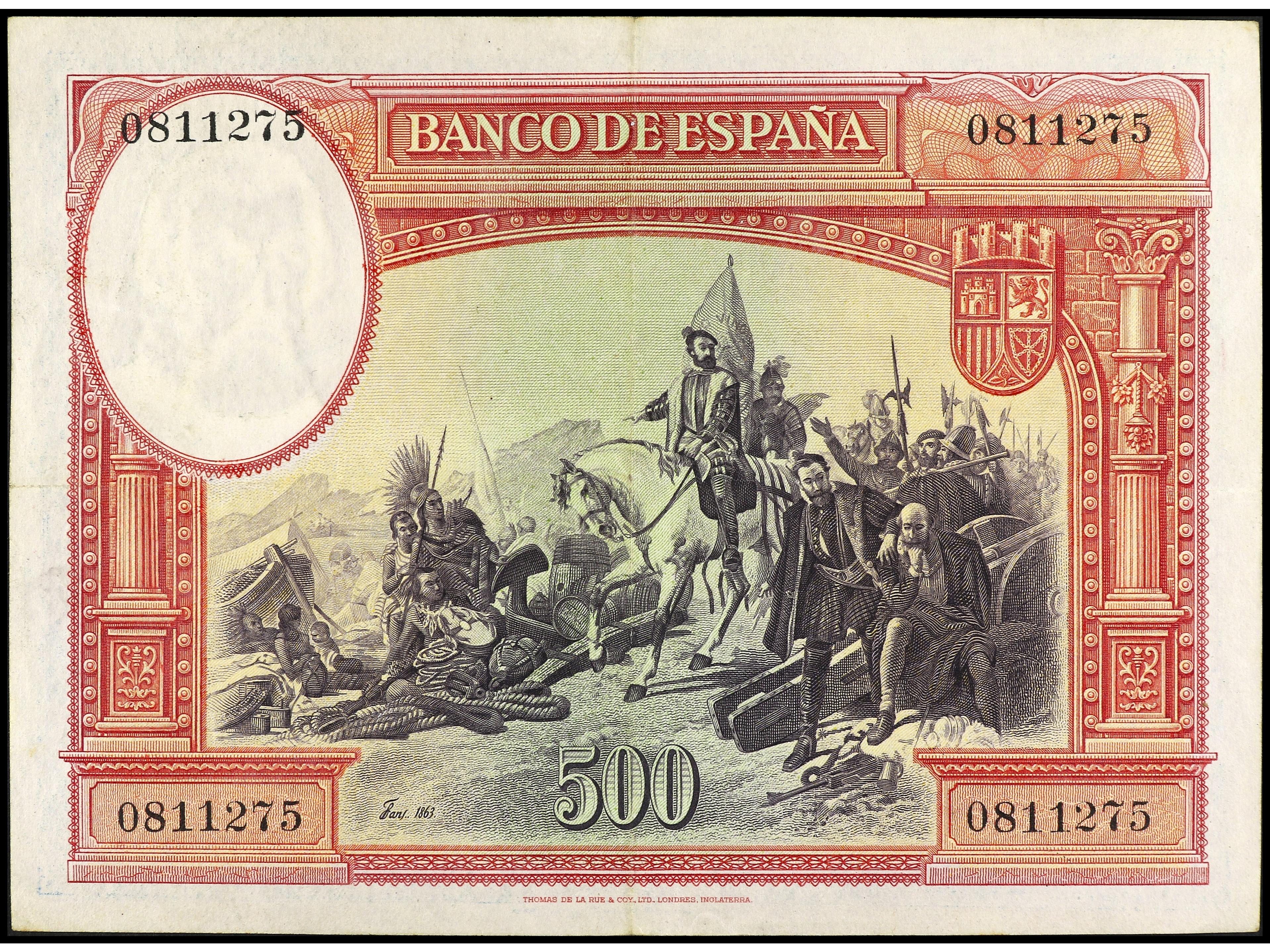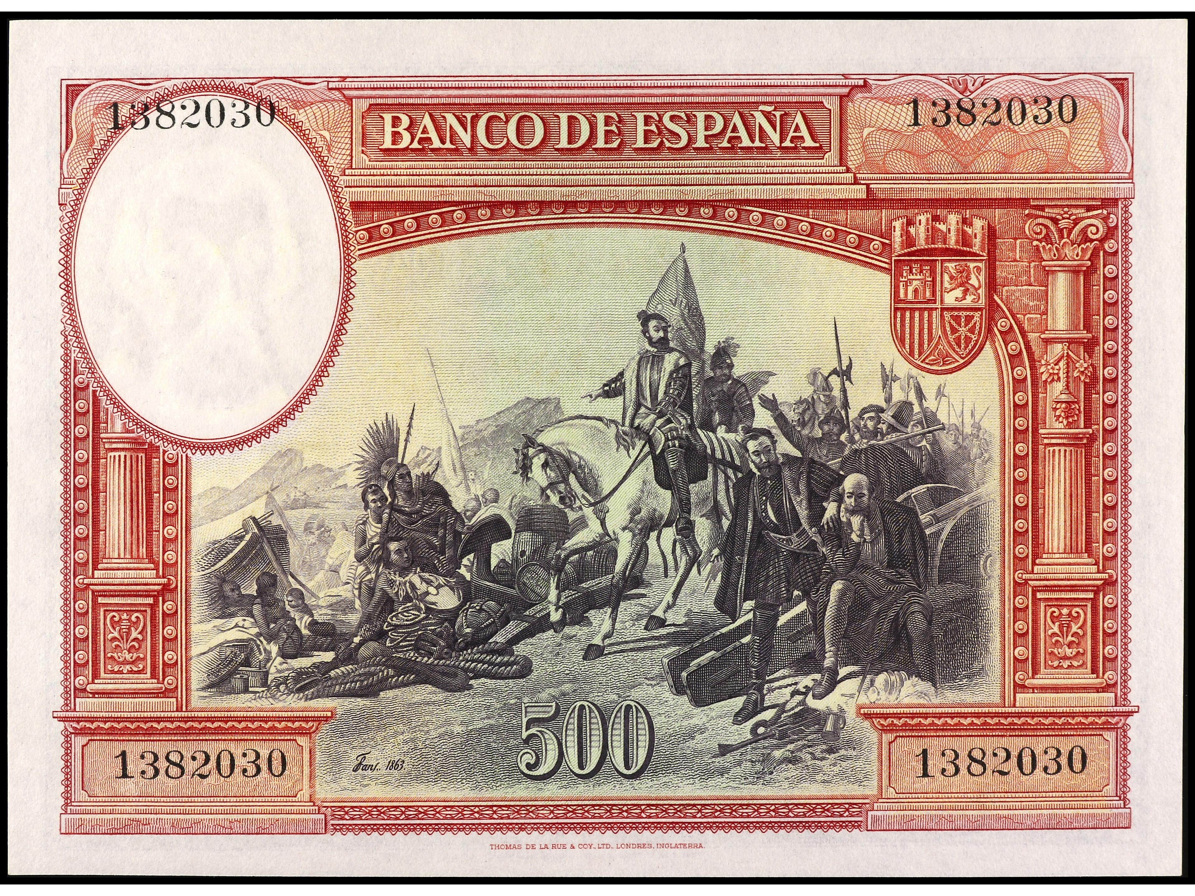 500 Pesetas. 7 Enero 1935. Hernán Cortés. ( (Arruguitas). Ed-365. SC-. (Image1) (Image2)