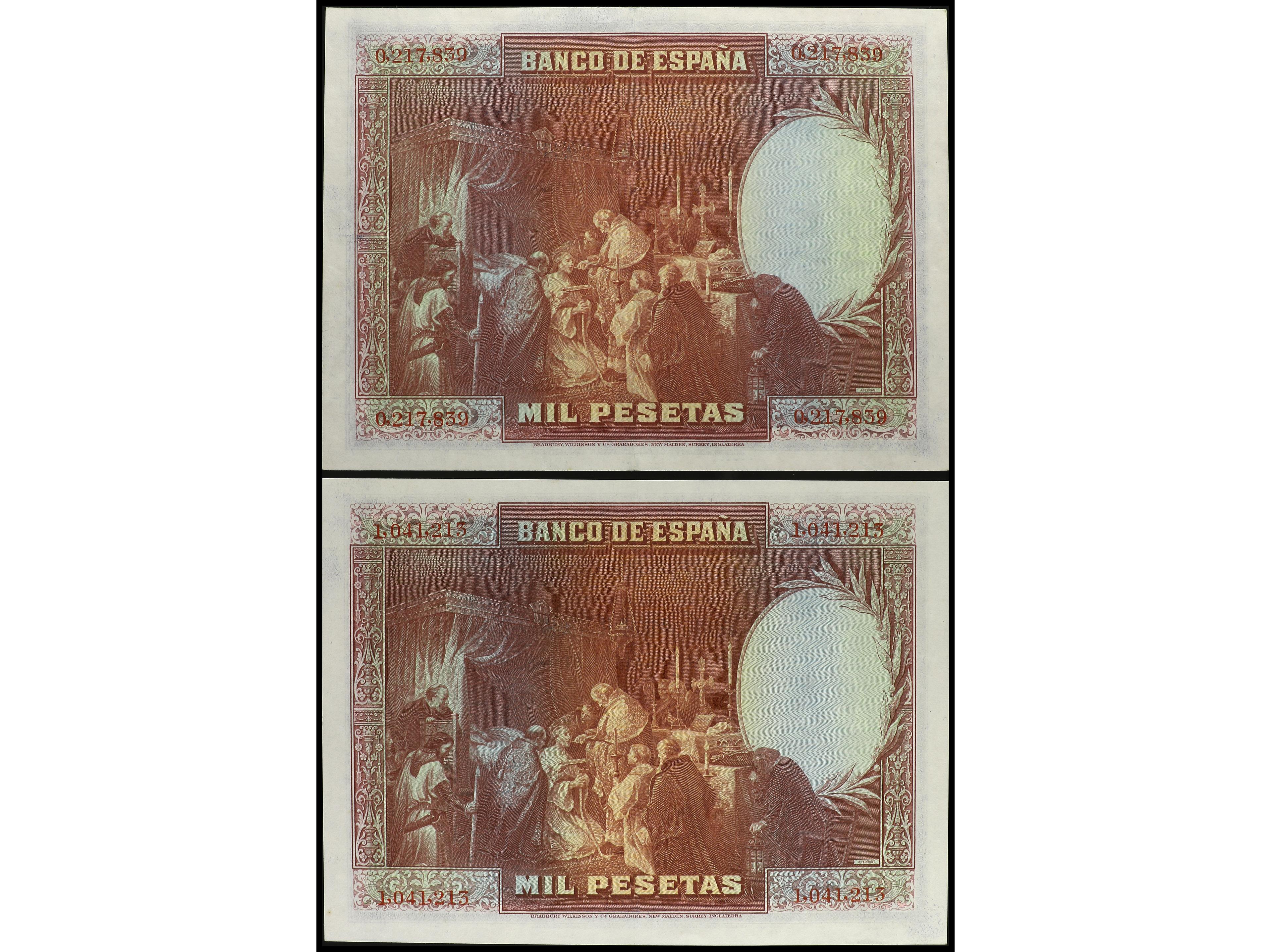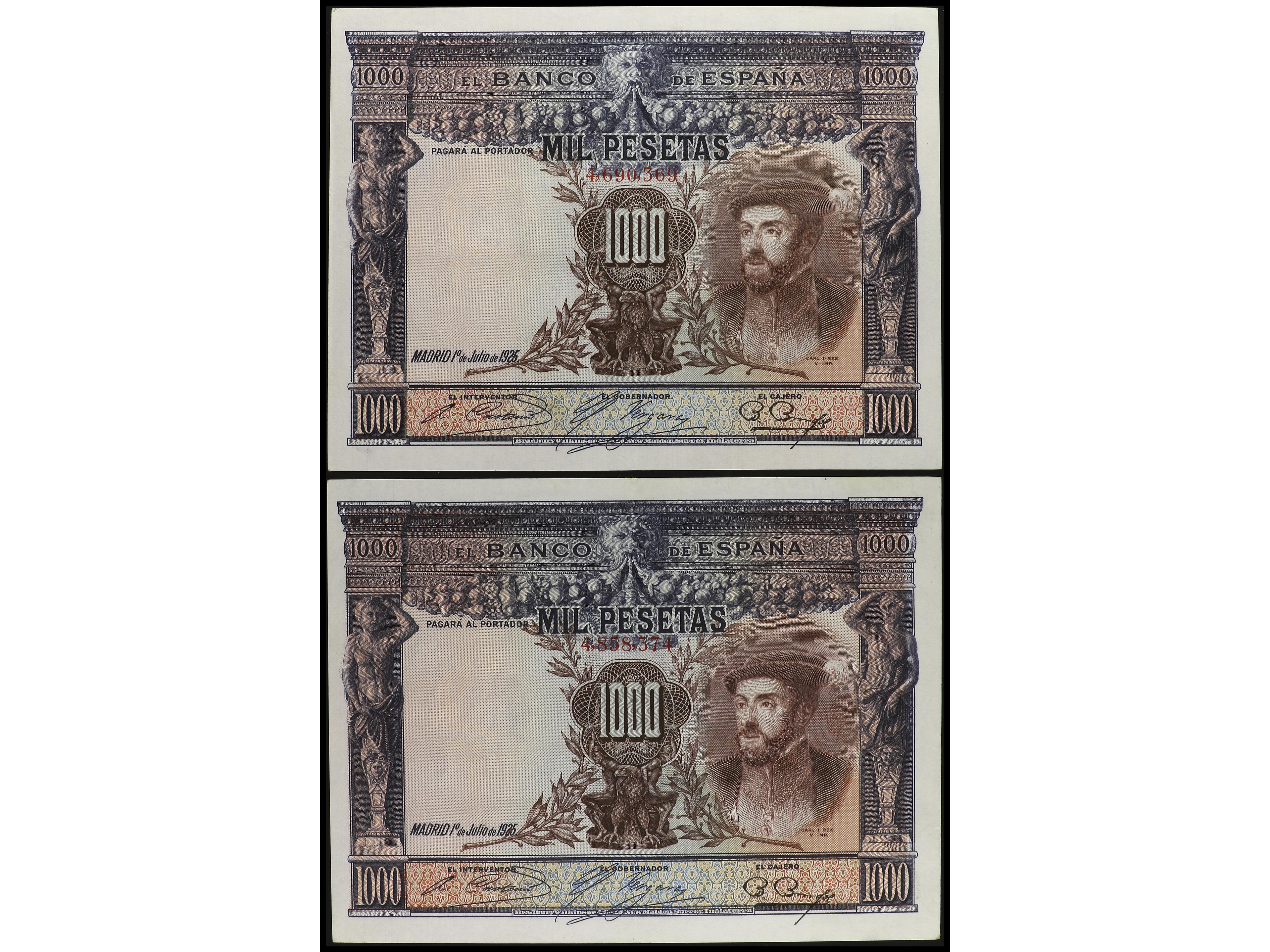 Lote 2 billetes 1.000 Pesetas. 1 Julio 1925. Carlos I. Ed-351. MBC+. (Image1) (Image2)