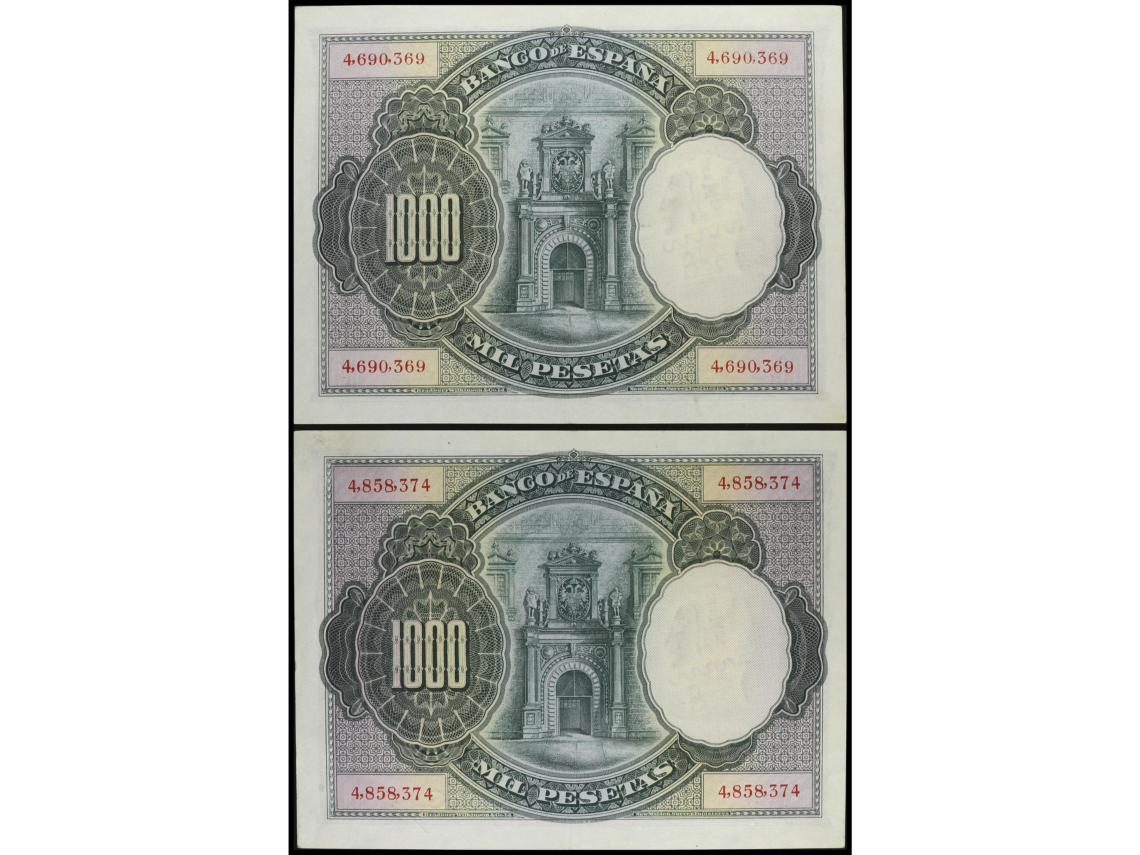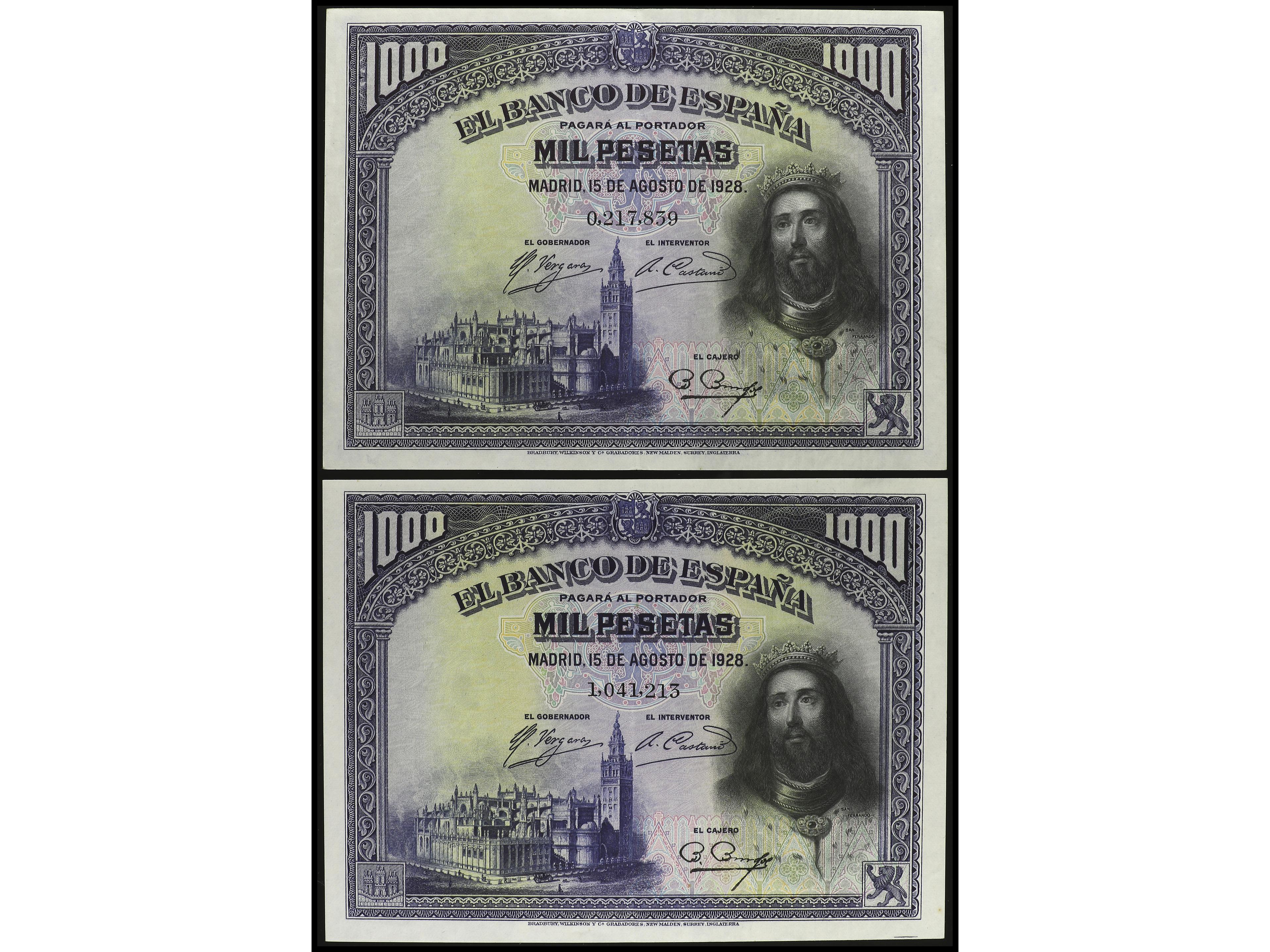 Lote 2 billetes 1.000 Pesetas. 15 Agosto 1928. San Fernando. Ed-357. MBC+. (Image1) (Image2)