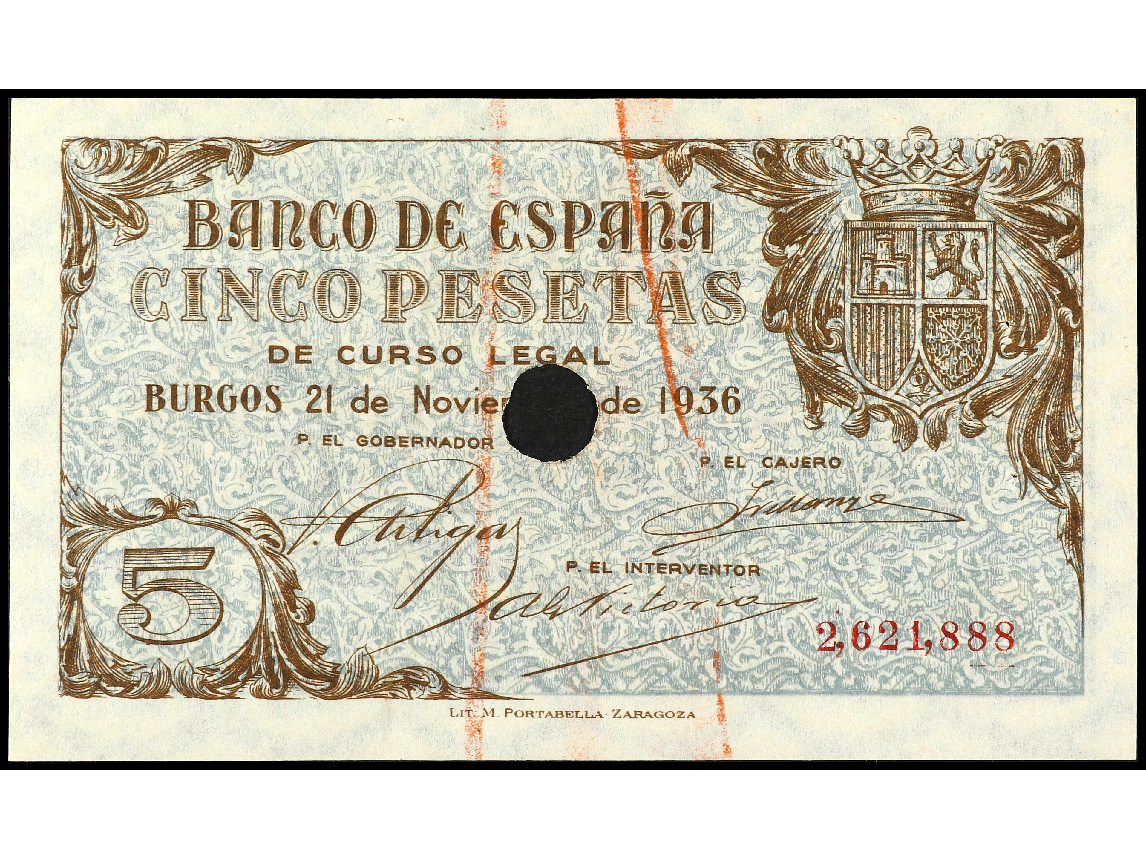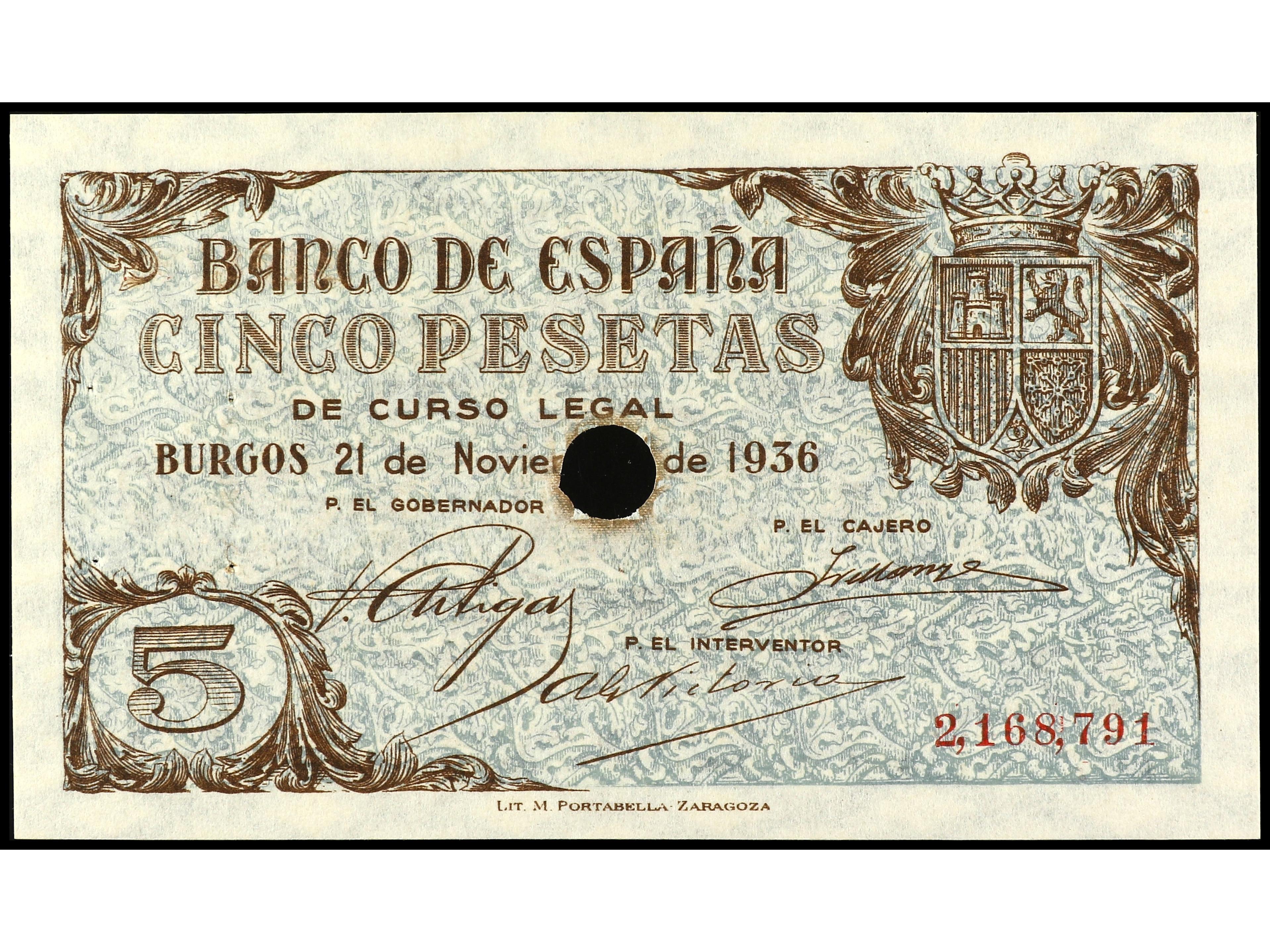 3127 image5 Pesetas. 21 Noviembre 1936. Con taladro central. (Puntos de grapa). Ed-417T. SC-. (Image1) (Image2)