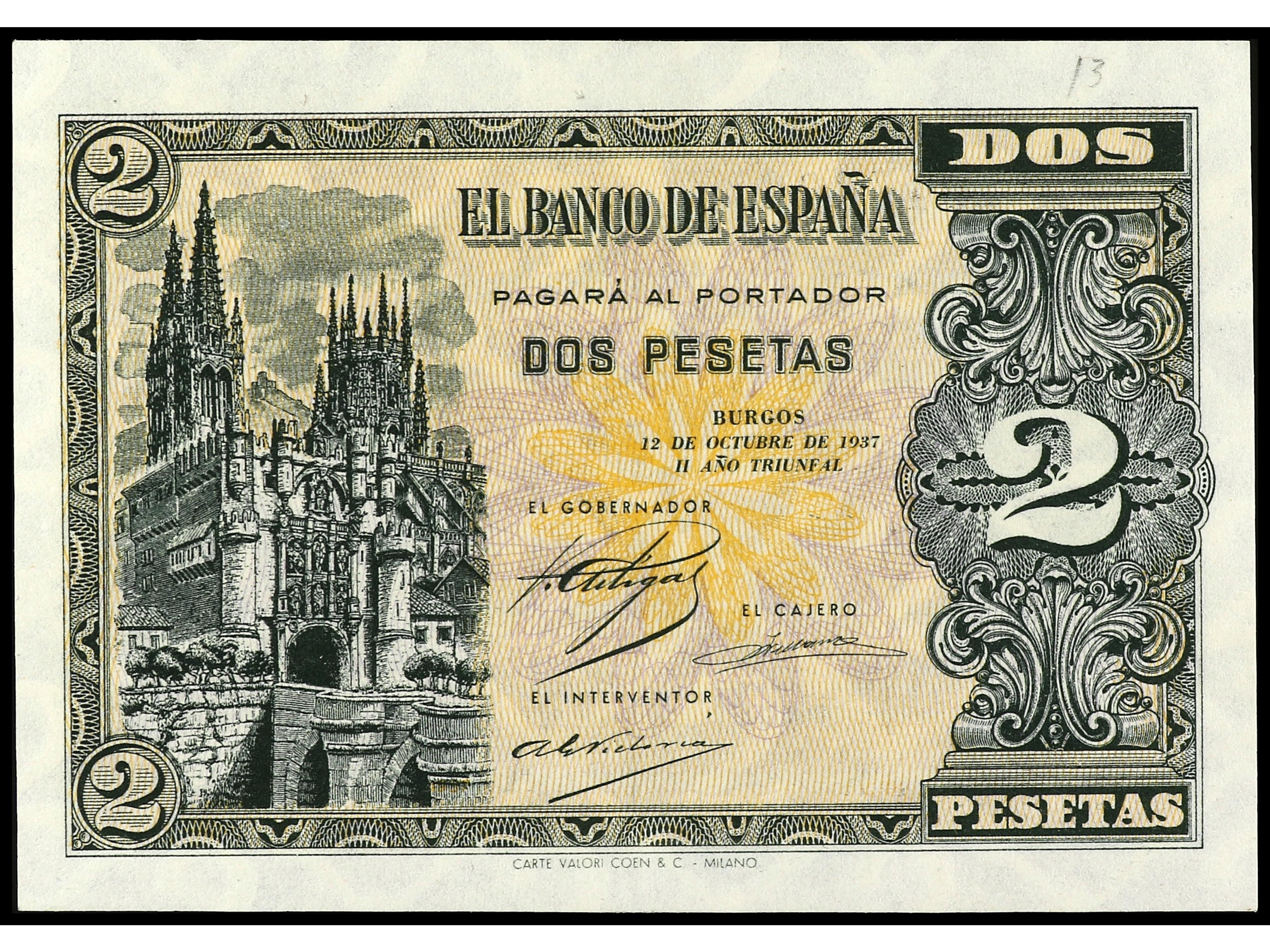 3124 image2 Pesetas. 12 Octubre 1937. Catedral de Burgos. Serie A. Ed-426. EBC. (Image1) (Image2)
