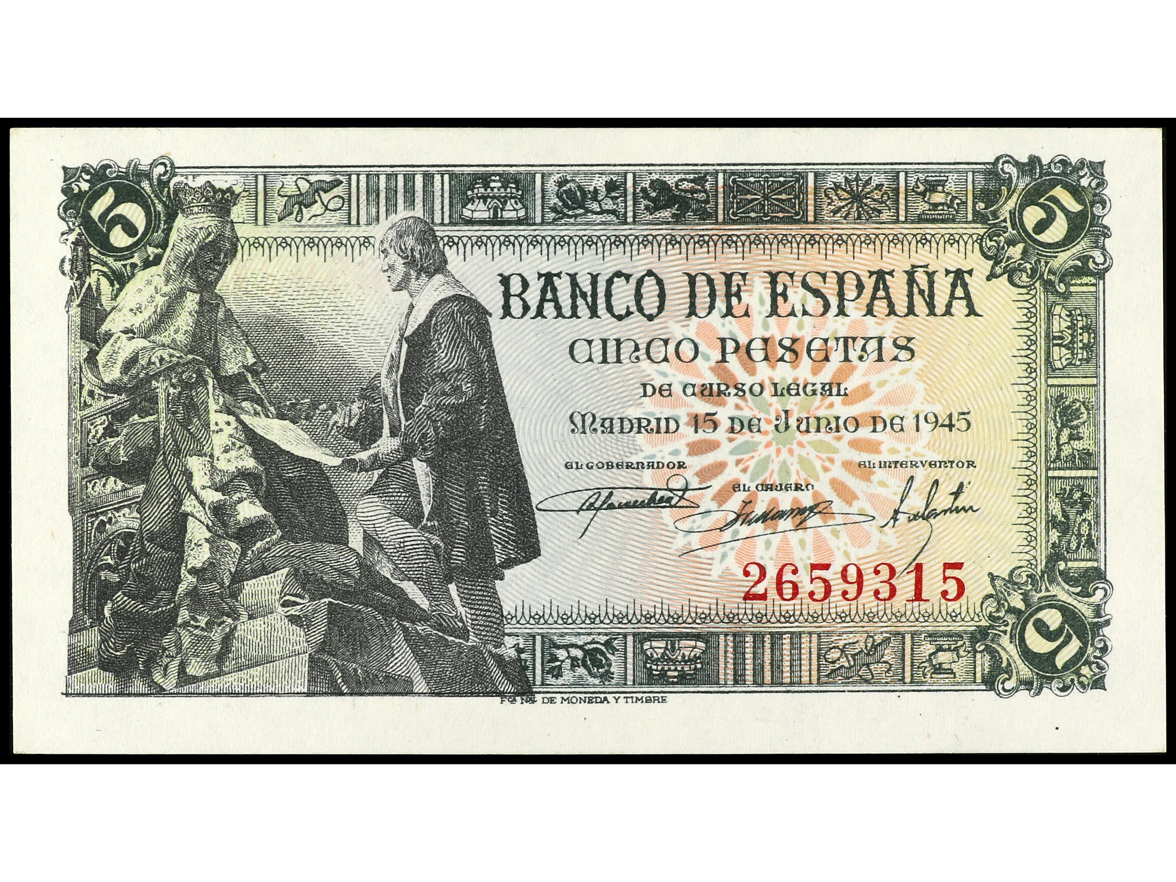 3133 image5 Pesetas. 15 Junio 1945. Capitulaciones de Santa Fe. Sin serie. Ed-449. SC-. (Image1) (Image2)