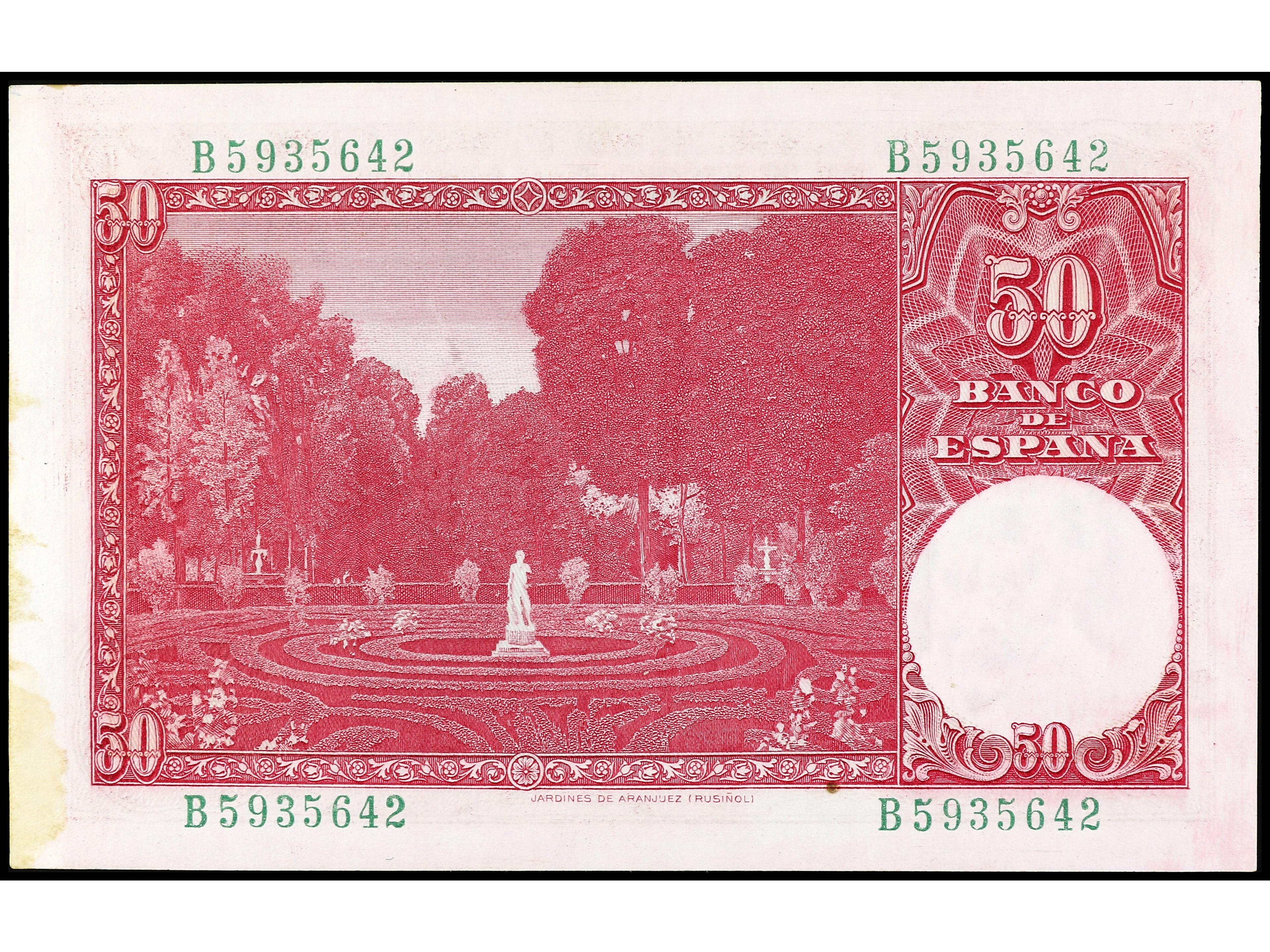 50 Pesetas. 31 diciembre 1951. Rusiñol. Serie B. (Arrugas y manchitas). Ed-462a. SC-. (Image1) (Image2)