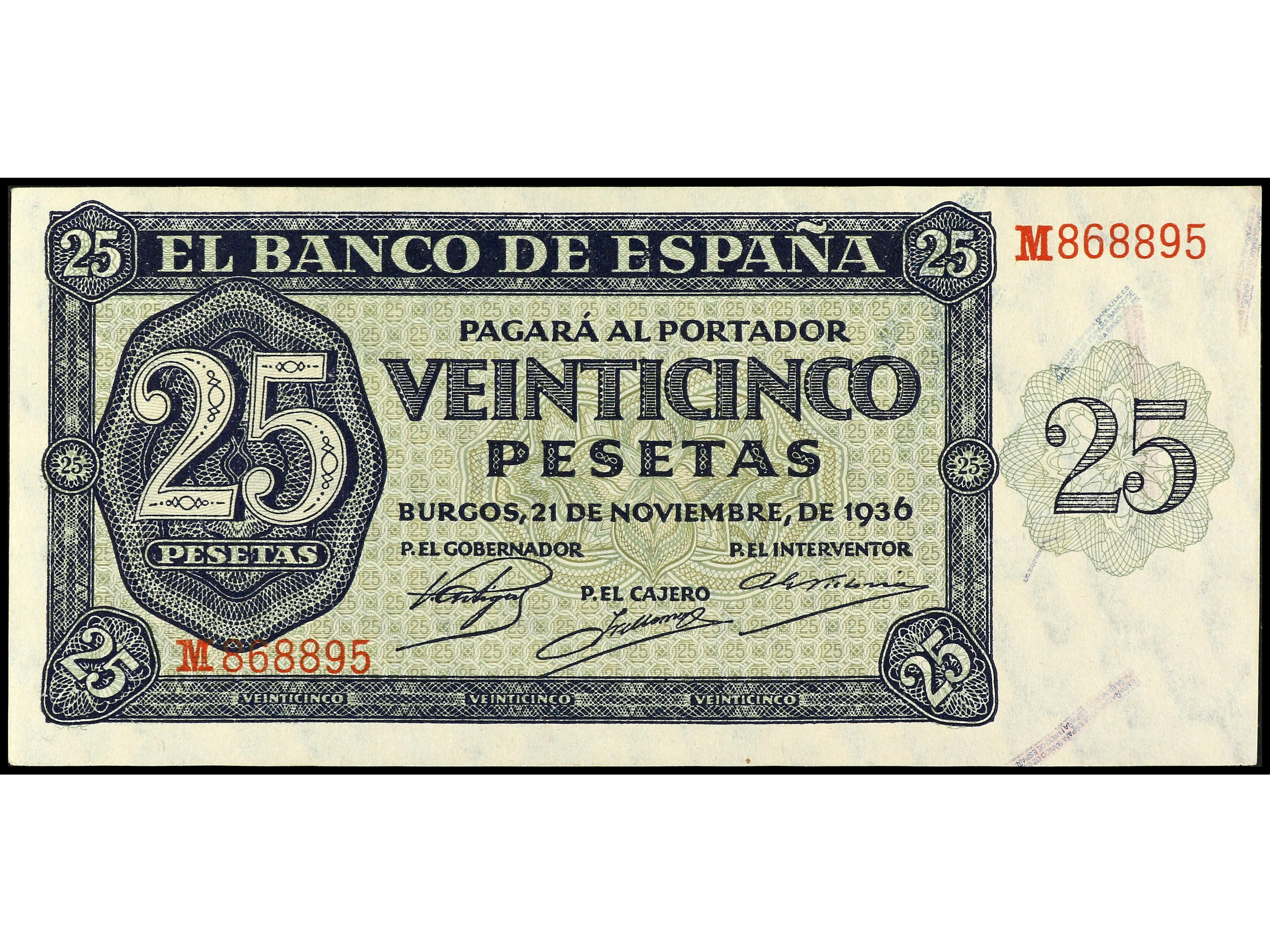 25 Pesetas. 21 noviembre 1936. Serie M. Ed-419a. SC. (Image1) (Image2)