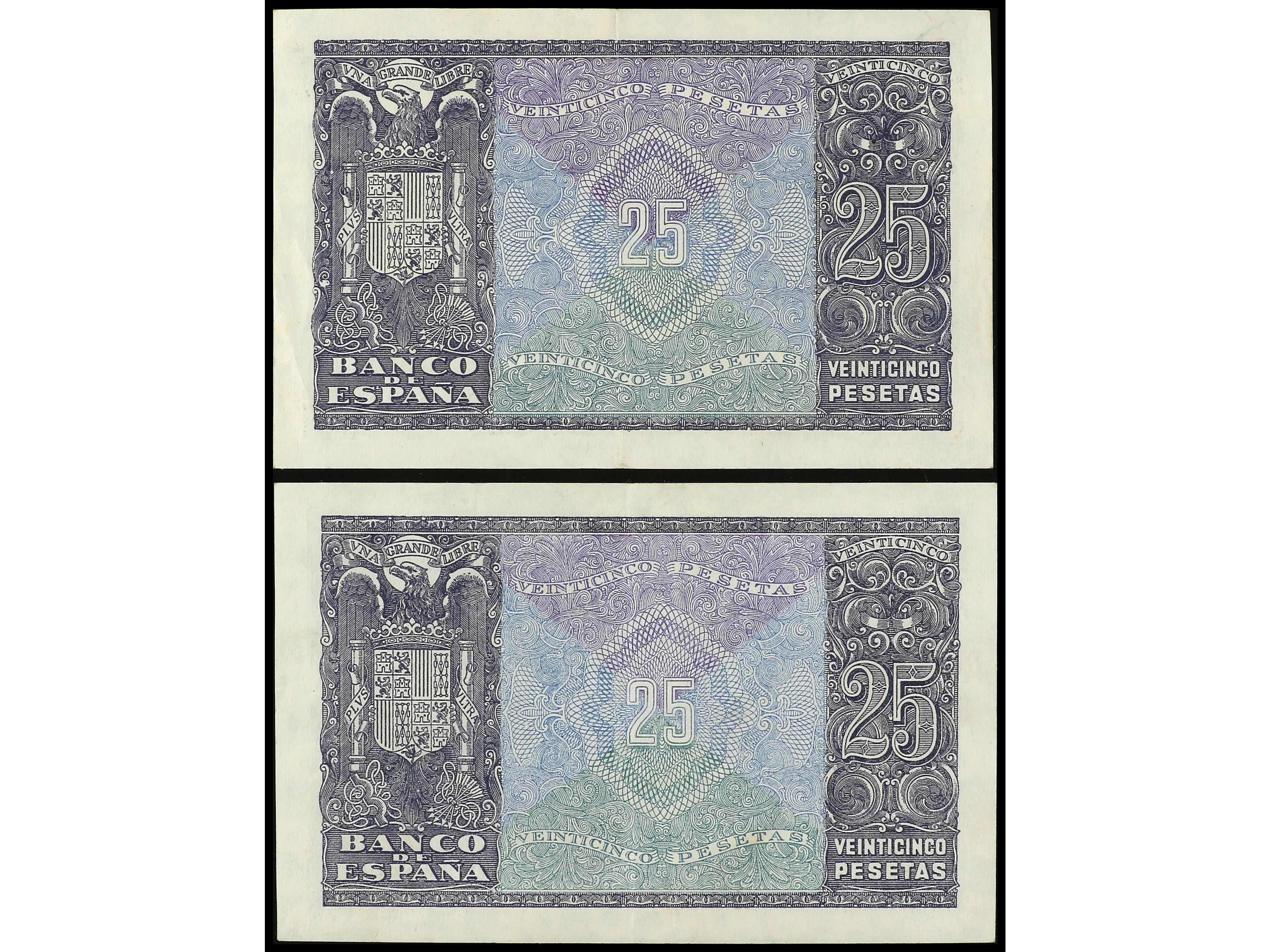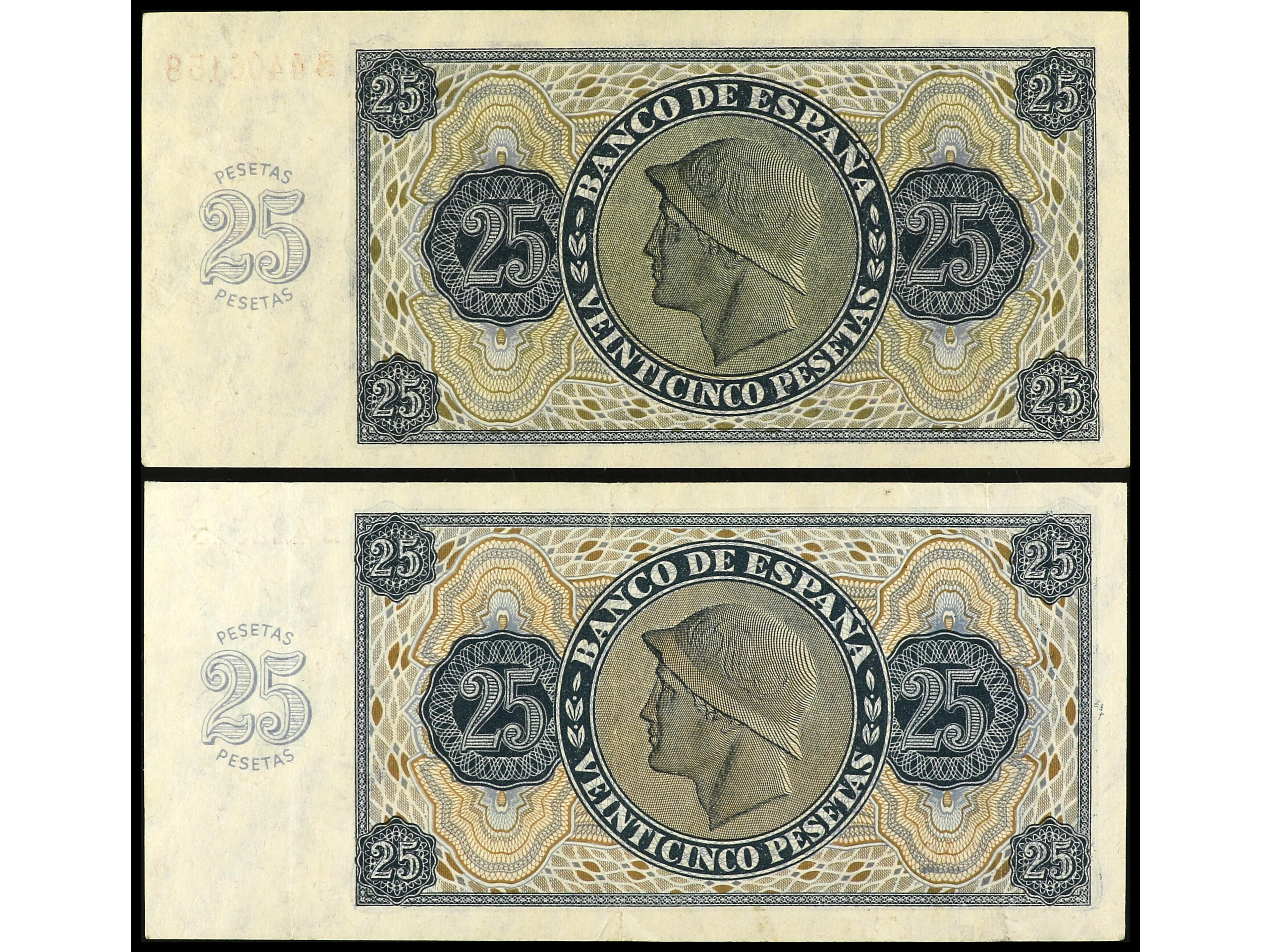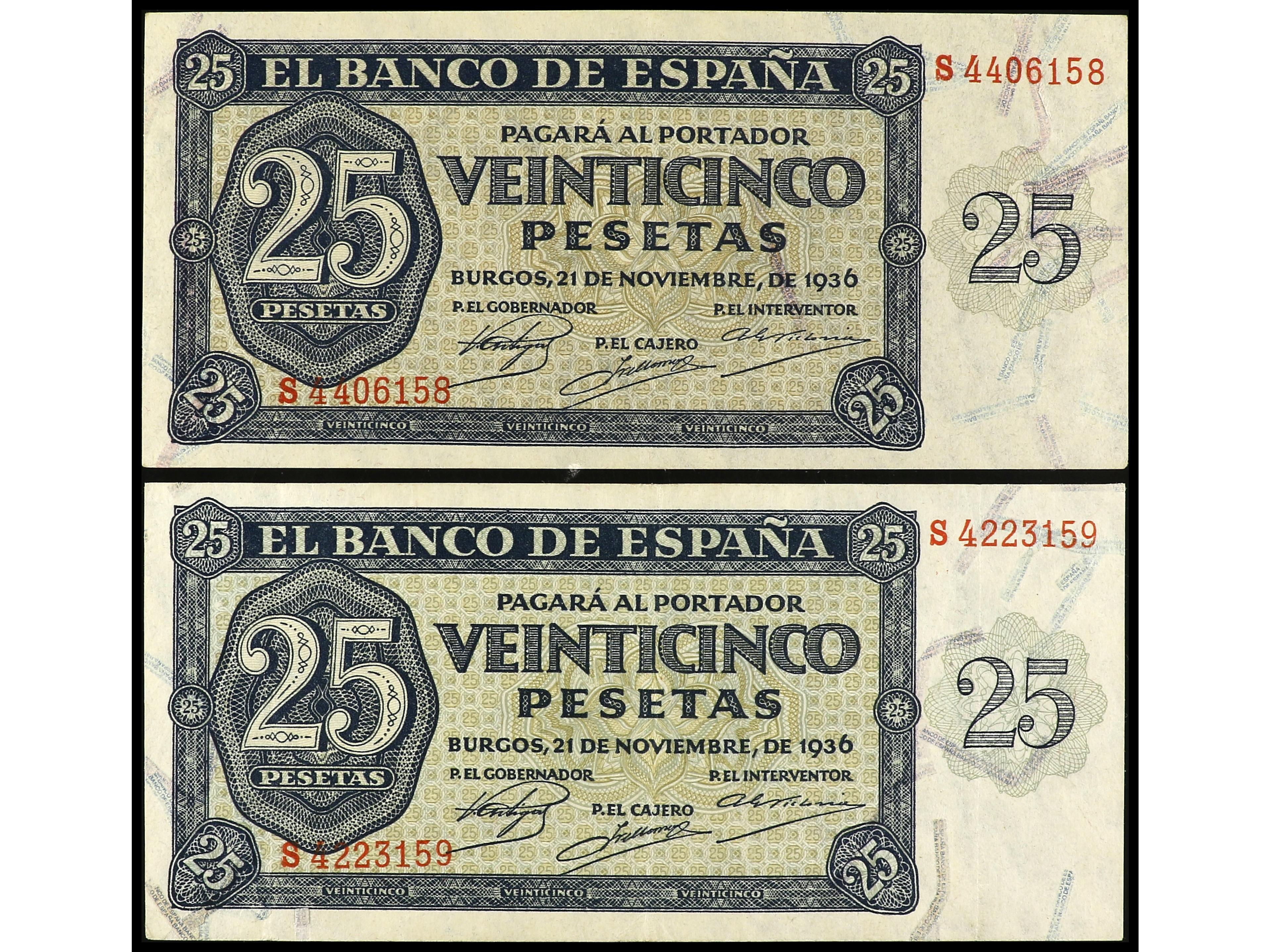 Lote 2 billetes 25 Pesetas. 21 Noviembre 1936. Serie S. Ed-419b. MBC+ y EBC-. (Image1) (Image2)