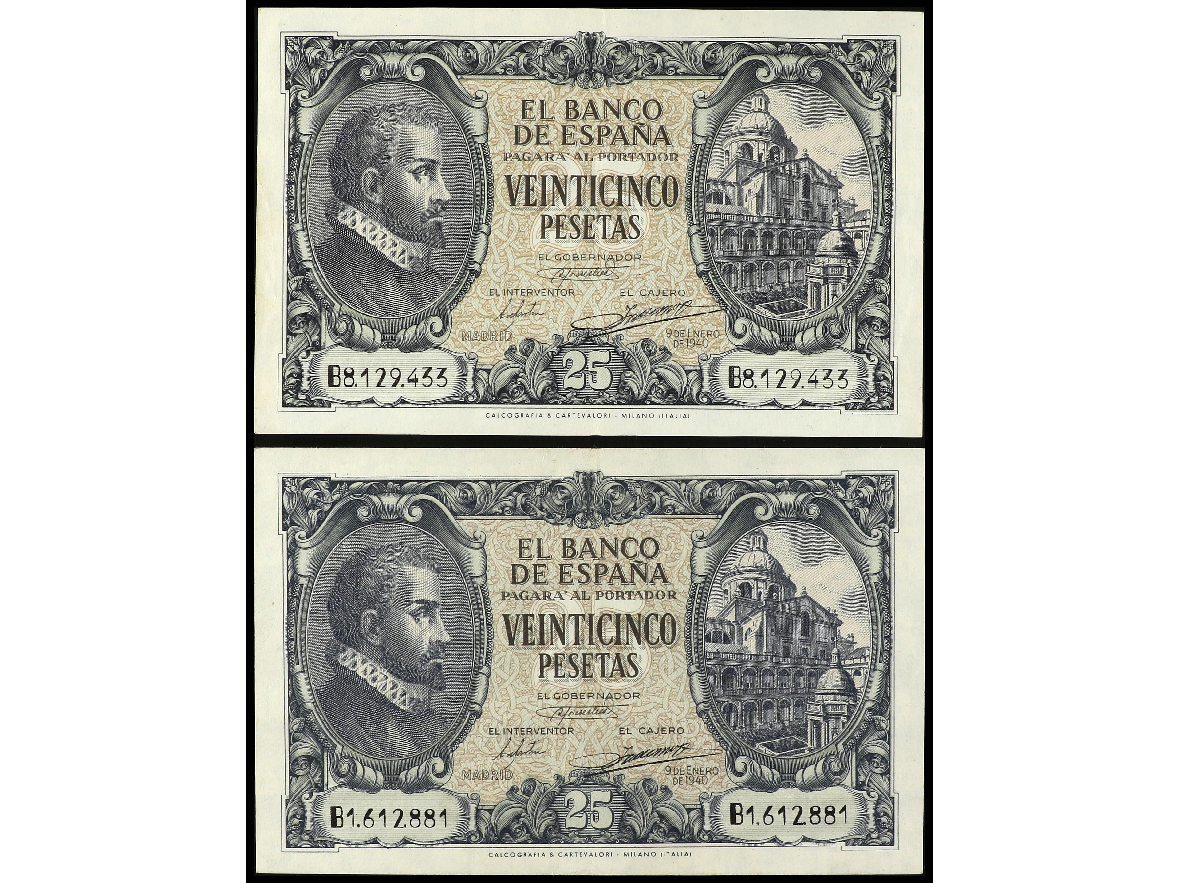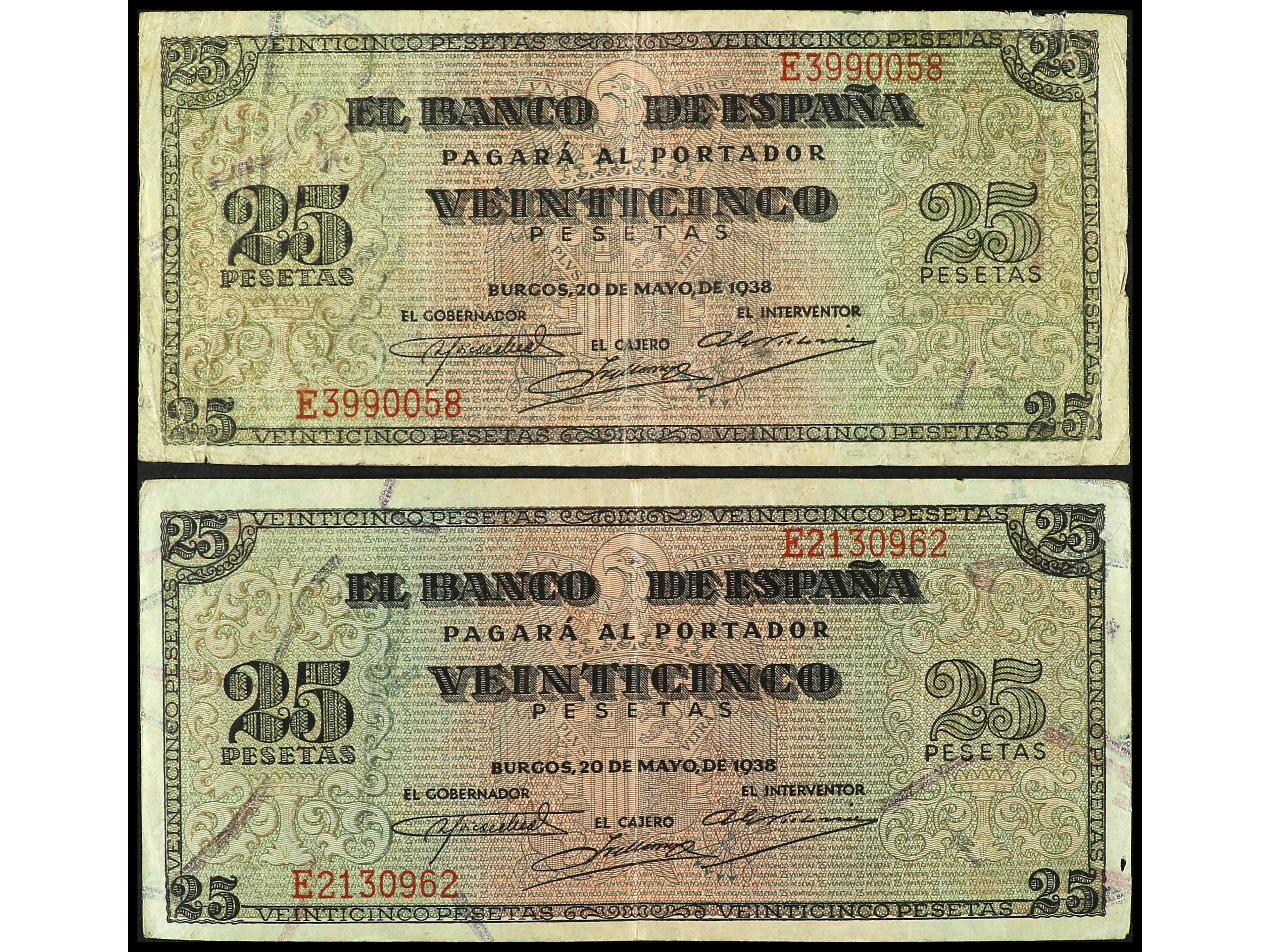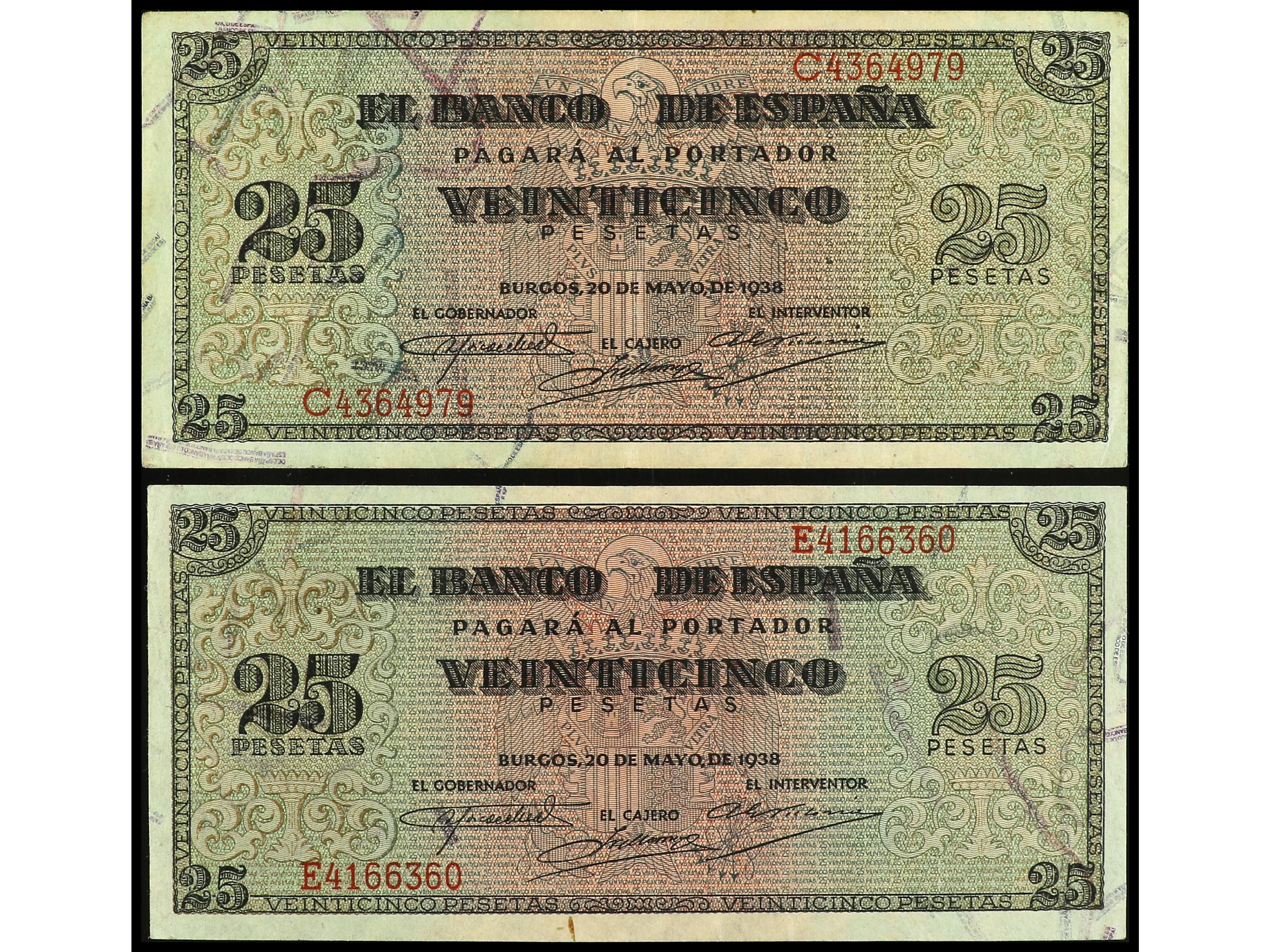 Lote 2 billetes 25 Pesetas. 9 Enero 1940. Herrera. Serie B. Ed-436a. MBC+. (Image1) (Image2)