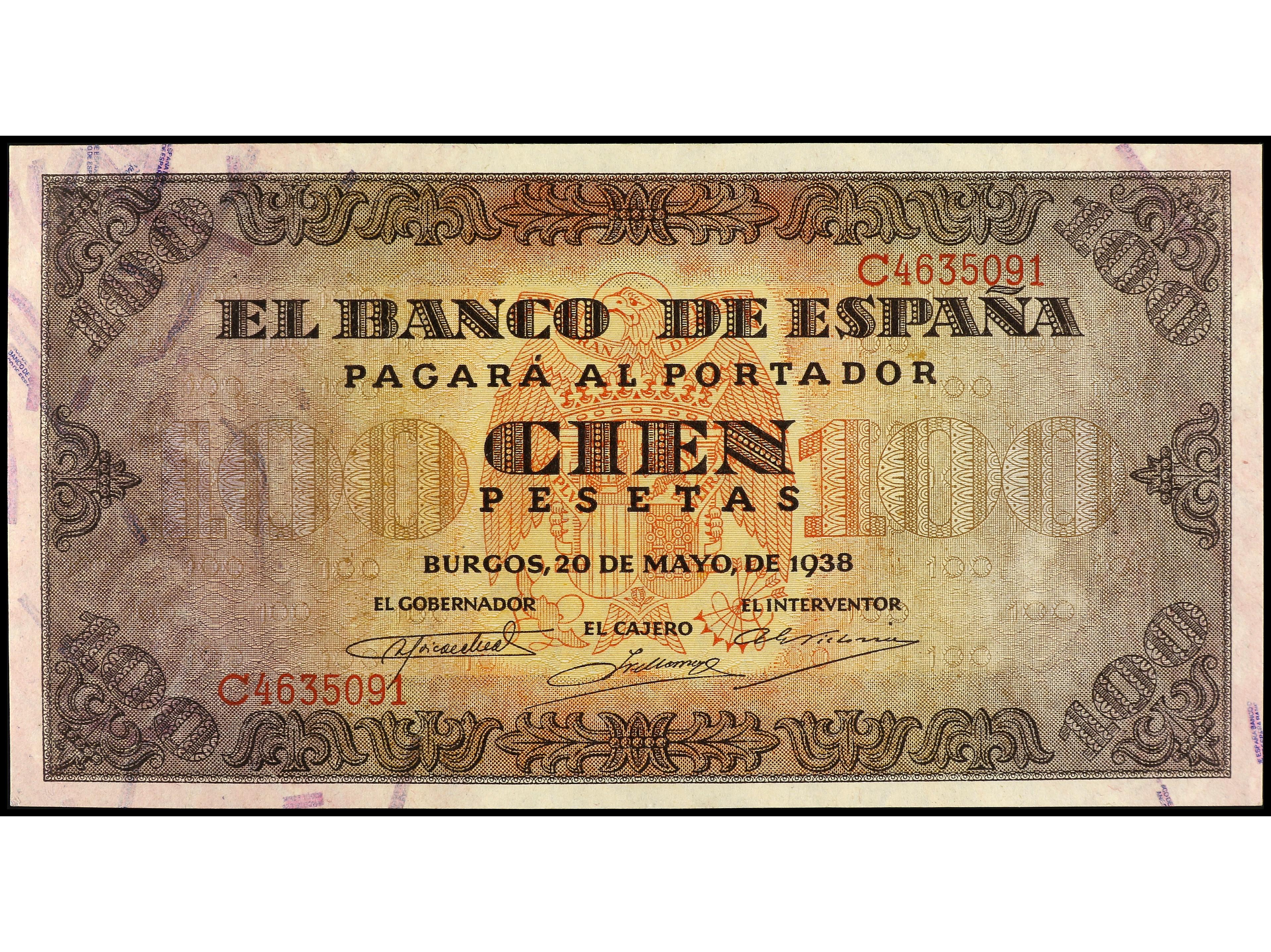 100 Pesetas. 20 Mayo 1938. Casa del Cordón. Serie C. Ed-432a. EBC+. (Image1) (Image2)