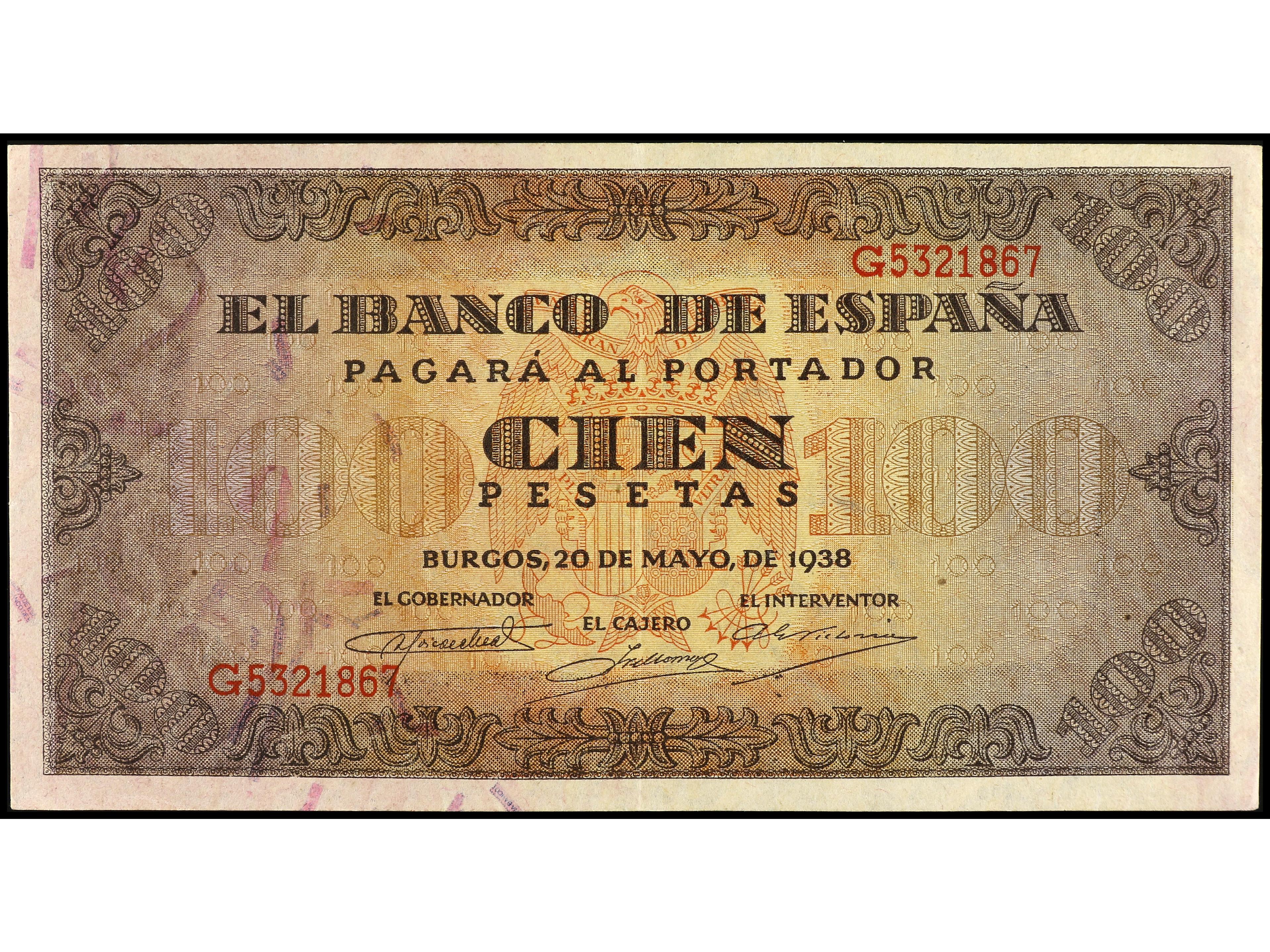 100 Pesetas. 20 Mayo 1938. Casa del Cordón. Serie G. Ed-432a. EBC-. (Image1) (Image2)