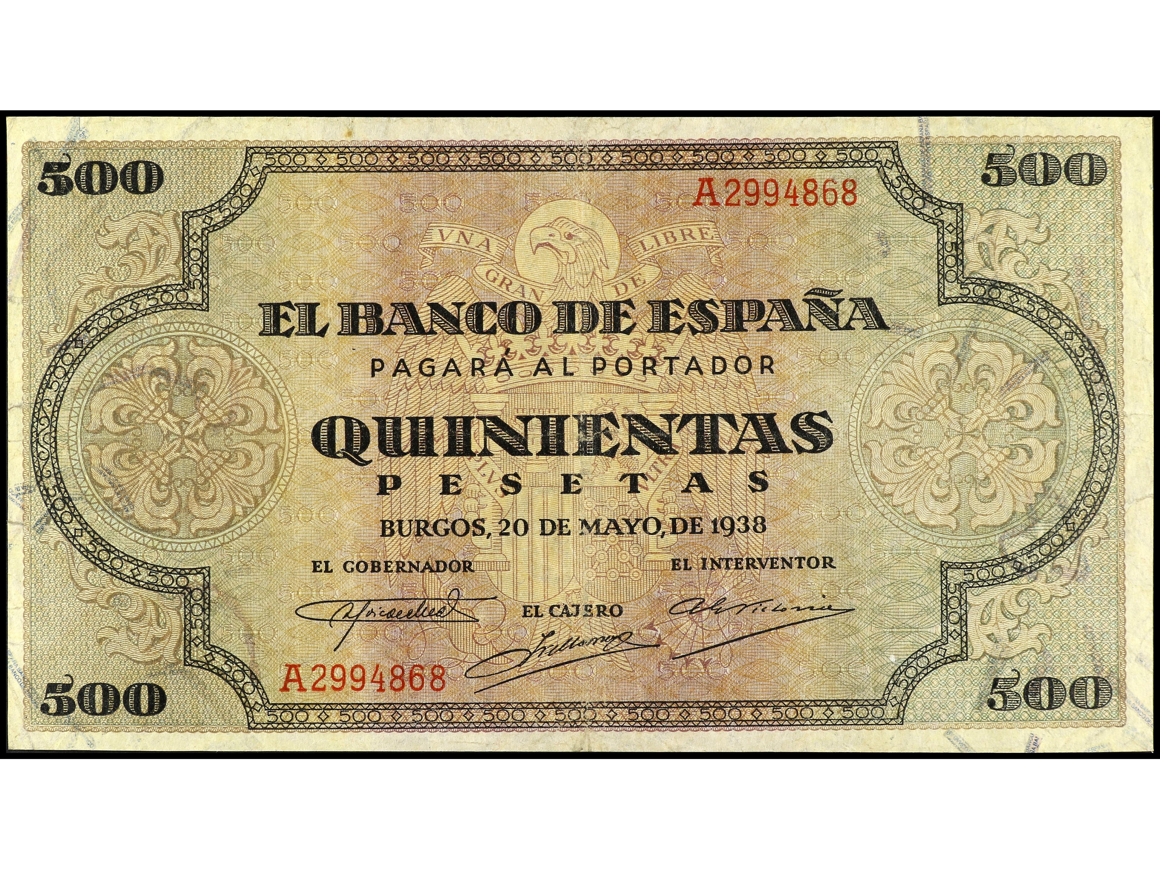 500 Pesetas. 20 Mayo 1938. (Pequeñas roturas). Ed-433. MBC. (Image1) (Image2)