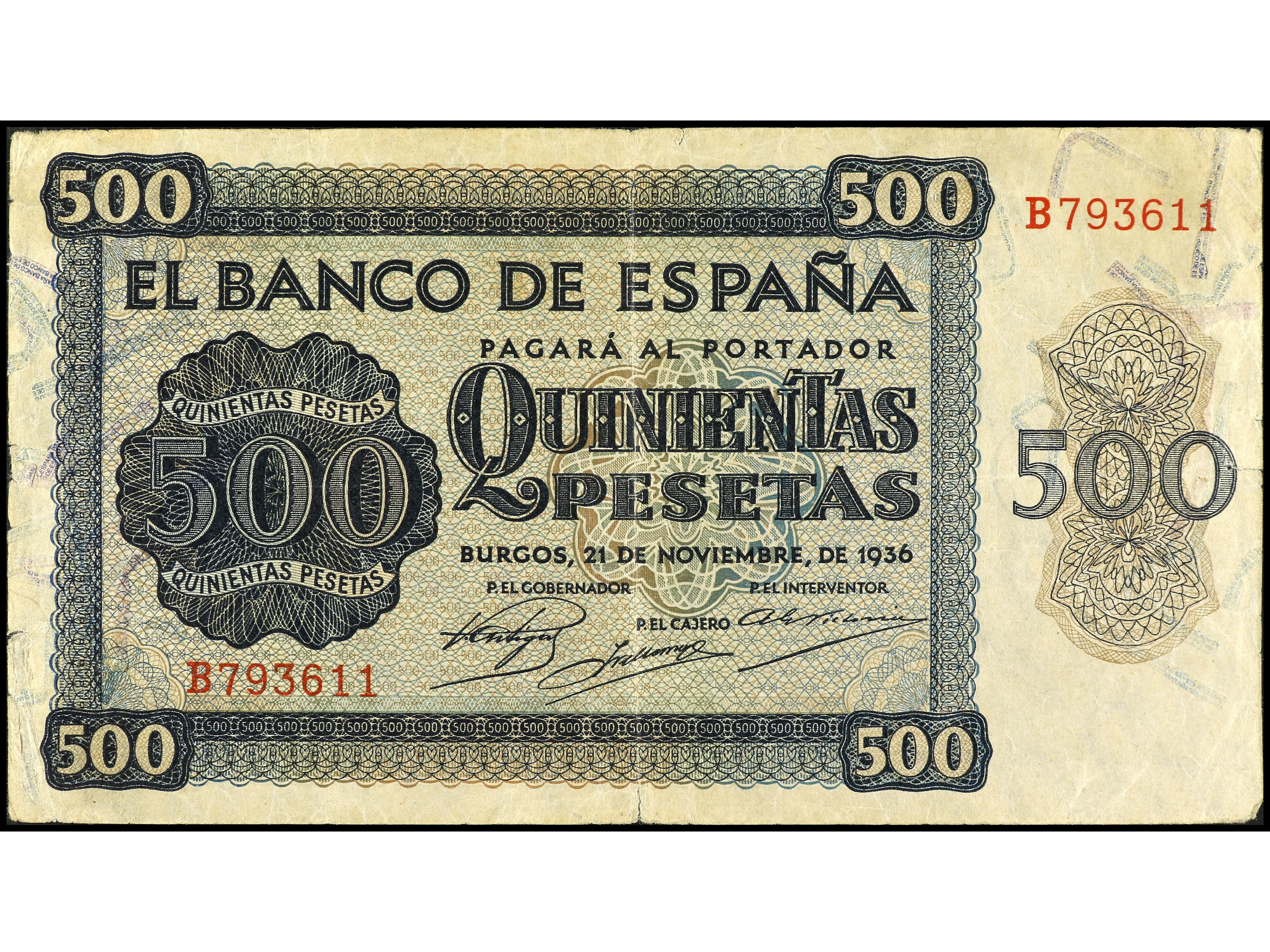 500 Pesetas. 21 Noviembre 1936. Catedral de Salamanca. Serie B. Ed-422. MBC-. (Image1) (Image2)