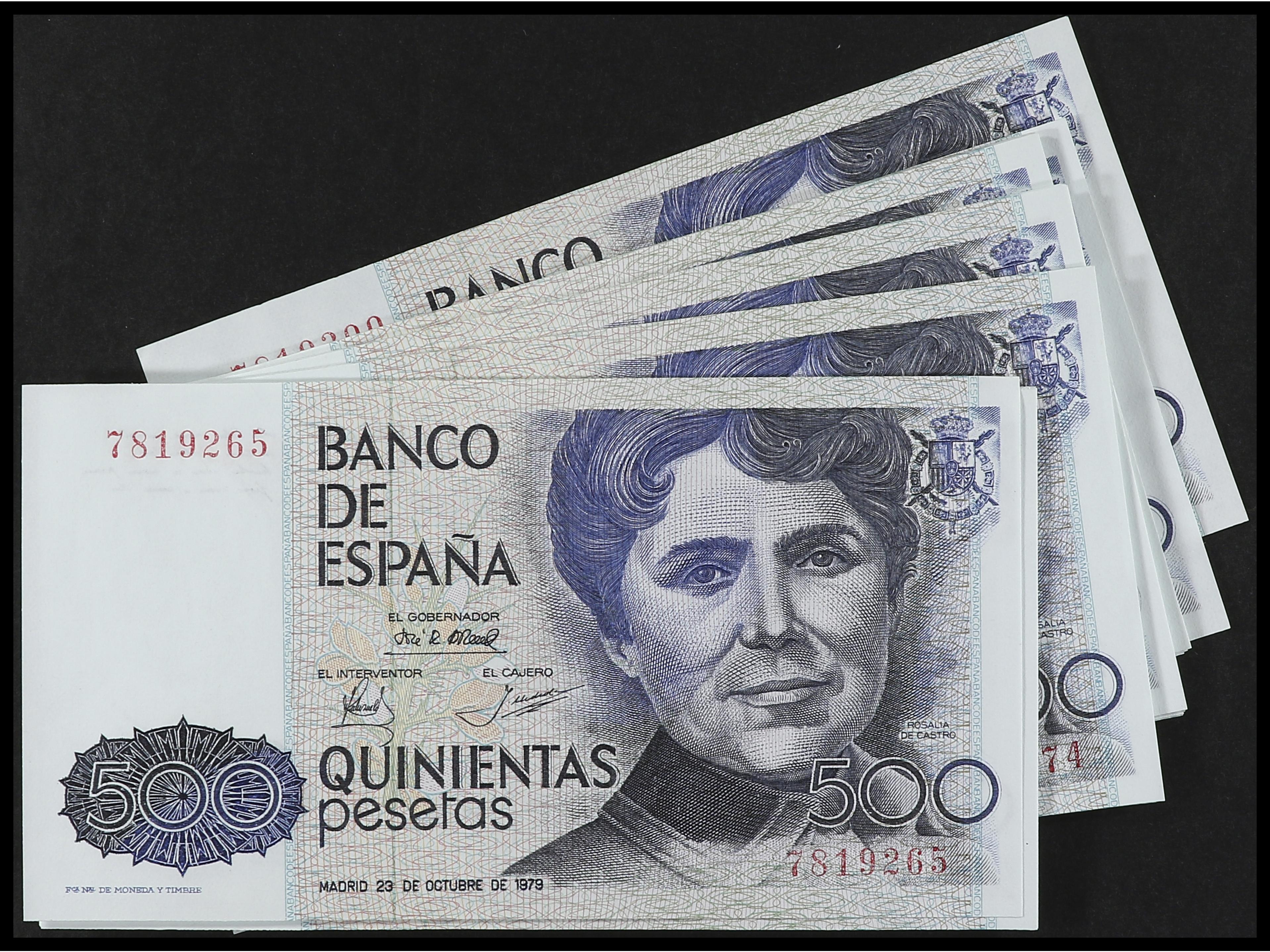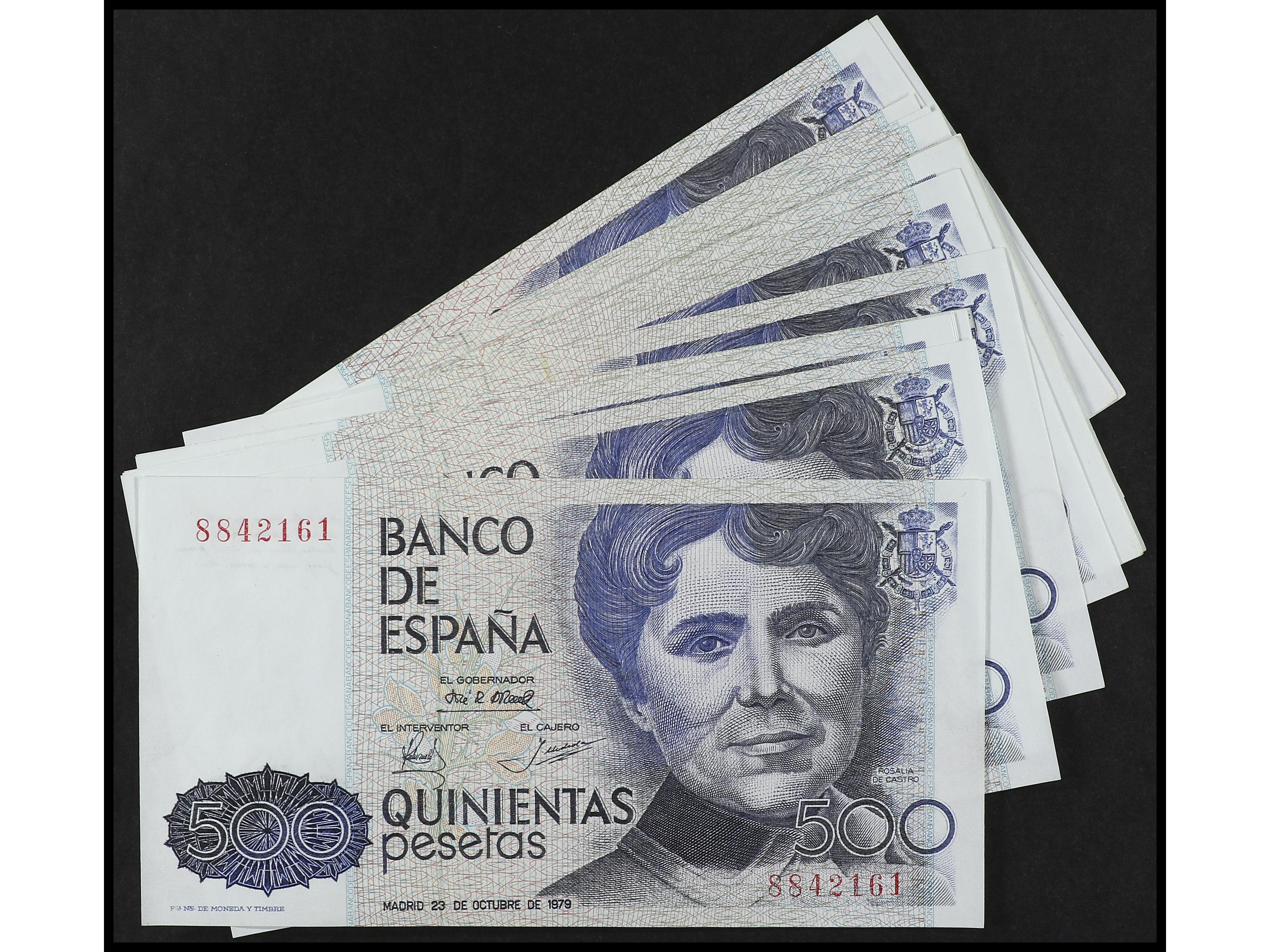 Lote 38 billetes 500 Pesetas. 23 Octubre 1979. Rosalía de Castro. Sin Serie. Todos correlativos. Ed-476. SC- a SC. (Image1)