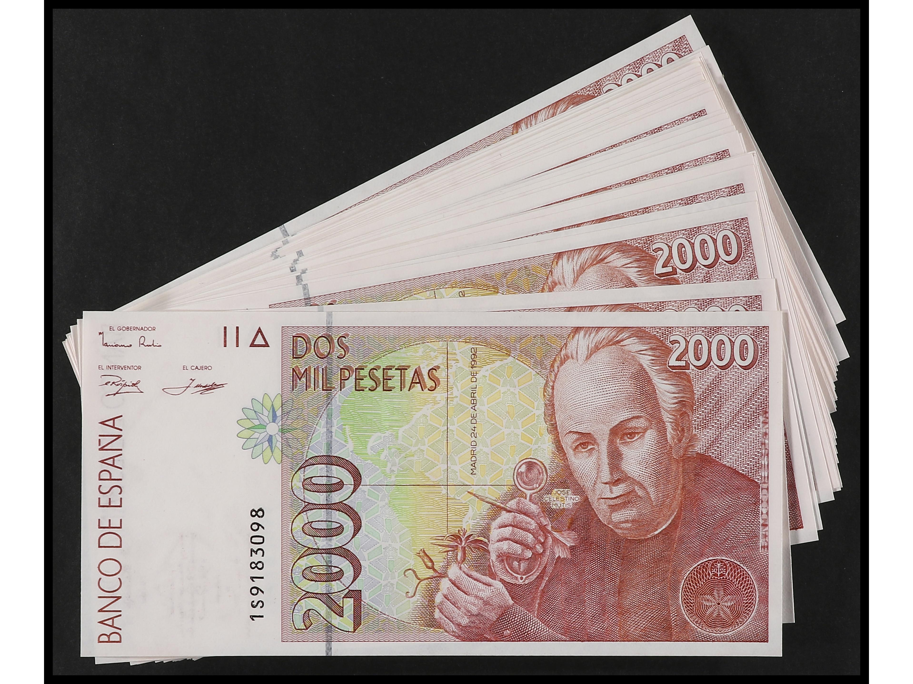 Lote 33 billetes 2.000 Pesetas. 24 Abril 1992. Celestino Mutis. Serie 1S. Todos correlativos. Ed-482A. SC- a SC. (Image1)