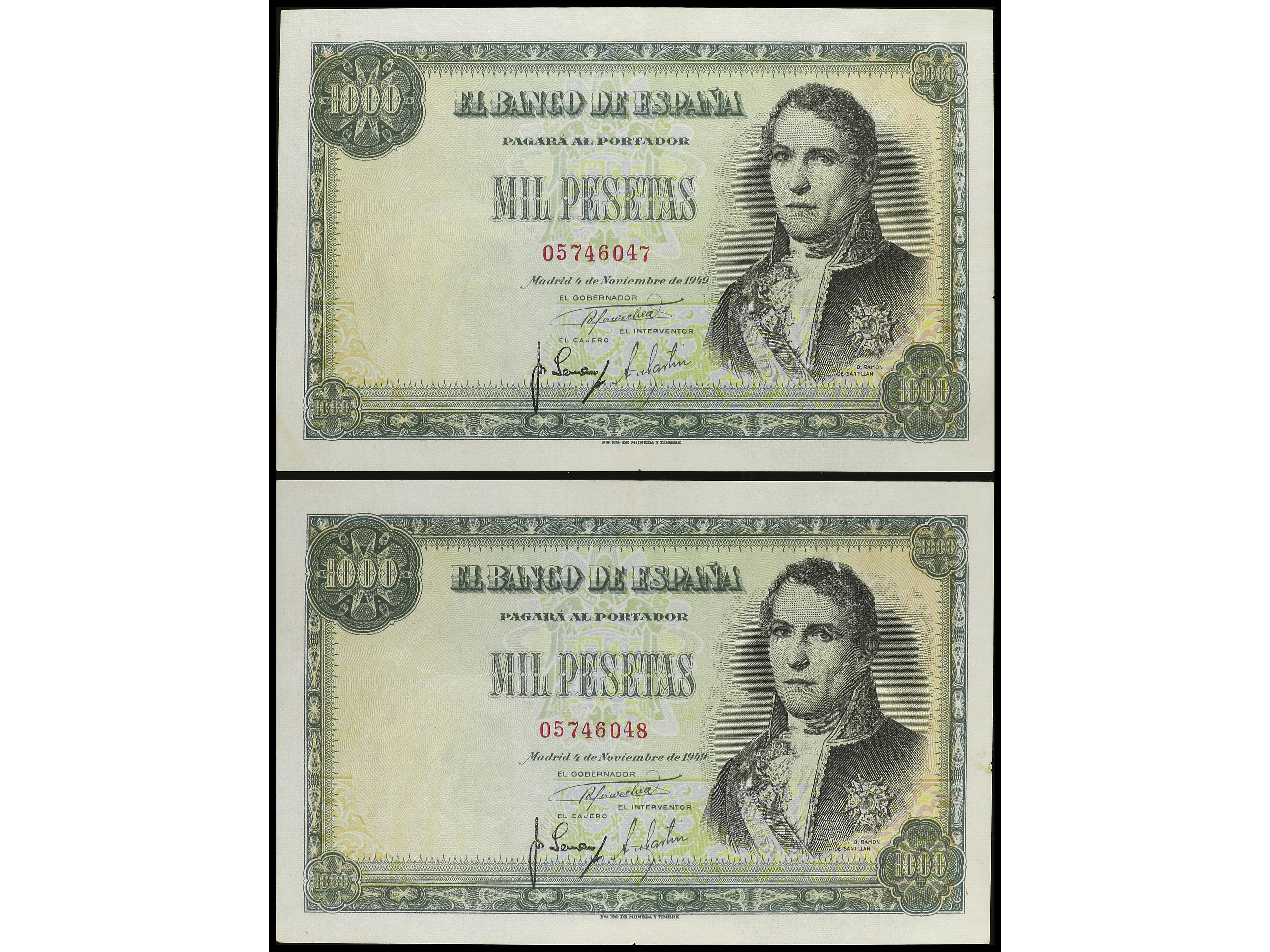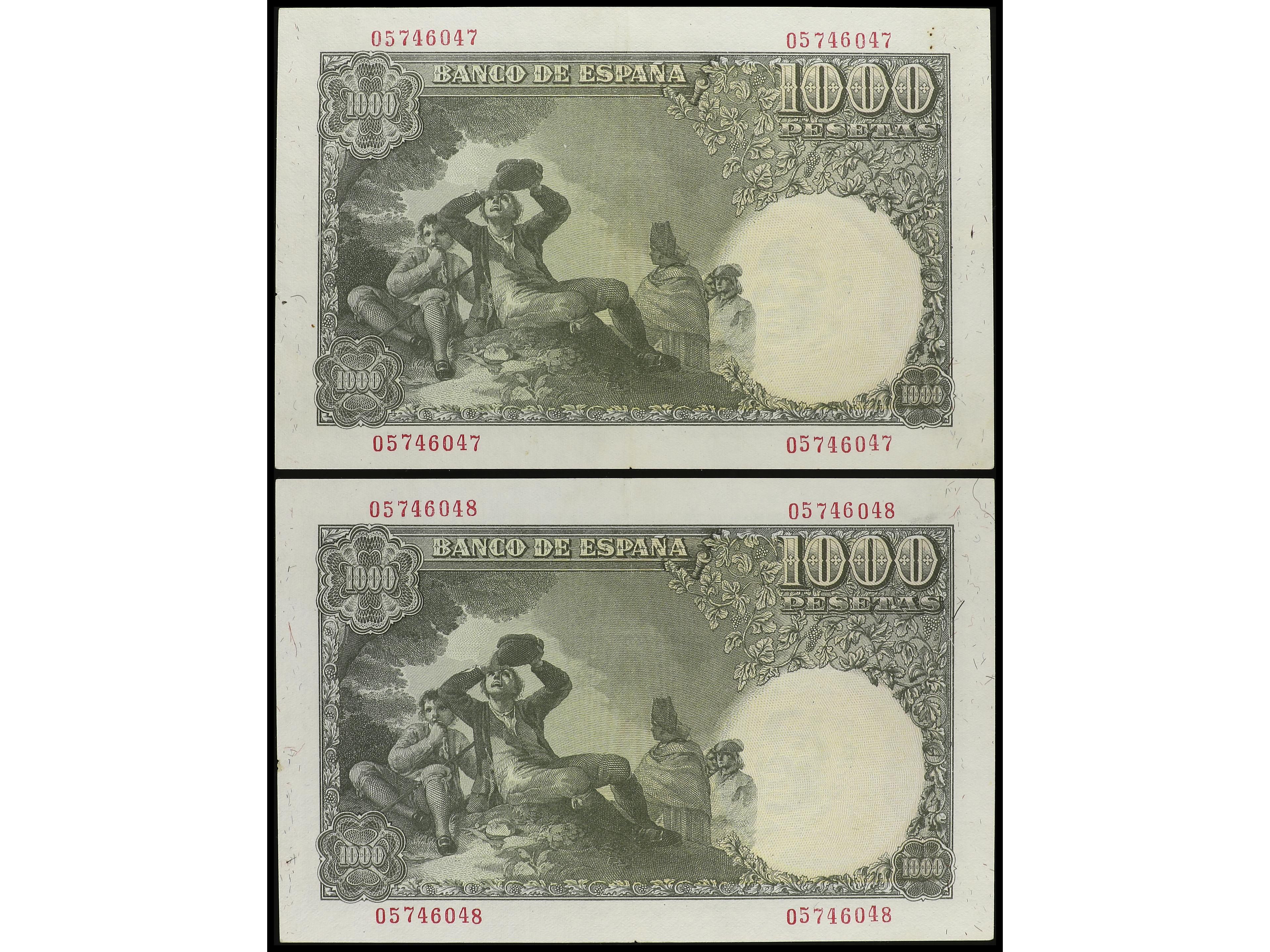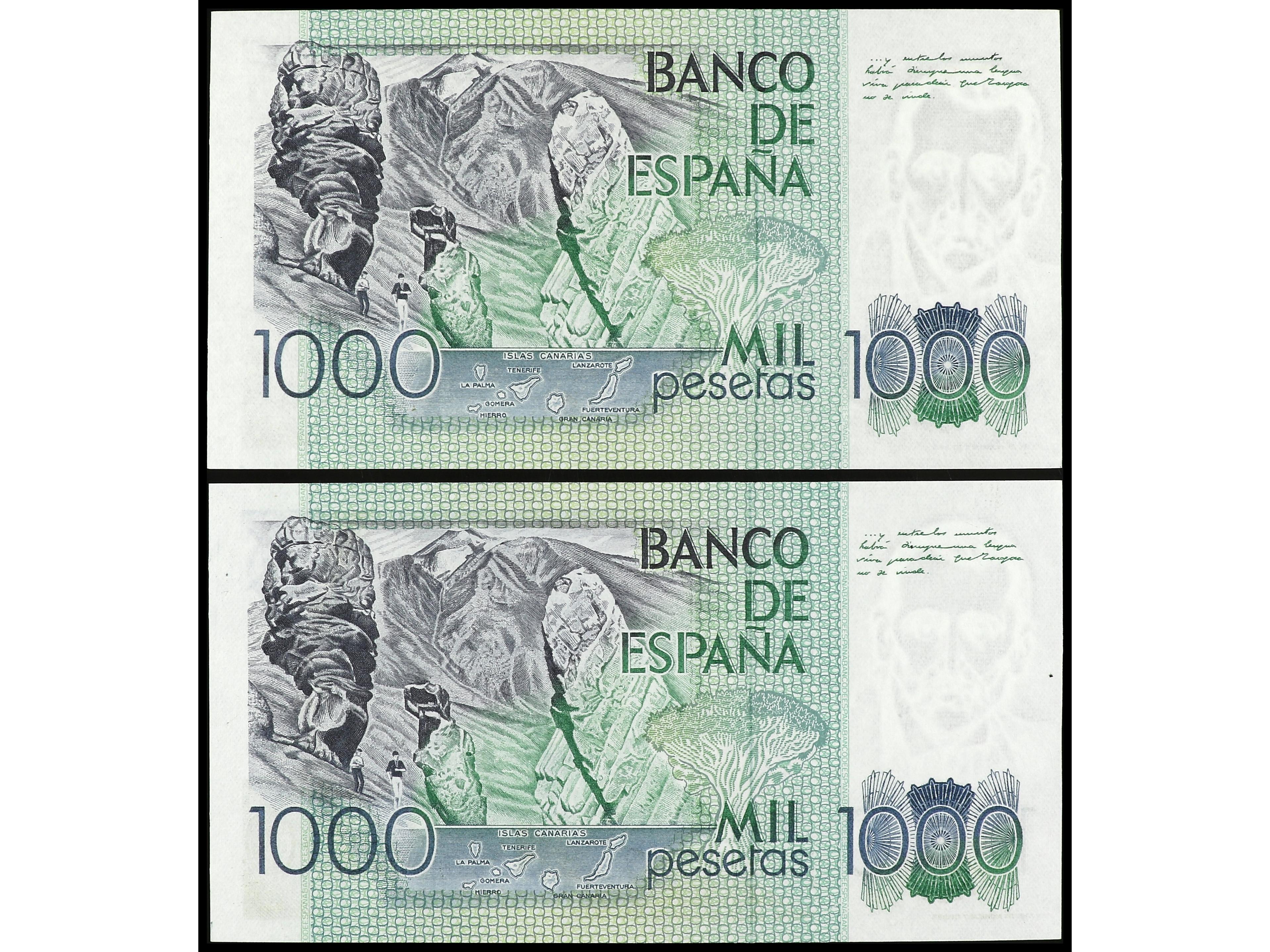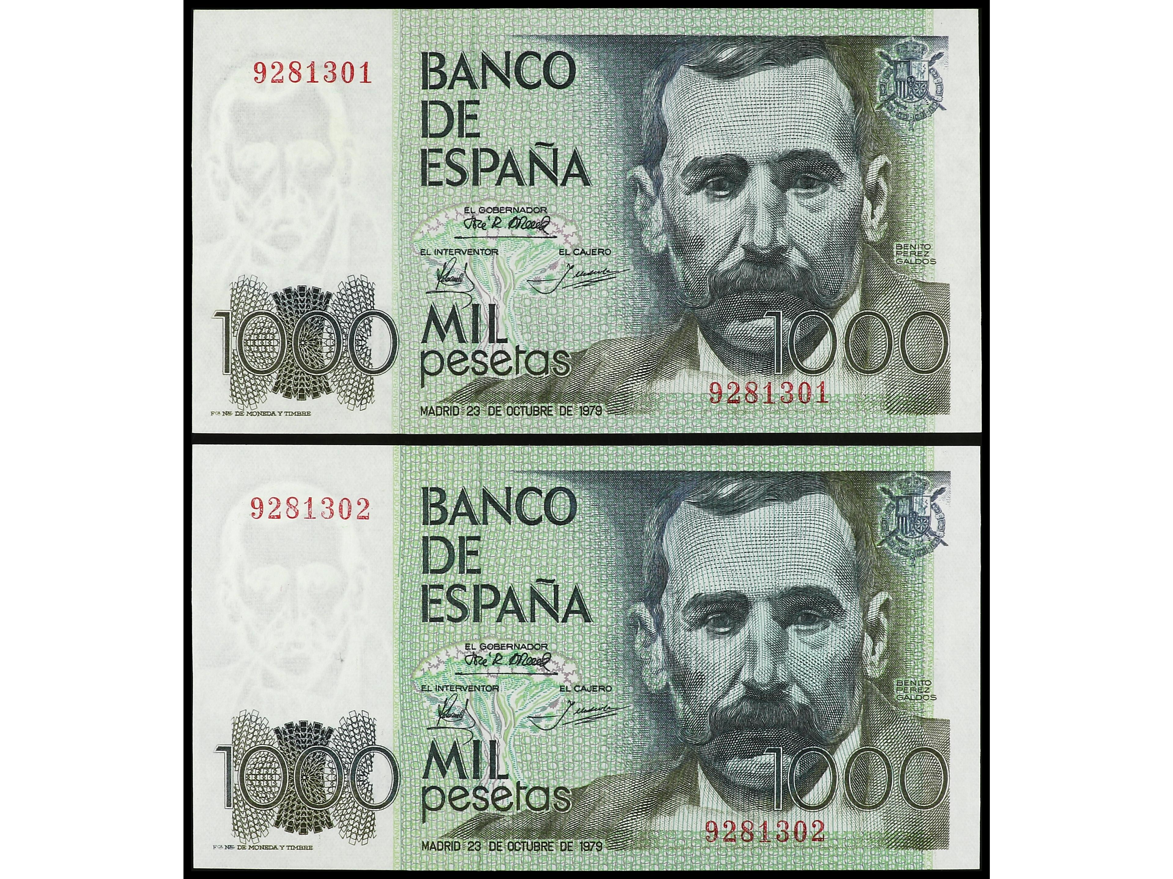 Lote 2 billetes 1.000 Pesetas. 23 Octubre 1979. Pérez Galdós. Sin serie. Pareja correlativa. Ed-477. SC. (Image1) (Image2)