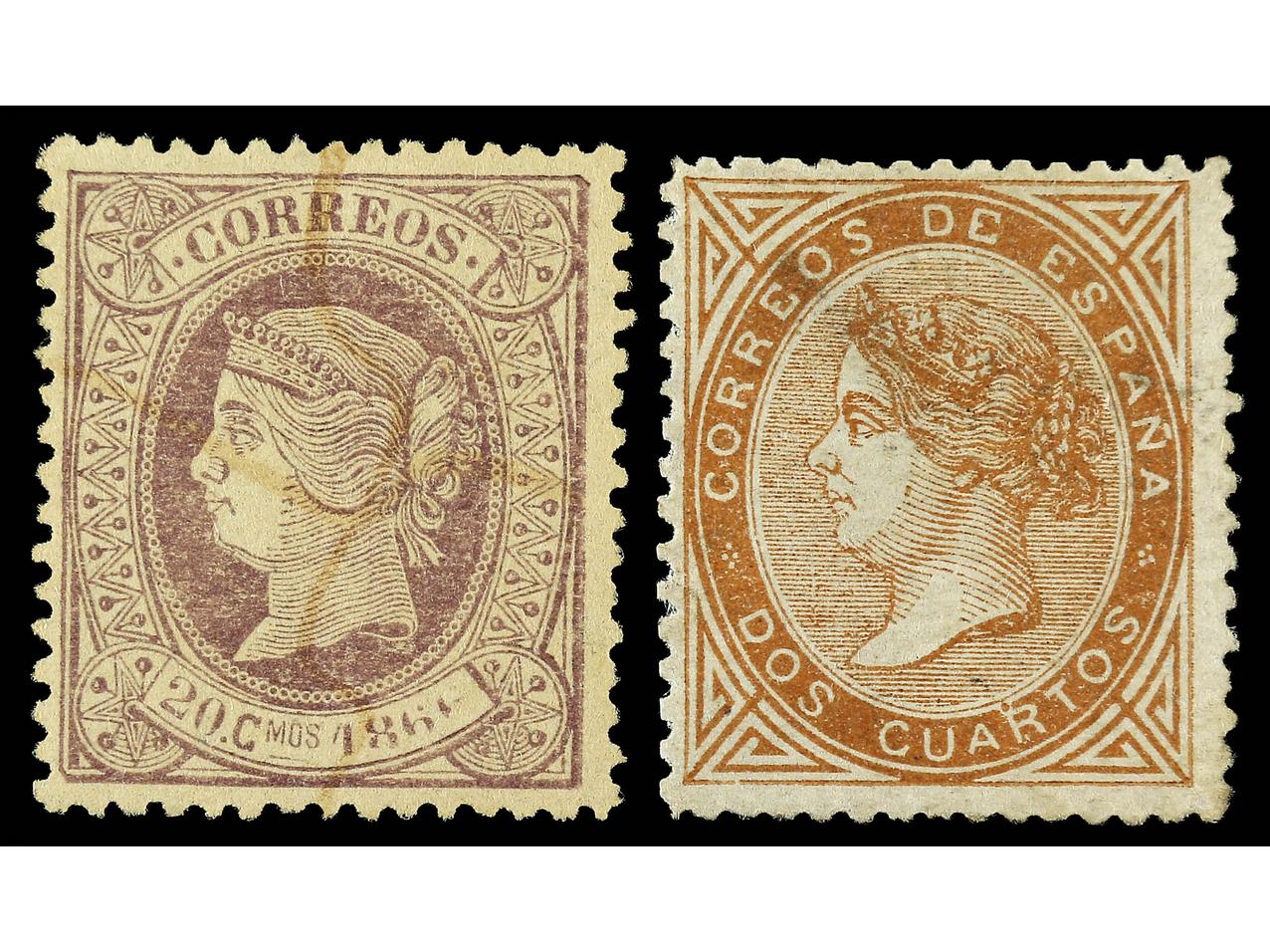 ESPAÑA. 2 cuartos castaño. Dentado retocado. Se incluye Ed. 86, raya tinta, con certificado CEM (no se cita). Examinar. Ed.87. (Image1) (Image2)