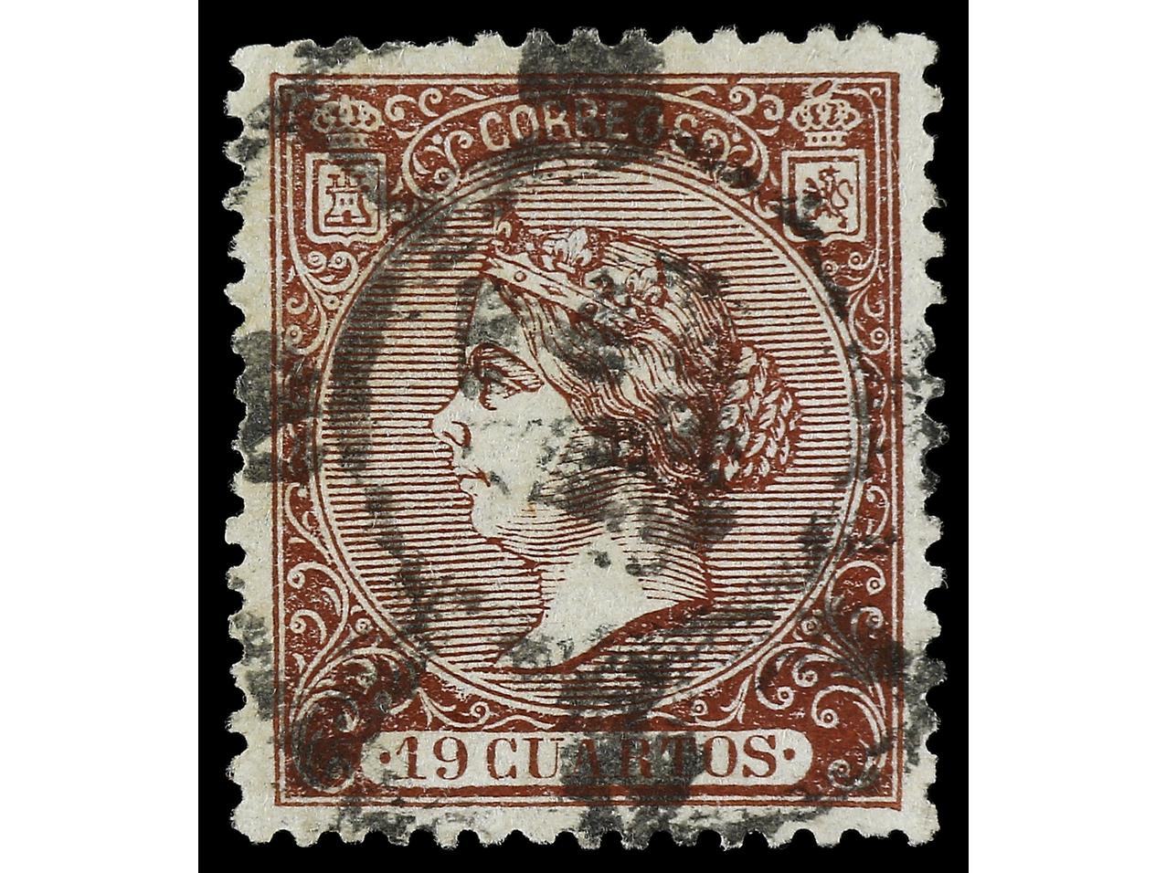 ESPAÑA. 19 cuartos castaño. Muy bien centrado. Cert. CAJAL. Ed.83. Cat. 700€. (Image1) (Image2)