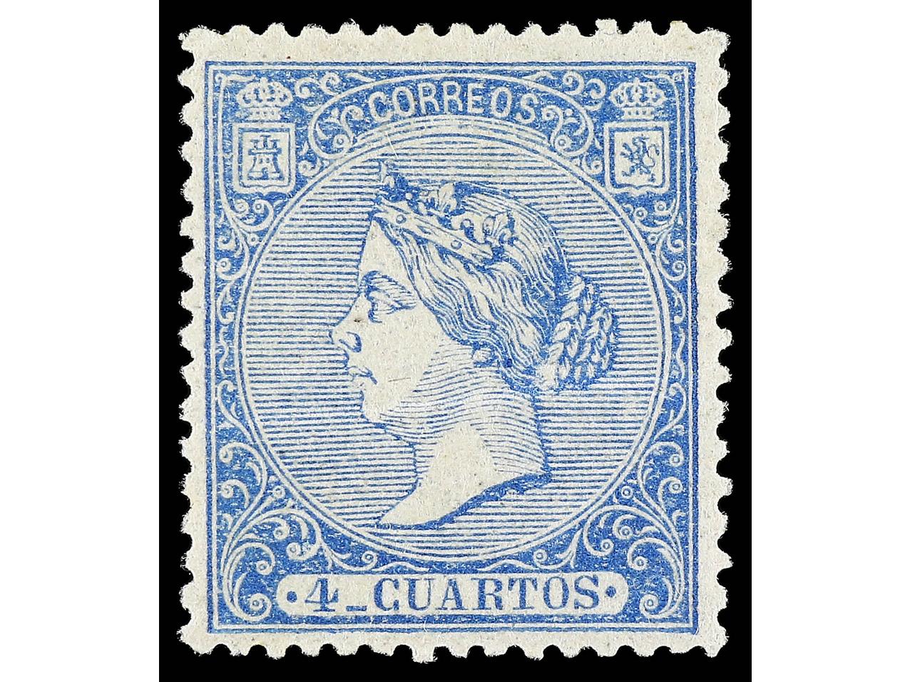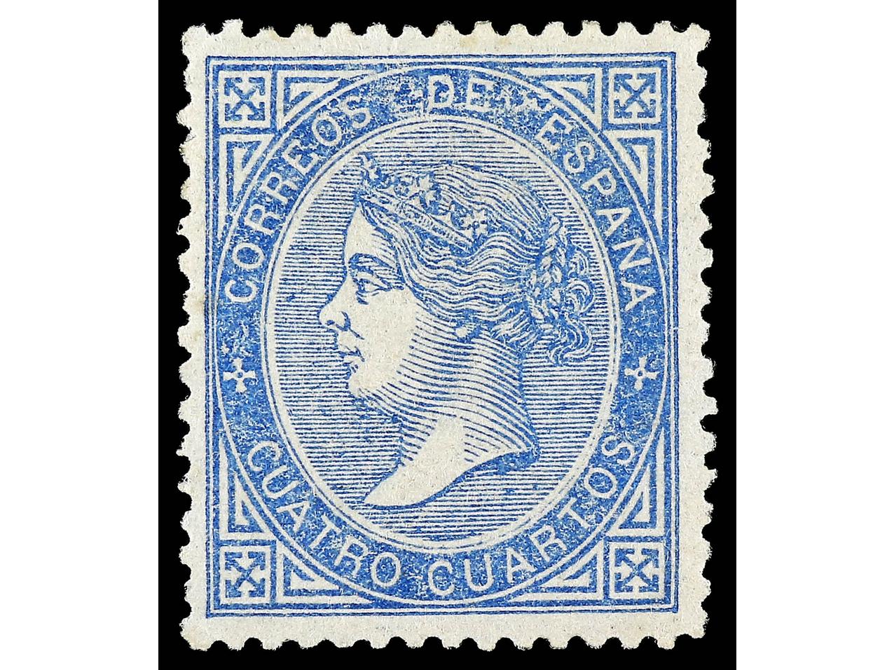 ESPAÑA. 4 cuartos azul. Muy buen ejemplar. Ed.81. (Image1)