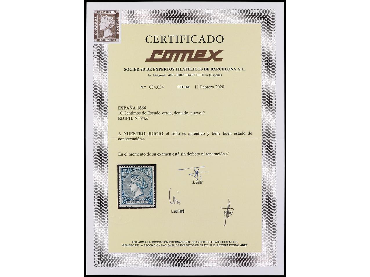 ESPAÑA. 10 céntimos verde. PIEZA DE LUJO. Cert. COMEX. Ed.84. Cat. 520€. (Image1) (Image2)
