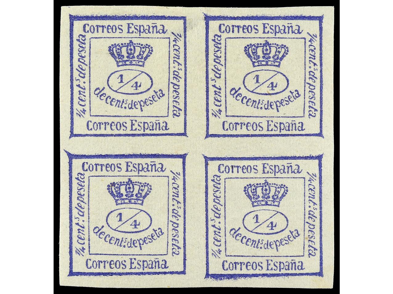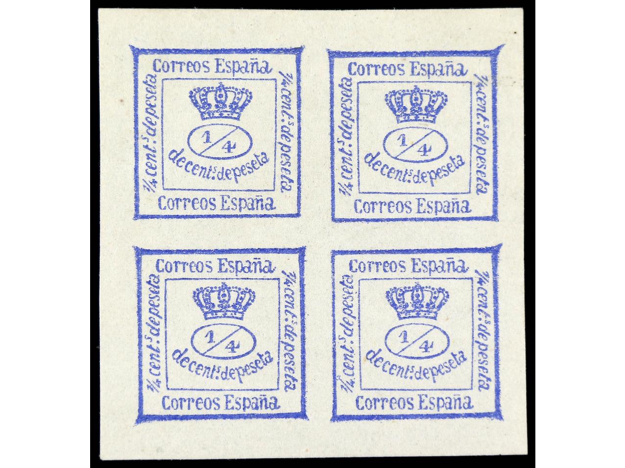 ESPAÑA. 4 cuartos azul. LUJO. Cert. COMEX. Ed.115. Cat. 160€. (Image1)