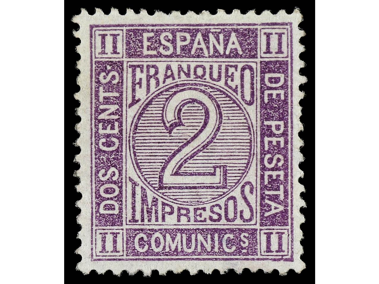 ESPAÑA. 2 céntimos lila. PIEZA DE LUJO. Ed.116. (Image1)