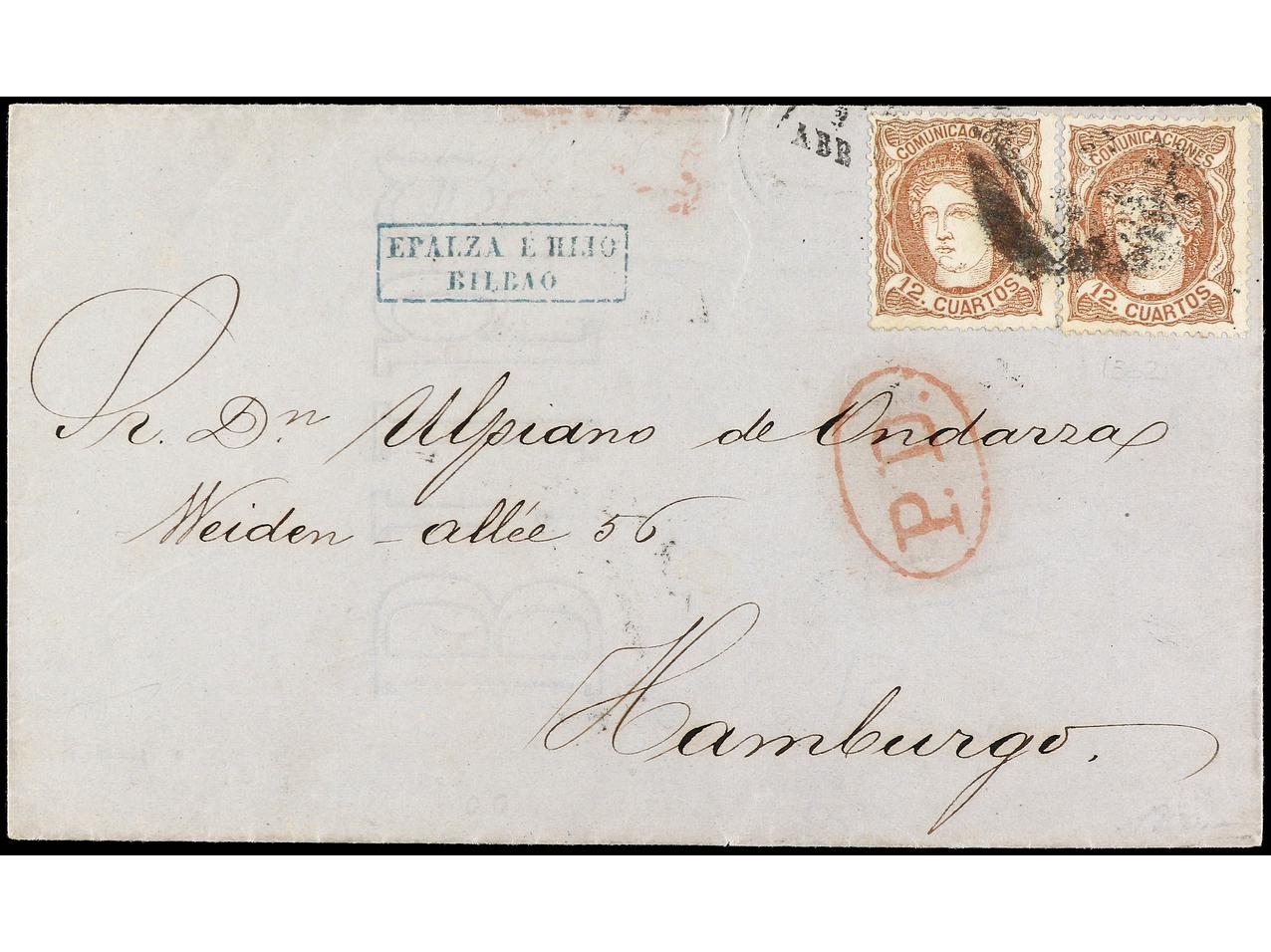 ESPAÑA: PREFILATELIA. 1871. BILBAO a HAMBURGO. 12 c. mat. parrilla (2). Tarifa de 1 porte. Ed.113. (Image1) (Image2)