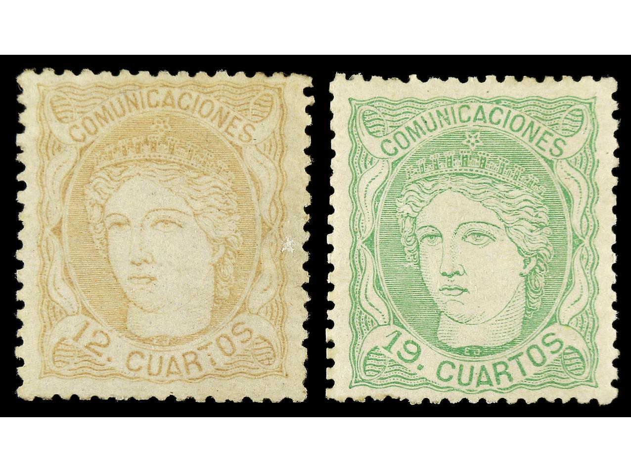 ESPAÑA. 19 cuartos verde, muy bien centrado. Se incluye Ed. 113 en nuevo y defecto. Ed.114. Cat. 650€. (Image1) (Image2)