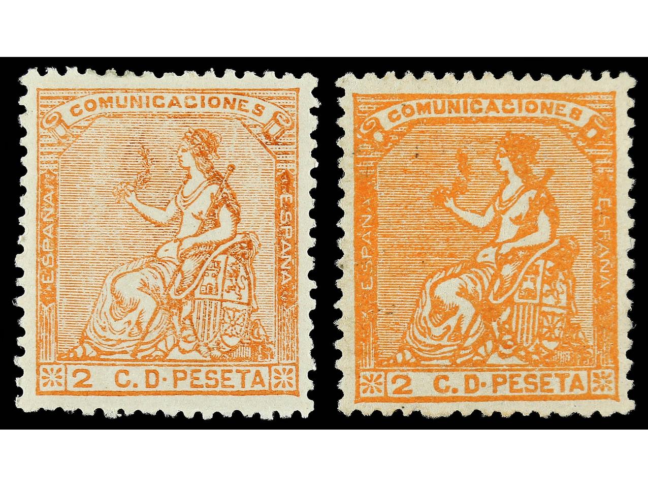ESPAÑA. 2 céntimos naranja y 2 céntimos rojo anaranjado. LUJO. Ed.131, 131a. (Image1) (Image2)