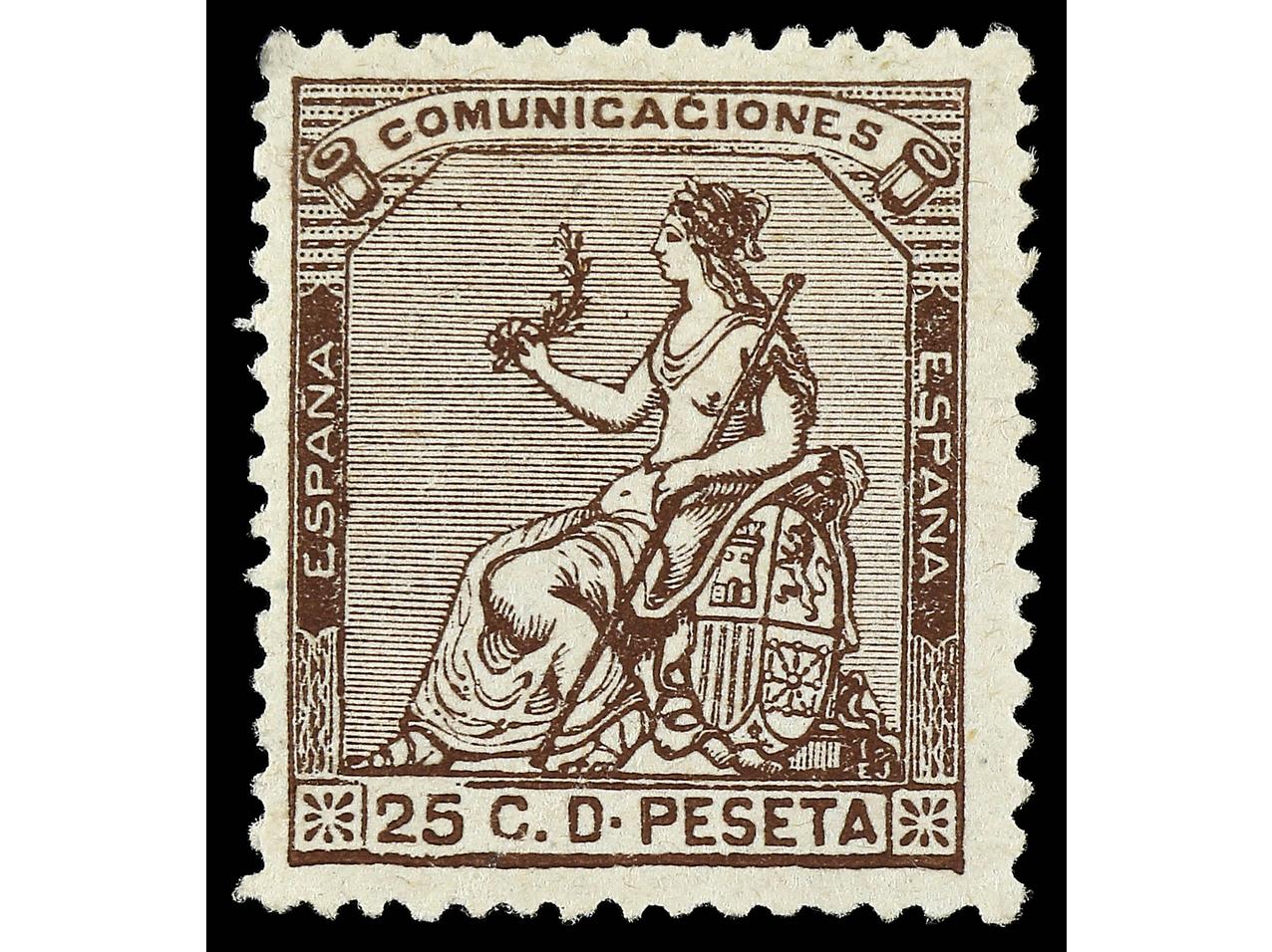 ESPAÑA. 25 céntimos castaño. Buen ejemplar. Ed.135. (Image1)