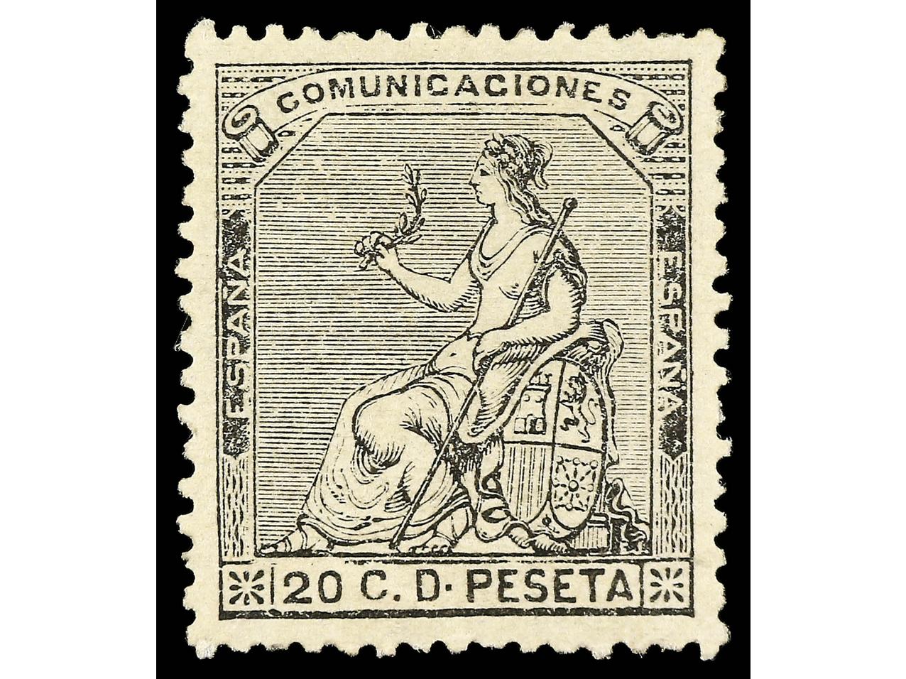 ESPAÑA. 20 céntimos negro. Muy bien centrado. Ed.134. Cat. 165€. (Image1)