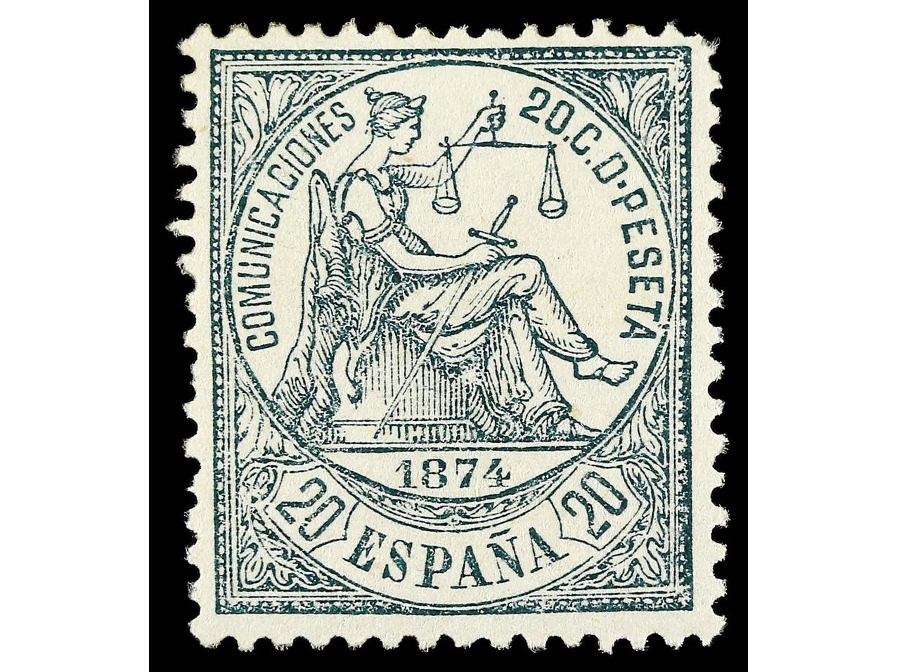 ESPAÑA. 20 céntimos verde. Esquina superior derecha, diente algo corto. Muy buen ejemplar. Centrado. Ed.146. (Image1)