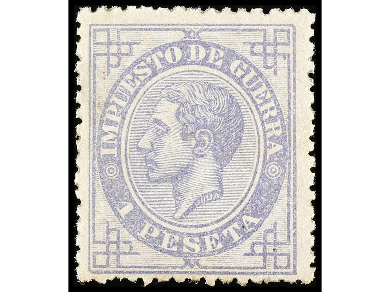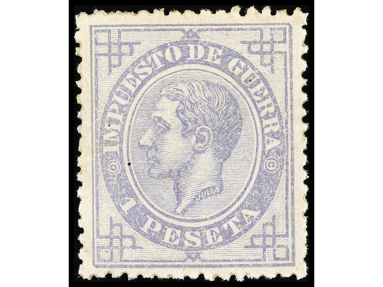 ESPAÑA. 1 pta. gris. Excelente centraje, inapreciable punto claro. Muy buena presencia, sello raro en nuevo. Ed.186. Cat. 400€. (Image1)