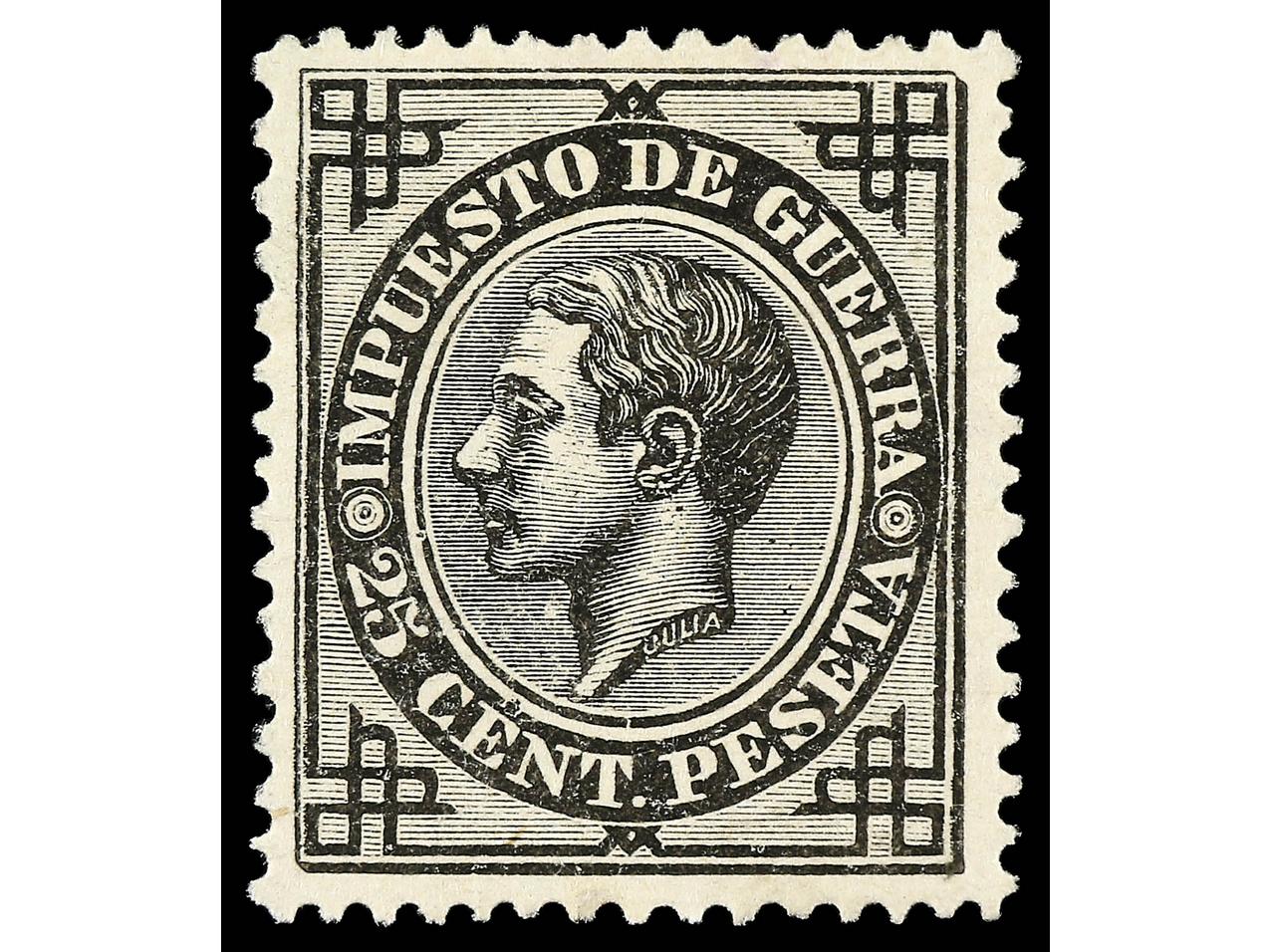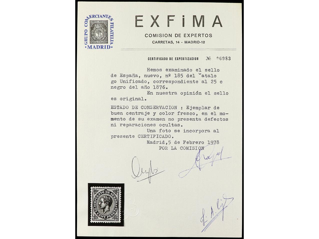 ESPAÑA. 25 céntimos negro. LUJO. Cert. EXFIMA. Ed.185. (Image1)