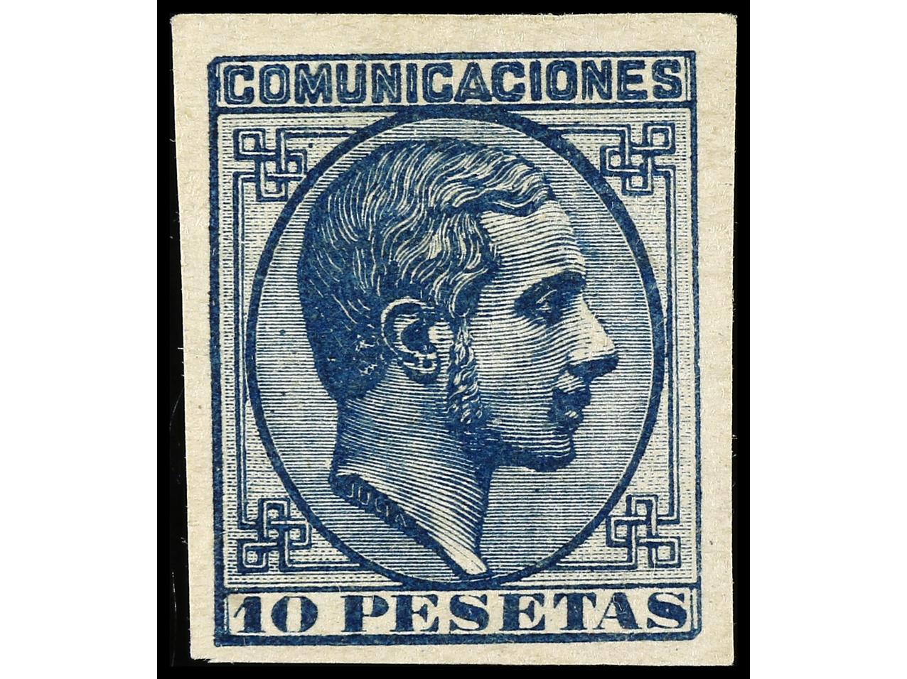 ESPAÑA. 10 pts. azul SIN DENTAR. Muy bonito. Ed.199s. Cat. 725€. (Image1)