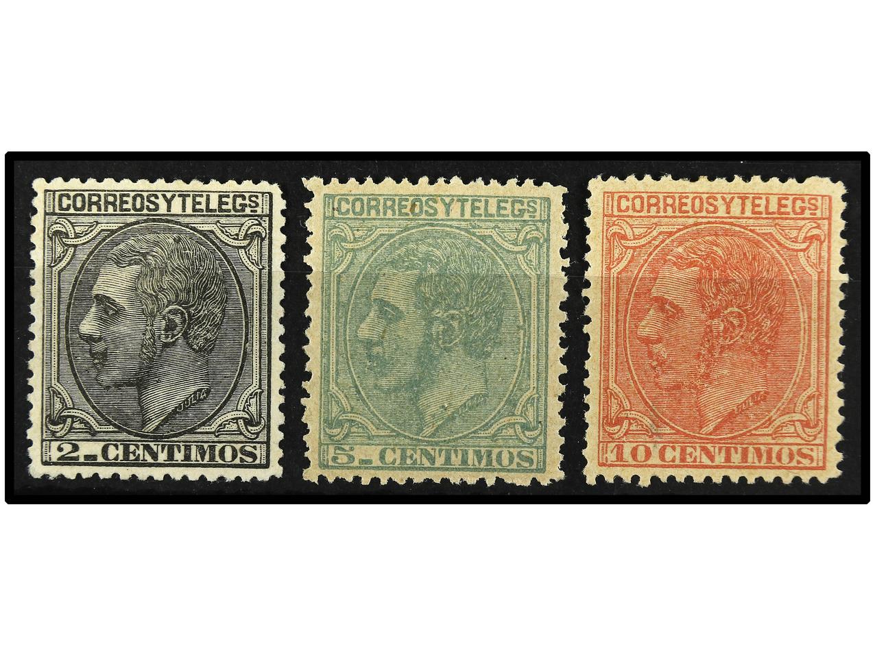 ESPAÑA. 2 c. negro, 5 c. verde y 10 c. rosa. Centrados de lujo. Ed.200/02. (Image1) (Image2)