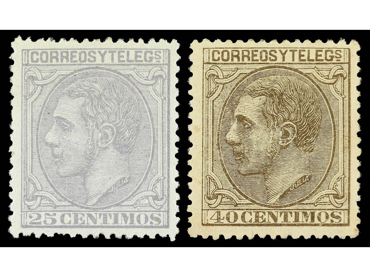 ESPAÑA. 25 c. gris y 40 c. castaño. Centrados de lujo. Ed.204, (*) 205. (Image1) (Image2)