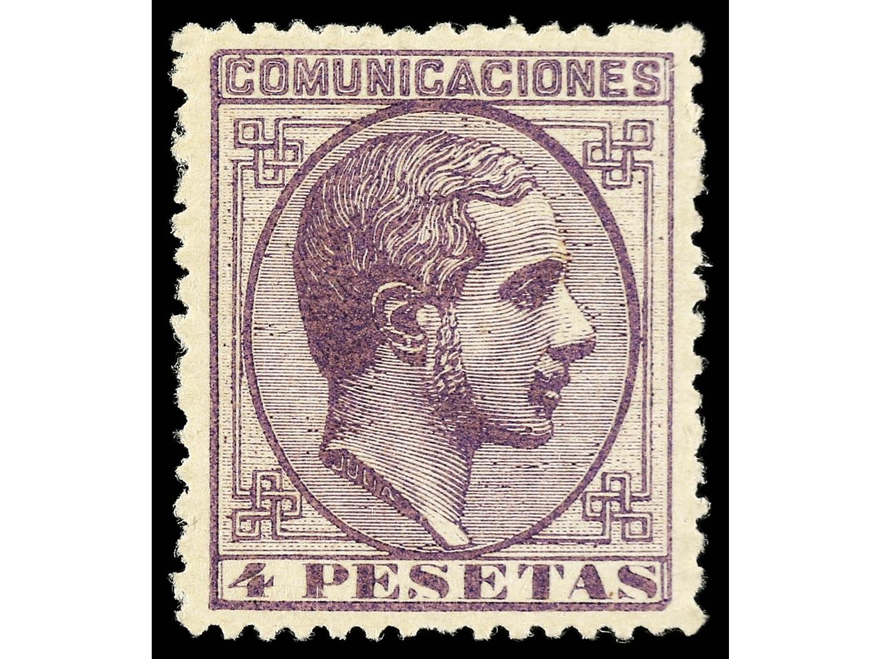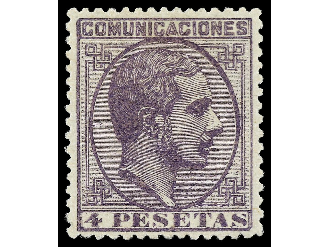 ESPAÑA. 4 pesetas violeta. PIEZA DE LUJO. Ed.198. Cat. 350€. (Image1)