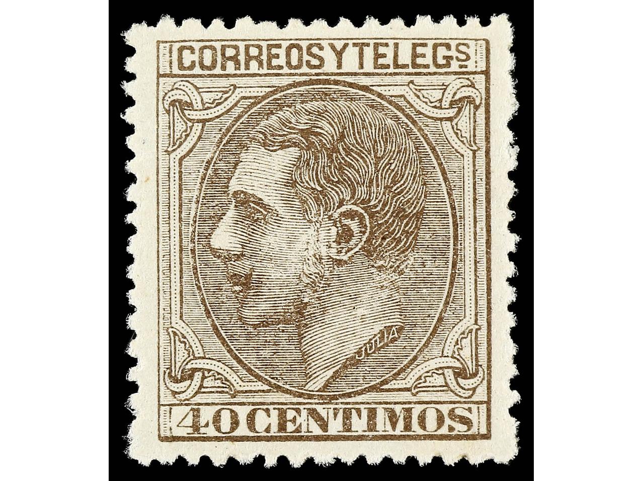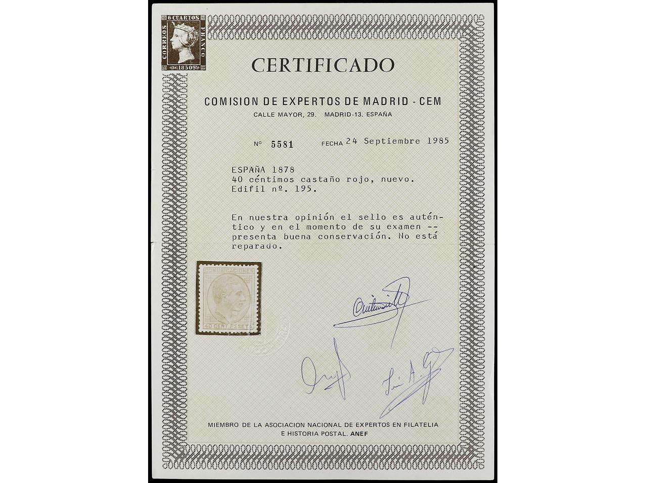 ESPAÑA. 40 céntimos castaño. Muy bien centrado. PIEZA DE LUJO. Cert. CEM. Ed.195. Cat. 270€. (Image1) (Image2)