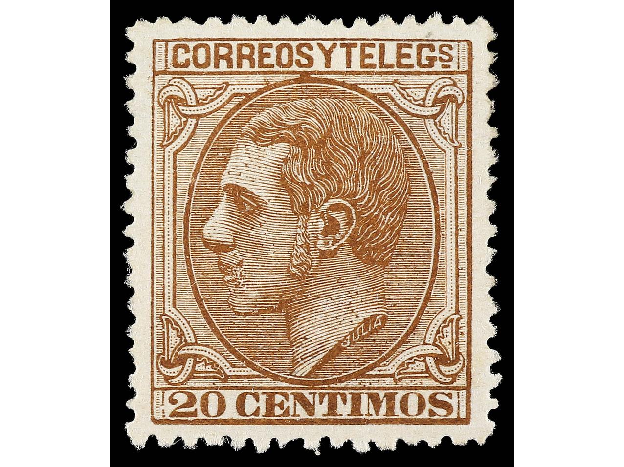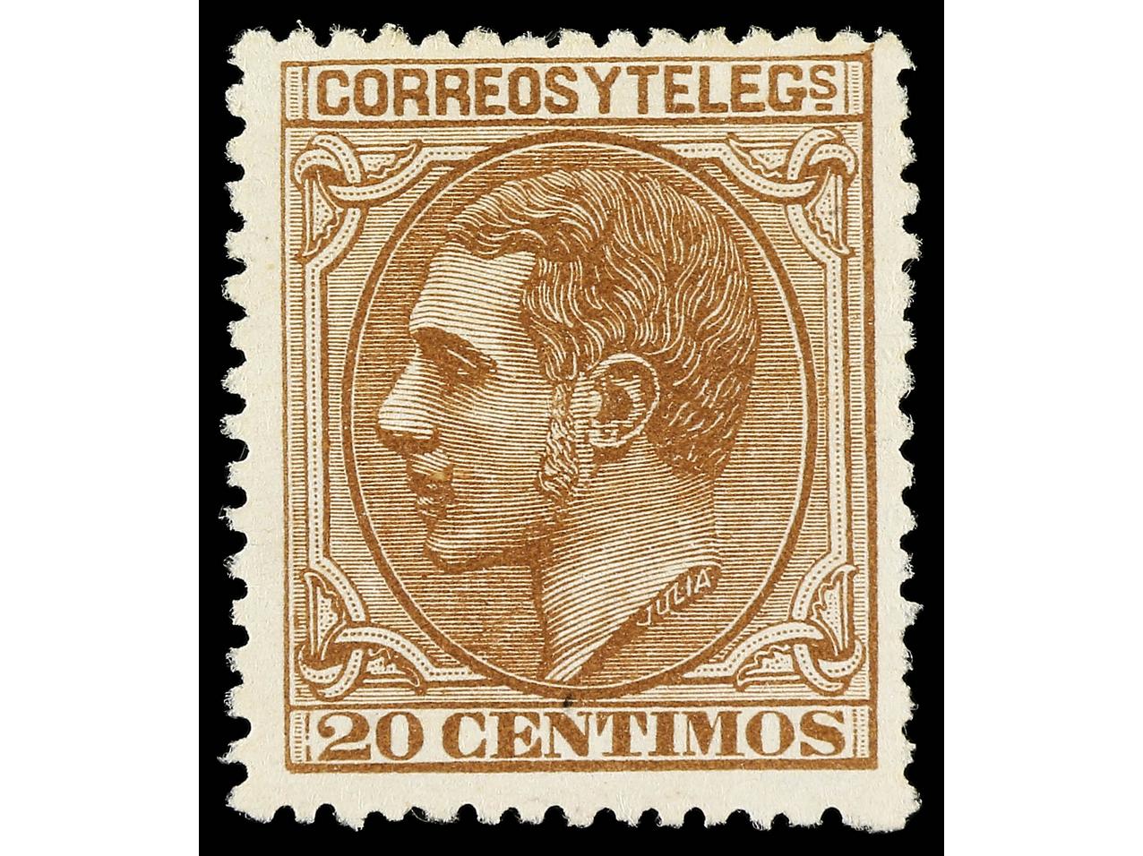 ESPAÑA. 20 céntimos castaño. LUJO. Ed.203. Cat. 200€. (Image1)