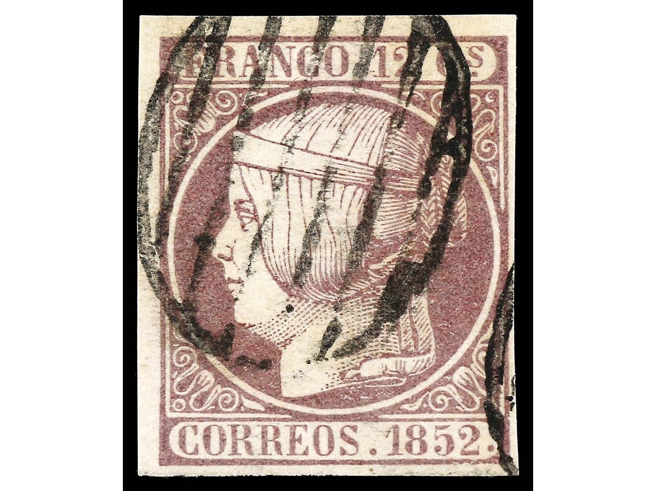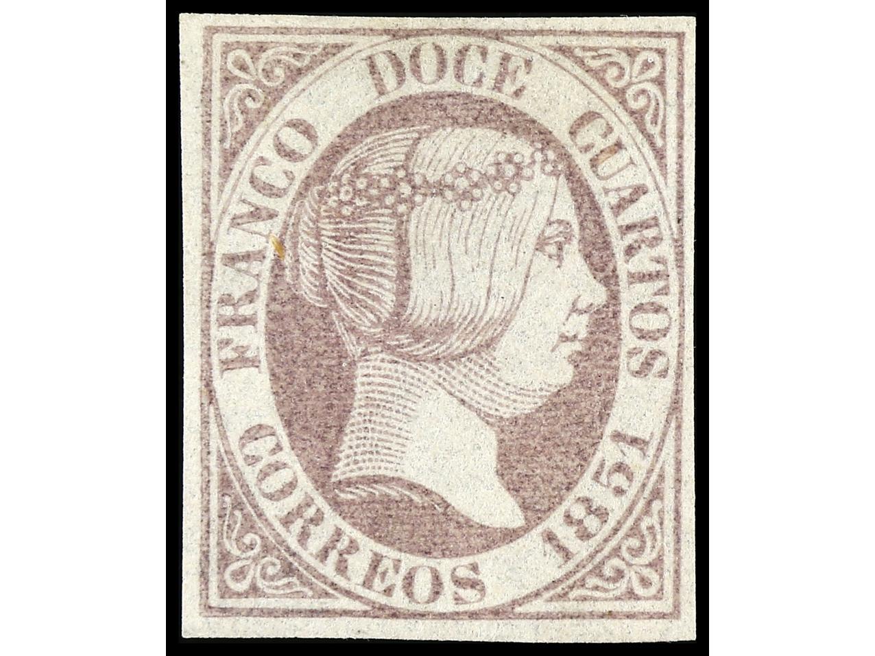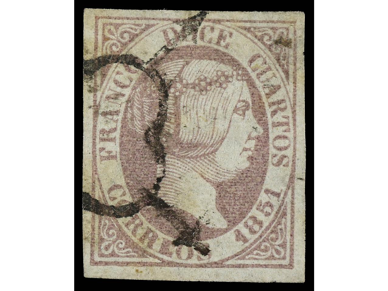 ESPAÑA. 12 cuartos lila. Grandes márgenes, magnífico ejemplar. Ed.7. Cat. 250€. (Image1)